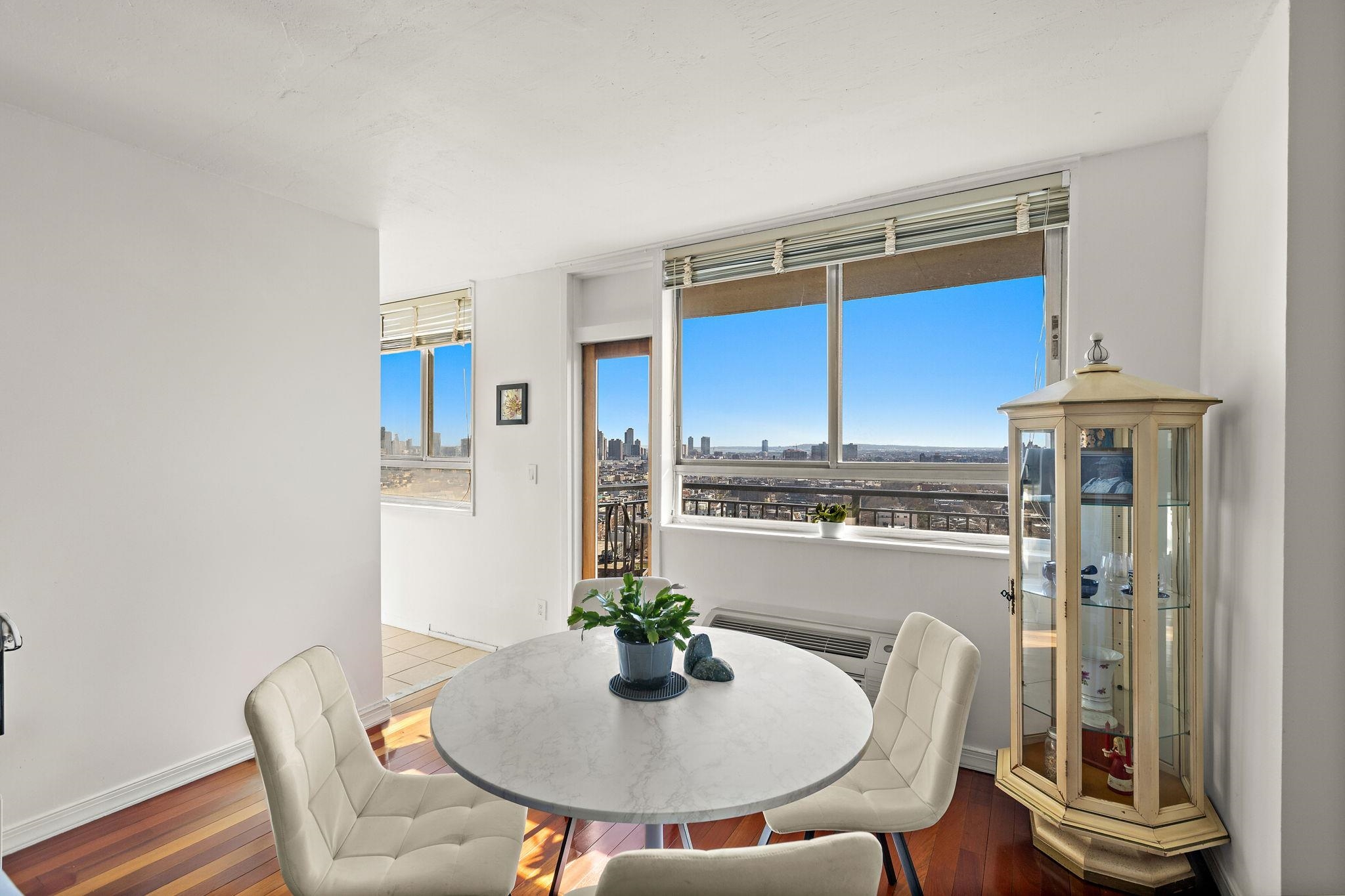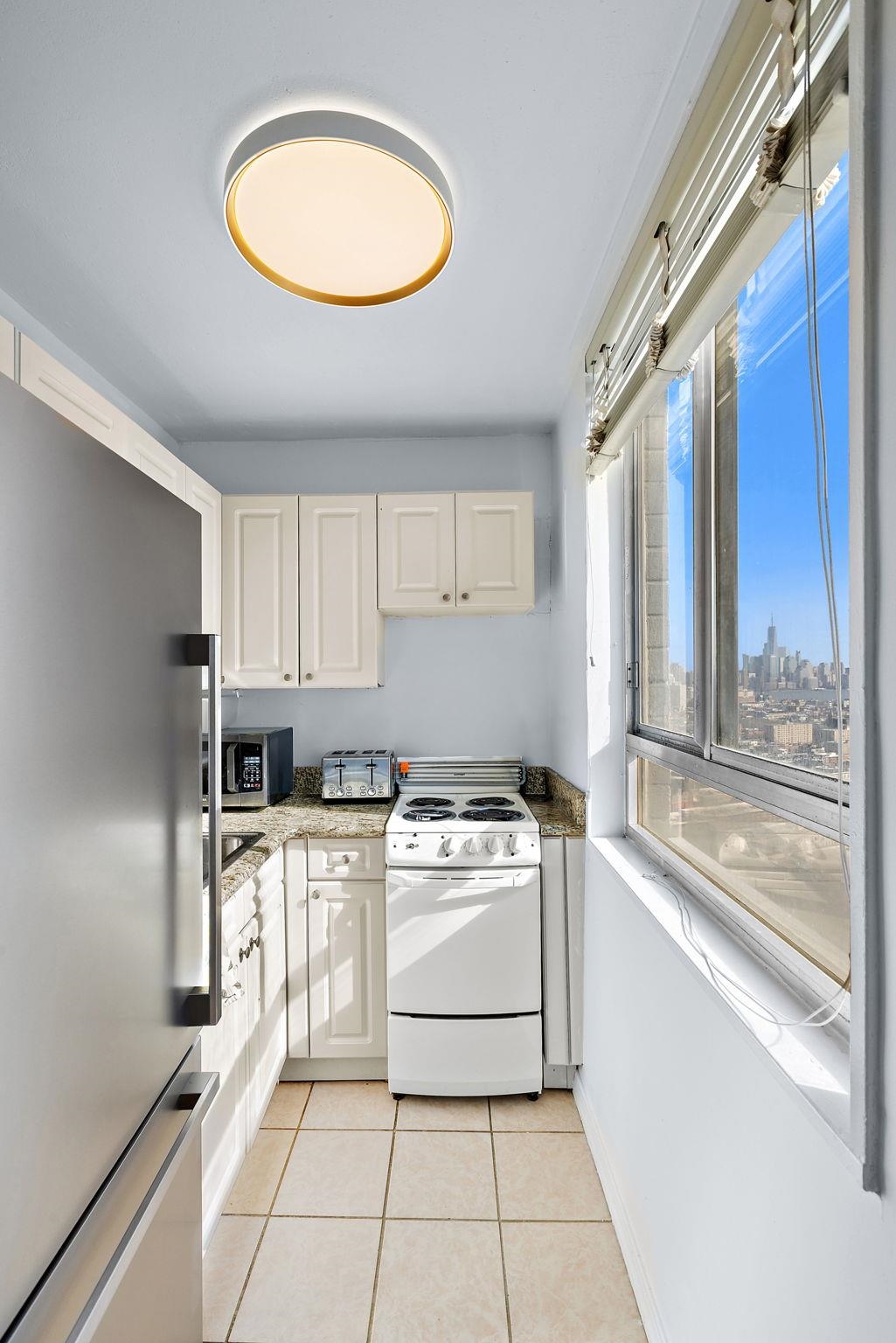 Welcome to this expansive and beautifully upgraded 1-bedroom, 1-bathroom home, featuring the largest floor plan in the building! Situated on a high floor, this unit offers breathtaking views of the Manhattan skyline, creating the perfect backdrop for your everyday life. Inside, you'll find recently upgraded bathrooms and freshly redone flooring that adds a touch of modern elegance to this already impressive space. The large and airy layout is designed for both comfort and style, with plenty of room to relax, entertain, and enjoy. Experience the ultimate in high-rise convenience with an all-inclusive monthly maintenance fee that streamlines your lifestyle by covering property taxes, electricity, heat, air conditioning, water, and sewer. Residents enjoy total peace of mind and elite service provided by a 24/7 concierge and a dedicated live-in maintenance staff. Don’t miss your chance to experience a home that combines unmatched views with spacious, worry-free comfort. Schedule your tour today and make this exceptional property yours!