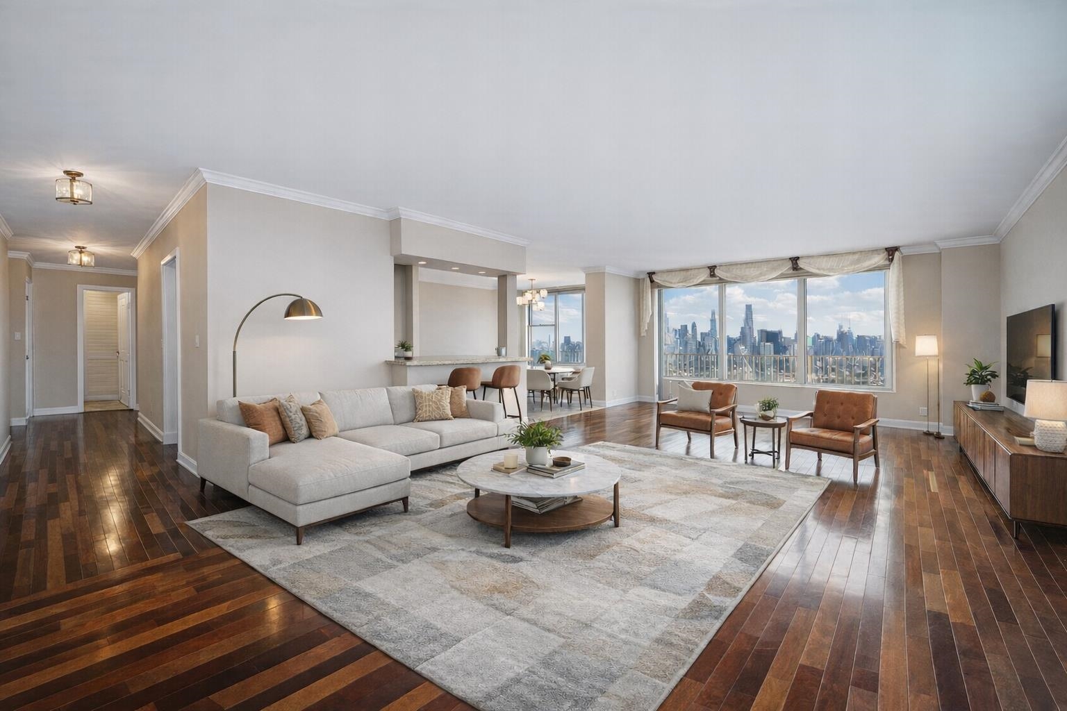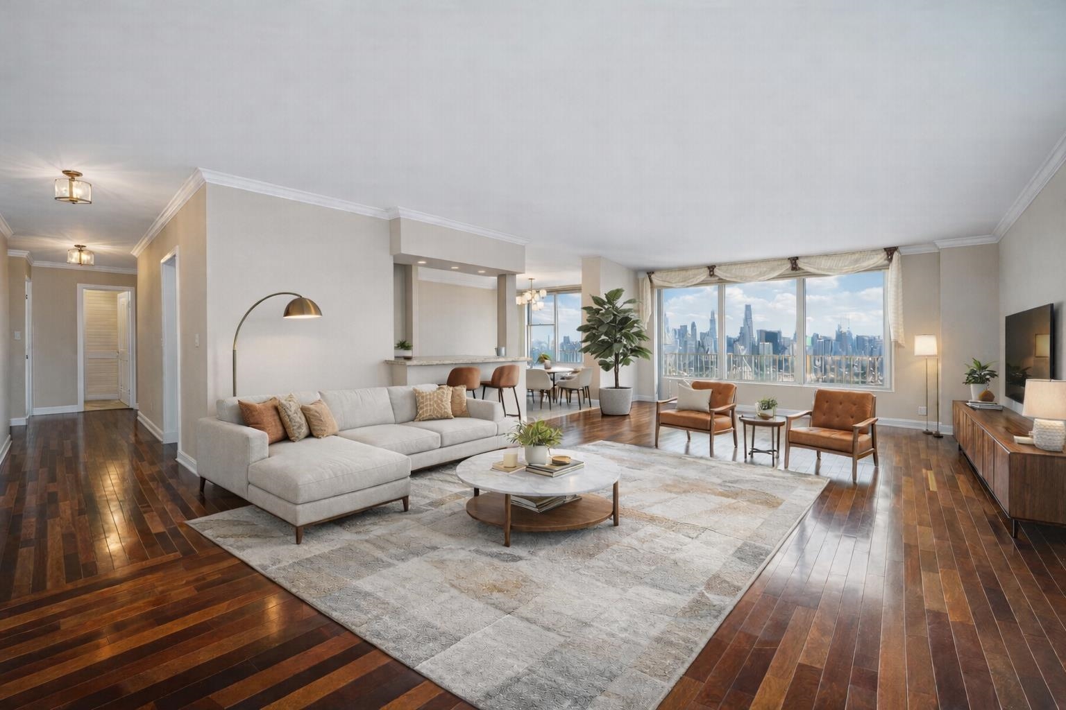 ***SELLER TO CONTRIBUTE TO CLOSING COSTS*** Exceptional value opportunity. This expansive 3-bedroom, 2-bath corner residence offers approx. 1,850 sq. ft. plus a 300 sq. ft.private terrace with sweeping, unobstructed NYC skyline and Hudson River views from three exposures. Light-filled living spaces, open kitchen, oversized bedrooms, and a primarysuite with custom walk-in closet and bath. Full-service Boulevard East building with 24/7 concierge, fitness center, pool, and on-site parking (fee). Maintenance includes propertytaxes and utilities. Some photos virtually staged.