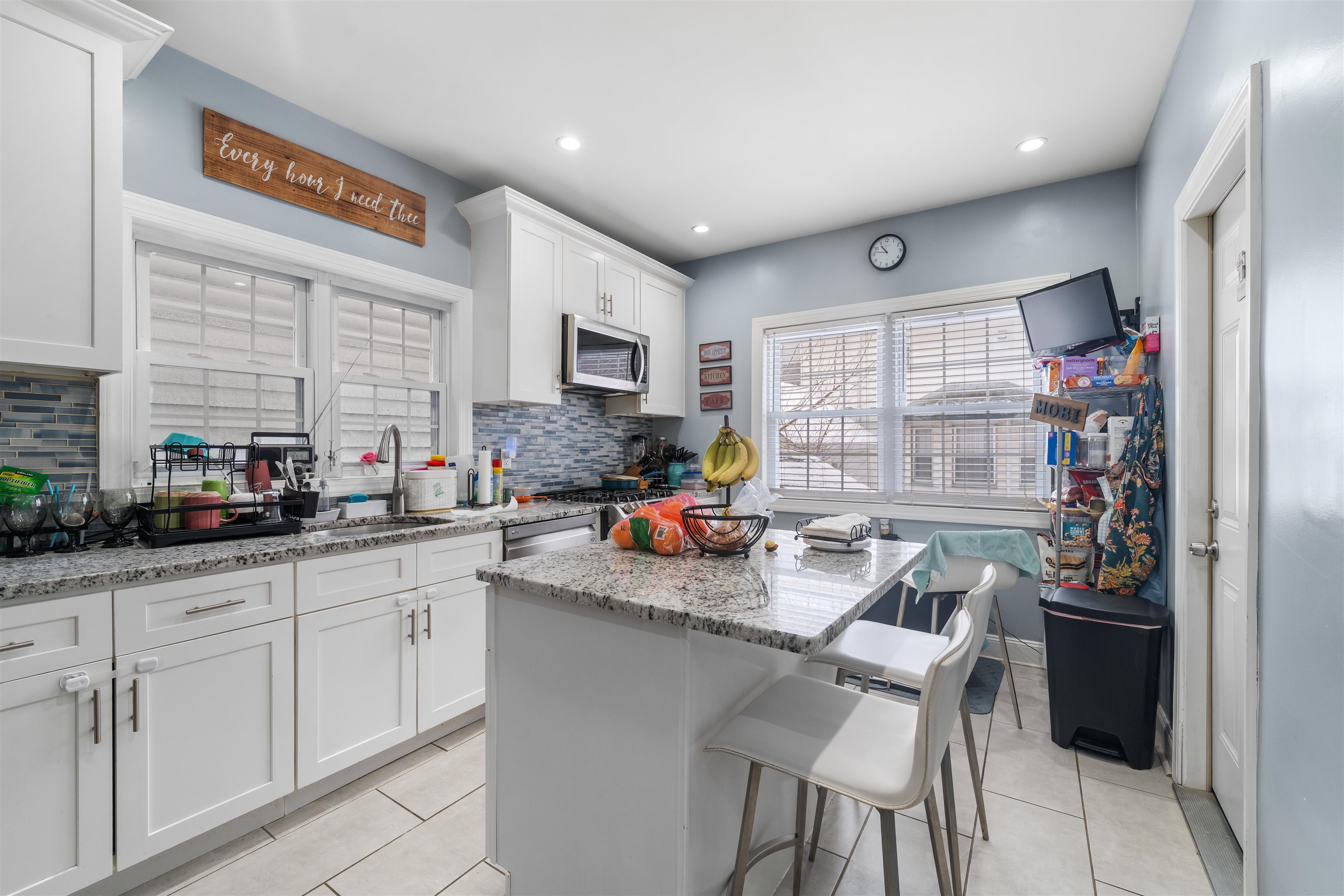 Welcome to 802 Avenue A, a beautifully renovated and move-in-ready two-family home in a prime Bayonne location just steps from Hudson County Park and minutes to Bayonne High School and the Light Rail station for an easy NYC commute. This property features a first-floor duplex with a finished basement, a second-floor unit, and a fully finished attic, along with two-car parking and a private backyard. The home is also equipped with solar panels, offering energy efficiency and long-term utility savings. The first-floor duplex offers 2 bedrooms and 2 full baths, a renovated eat-in kitchen with a center island, updated bathrooms, central AC and heat, hardwood floors, a large living room, a formal dining room, and expansive sun-filled living spaces, plus a finished basement ideal for additional living, office, or recreational space. The second floor includes 3 spacious bedrooms and 1 full bath with an updated kitchen and baths and hardwood floors throughout. The attic is fully finished and features a full bathroom, abundant natural sunlight, and generous living and recreational space. 2nd floor tenants paying $2,300 on a lease until 9/30/27 Ideal for an owner-occupant or investor seeking strong rental potential in a highly desirable Bayonne location. Live and own in one of Bayonne’s most desirable neighborhoods, right next to Hudson County Park.