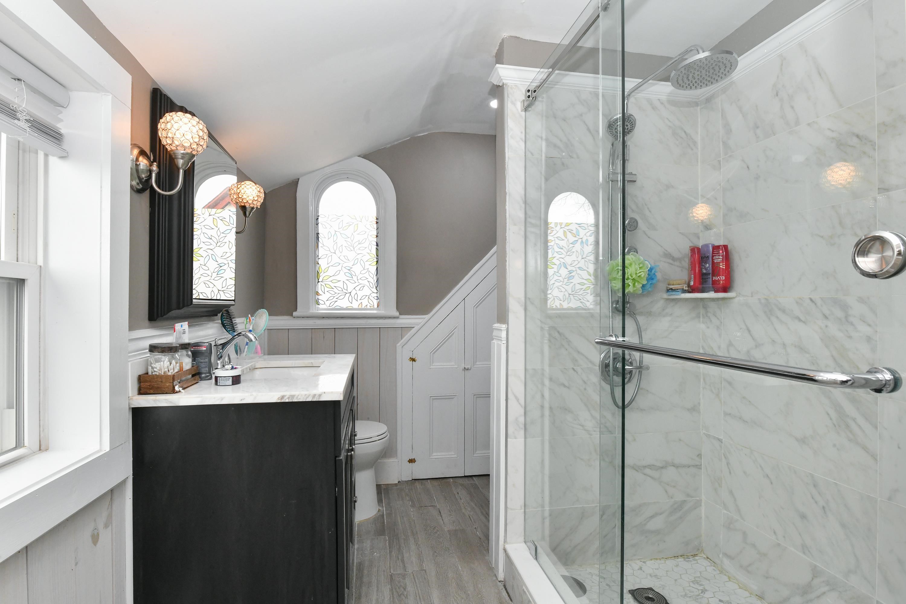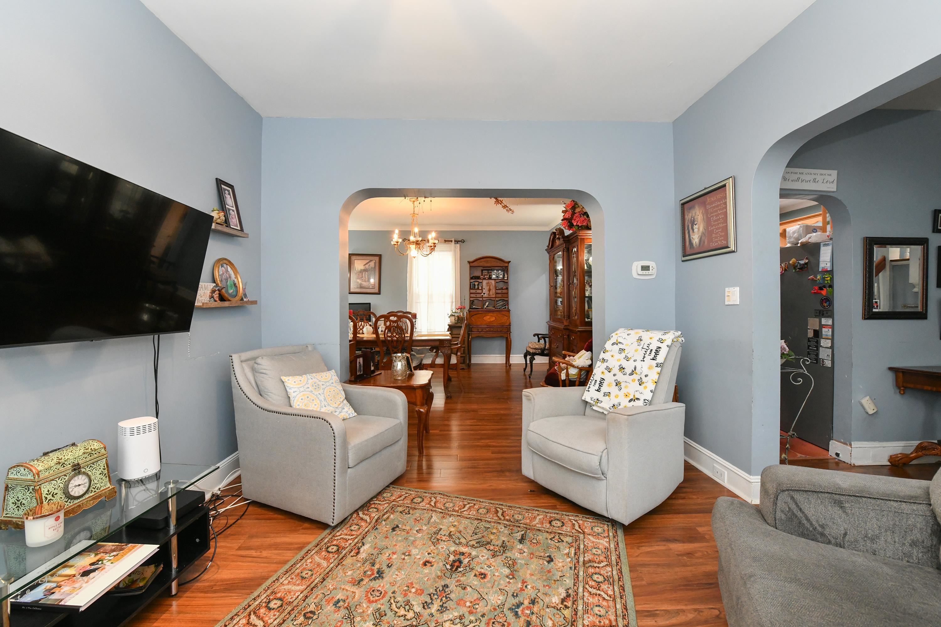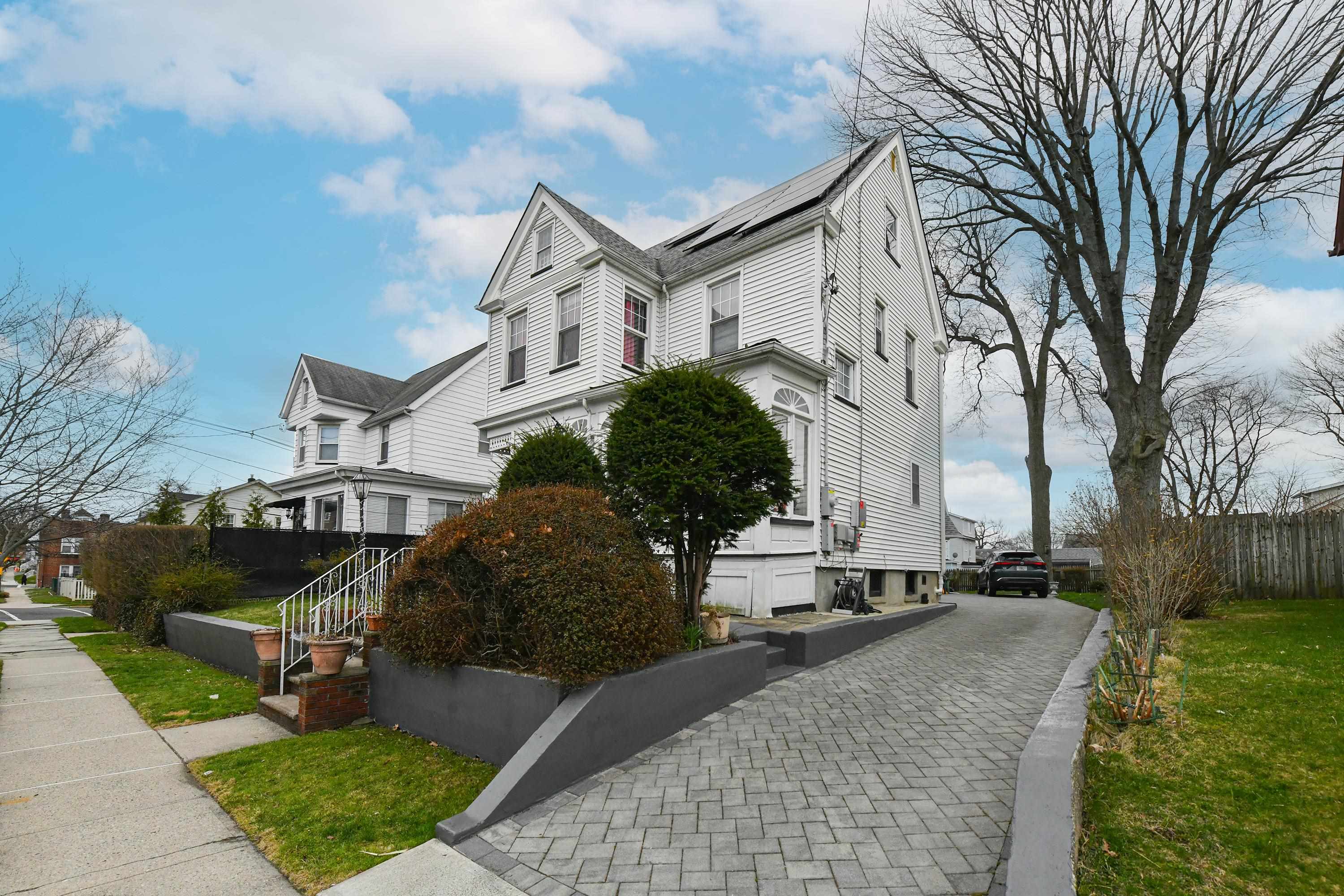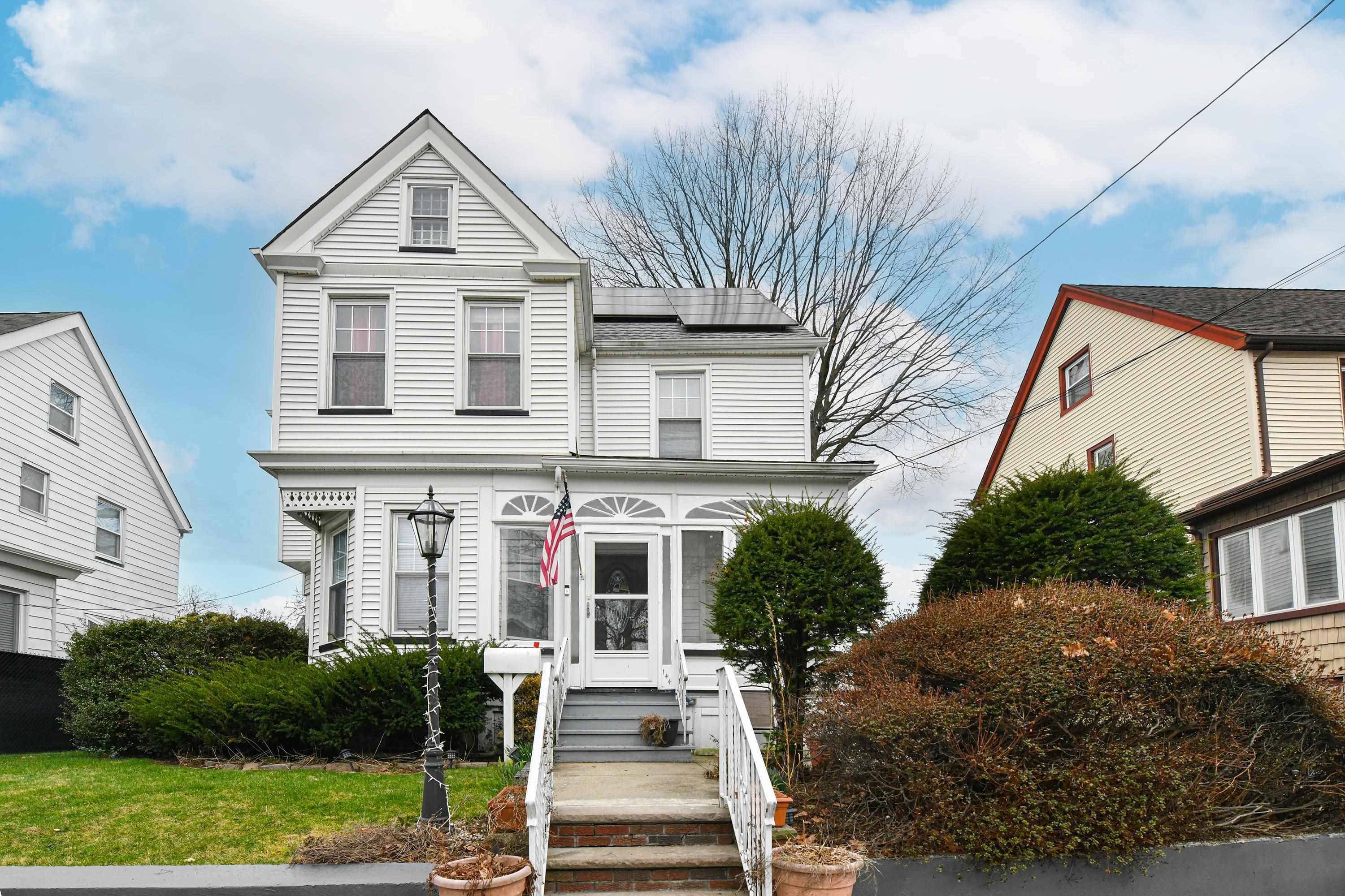 Welcome to this charming and well-maintained Victorian home located in the desirable Arlington section of Kearny, NJ. This spacious residence offers a thoughtful layout across three levels, perfect for comfortable living and entertaining. The first floor features a bright living room, formal dining room, a generous eat-in kitchen, and a convenient half bath. The second floor includes three well-sized bedrooms and a full bathroom. The third level offers a private fourth bedroom along with an additional full bath—ideal for guests, a home office, or extended living space. Hardwood floors run throughout the home, adding warmth and character. Enjoy year-round comfort with central air conditioning and forced hot air heating. Step outside to a large backyard, perfect for relaxing or entertaining. The paver driveway adds great curb appeal, and the oversized garage with a loft provides endless possibilities—use it as a home office, storage area, or bonus entertainment space. The garage is also equipped with electric vehicle charging connections. Leased solar panels offer added energy efficiency and potential savings. Don’t miss the opportunity to own this unique and versatile home in a prime location near parks, shopping, and transportation.