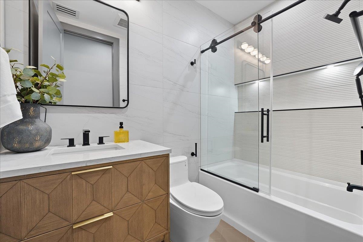 High design meets everyday ease in this brand new home in The Heights. The impeccably styled 3 bed, 2 bath layout, features a fully finished private backyard, and is nestled in a coveted pocket of Jersey City Heights with access to shops, parks and NYC transport. The entryway welcomes with wood-paneled walls and built-in hooks for function and warmth. Inside, the living area stuns with a wood-paneled fireplace feature wall, prepped for your oversized flatscreen. Tray ceilings provide intrigue above while sun-drenched light oak floors give continuity throughout. The eat-in kitchen is a masterclass in contrast where crisp white quartz counters and backsplash meet matte black lower cabinets and light oak uppers. Top-tier Thermador appliances including a custom hood and microwave drawer create a chef-worthy space, while an added wine fridge and brass fixtures give the finishing touch. Serenity awaits in the primary ensuite, where a paneled statement wall, nightstand sconces, and sliding glass doors to the backyard create a true retreat. Outside hosts a private retreat beautifully manicured with lush lawn, pavers and a customizable outdoor kitchen. An entertainer’s dream, the setup offers a sink, gas connections, and is prepped for a counter top grill installation. Bathrooms elevate the everyday with gold rainhead fixtures, ribbon tile to the ceiling, a double vanity, and a lit wall niche for the glass shower or soaker tub. The thoughtfully appointed walk-in couple’s closet with custom built-ins completes the space. Set just two blocks from the buzz of Central Avenue, this location brings the best of The Heights with boutique shops and cafés, Riverview Fisk Park with cinematic skyline views, and Washington Park’s sports facilities, farmer’s markets and community events. The 9th Street elevator and Light Rail offer a direct line to Hoboken, NYC ferries, and PATH connections. Featuring a 10-year builder’s warranty, this home is modern, move-in ready and made for urban luxury dwellers.