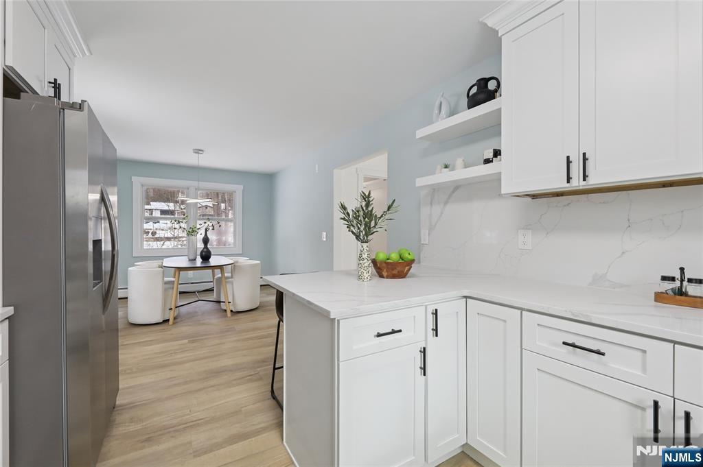 Welcome to this beautifully renovated bi-level home offering comfort, style, and scenic lake views. This spacious residence features 4 bedrooms and 2 full bathrooms, thoughtfully updated with recessed lighting throughout to create a bright and inviting atmosphere. The sun-filled living area showcases wide plank flooring and a stunning bay/bow window, filling the space with natural light and picturesque views.The family room is warm and welcoming, highlighted by a charming wood-burning fireplace, perfect for relaxing evenings. The modern kitchen is equipped with stainless steel appliances, a convenient breakfast bar, and flows seamlessly into a separate dining area, ideal for both everyday living and entertaining. Step outside to the deck and enjoy outdoor gatherings or peaceful moments overlooking the surroundings.Additional highlights include a built-in 1-car garage, ample parking for up to 4 vehicles, and a well-designed layout that maximizes space and functionality. With lake views and tasteful renovations throughout, this home offers the perfect blend of comfort, convenience, and lifestyle.