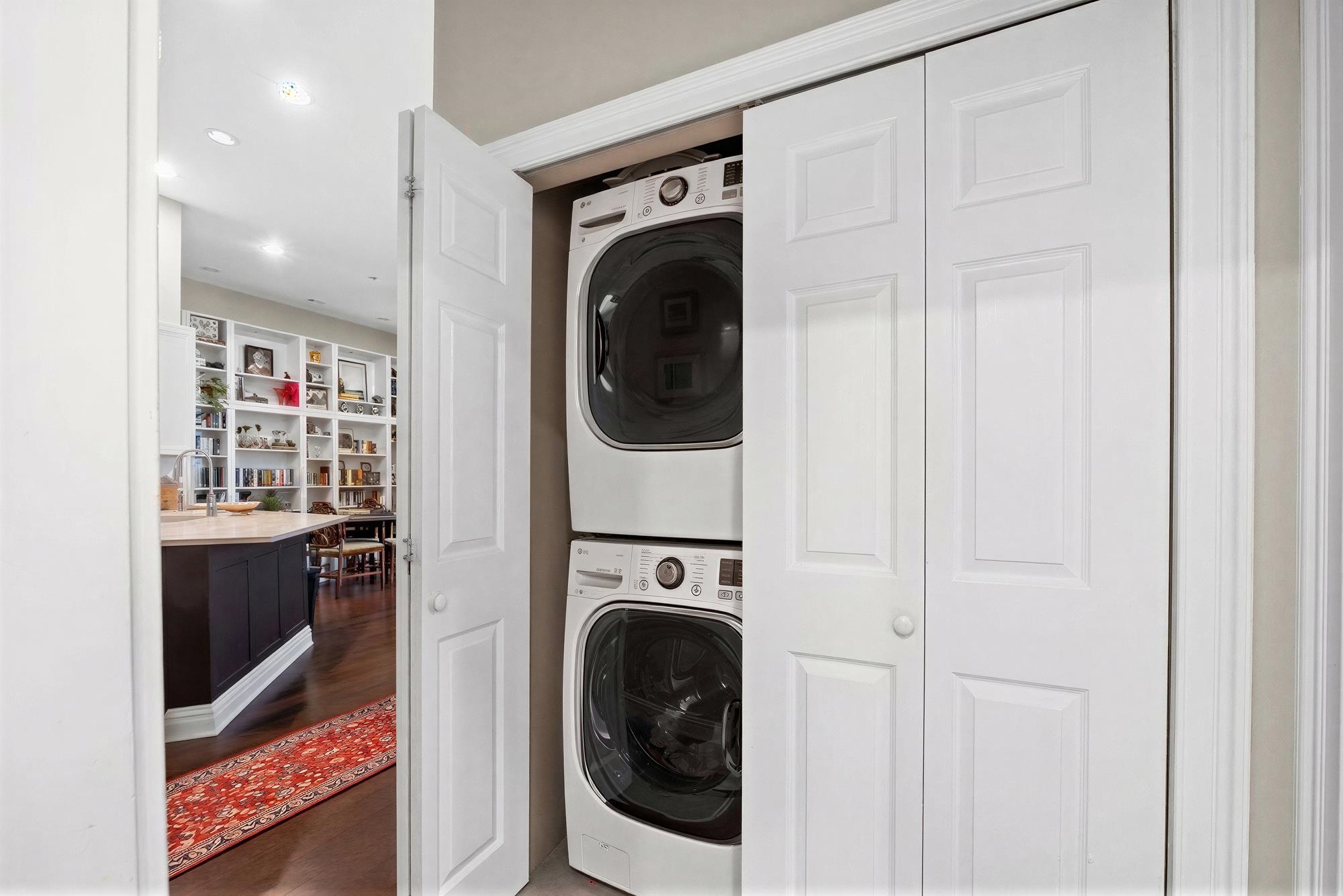 Welcome home to this beautiful 2 bed 2 bath condo at Pier House in Paulus Hook. This spacious 1320 sq ft home features soaring 12ft ceilings, southing facing windows and 2 terraces overlooking the courtyard. This beautifully renovated home has expresso hardwood floors throughout, and impeccably maintained modern kitchen with Caesarstone counters, Samsung stainless steel appliances and subway tile backsplash. Additional features of the home include in-unit washer-dryer and deeded garage parking spot included. Pier house is a full service 24 hr doorman building featuring a common landscaped courtyard, outdoor pool, reception lounge and fitness center. The neighborhood features many public and private school options. Located at Liberty Landing Marina and near river walk, parks, 2 PATH stations, light rail and ferry services.