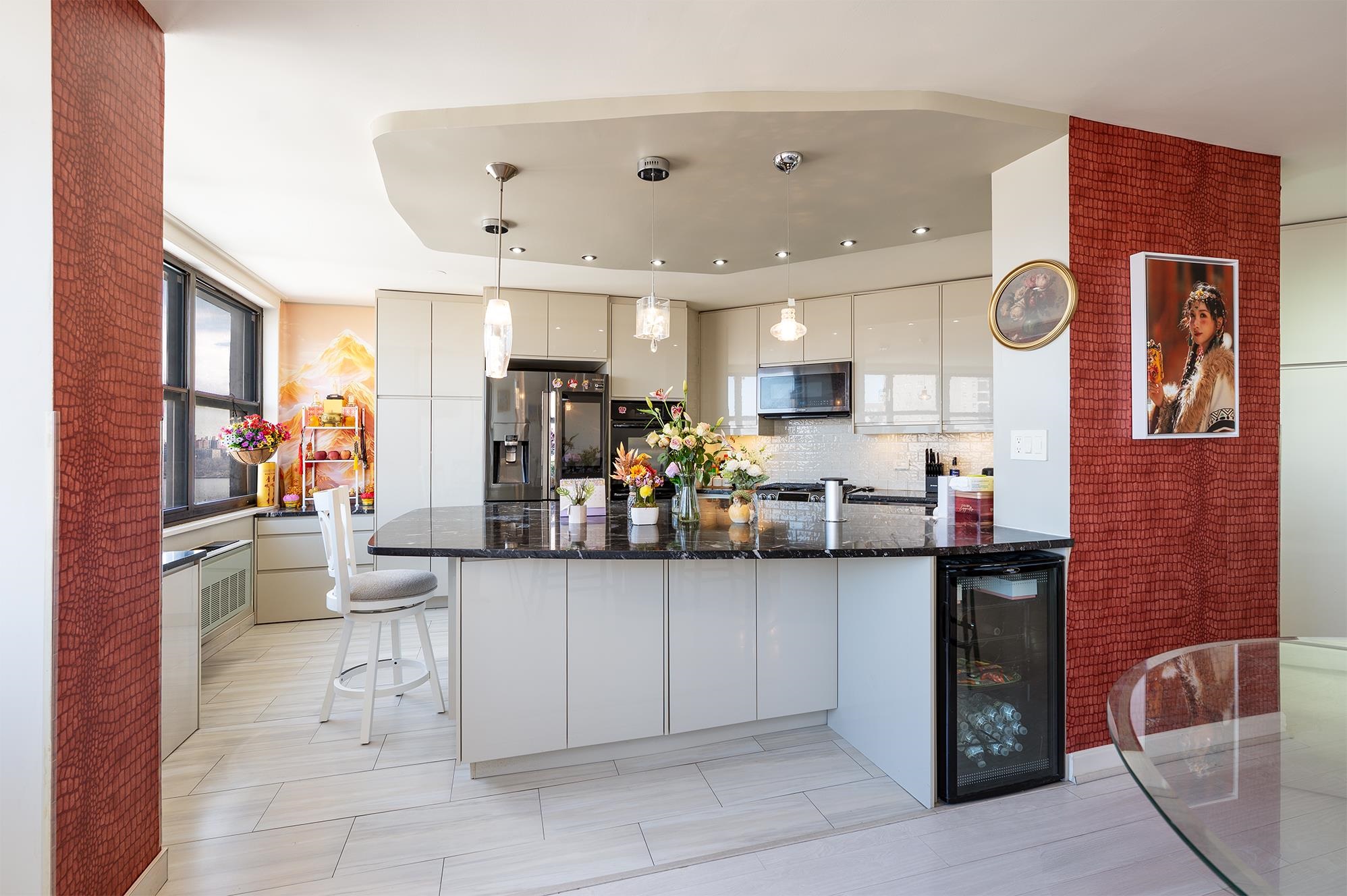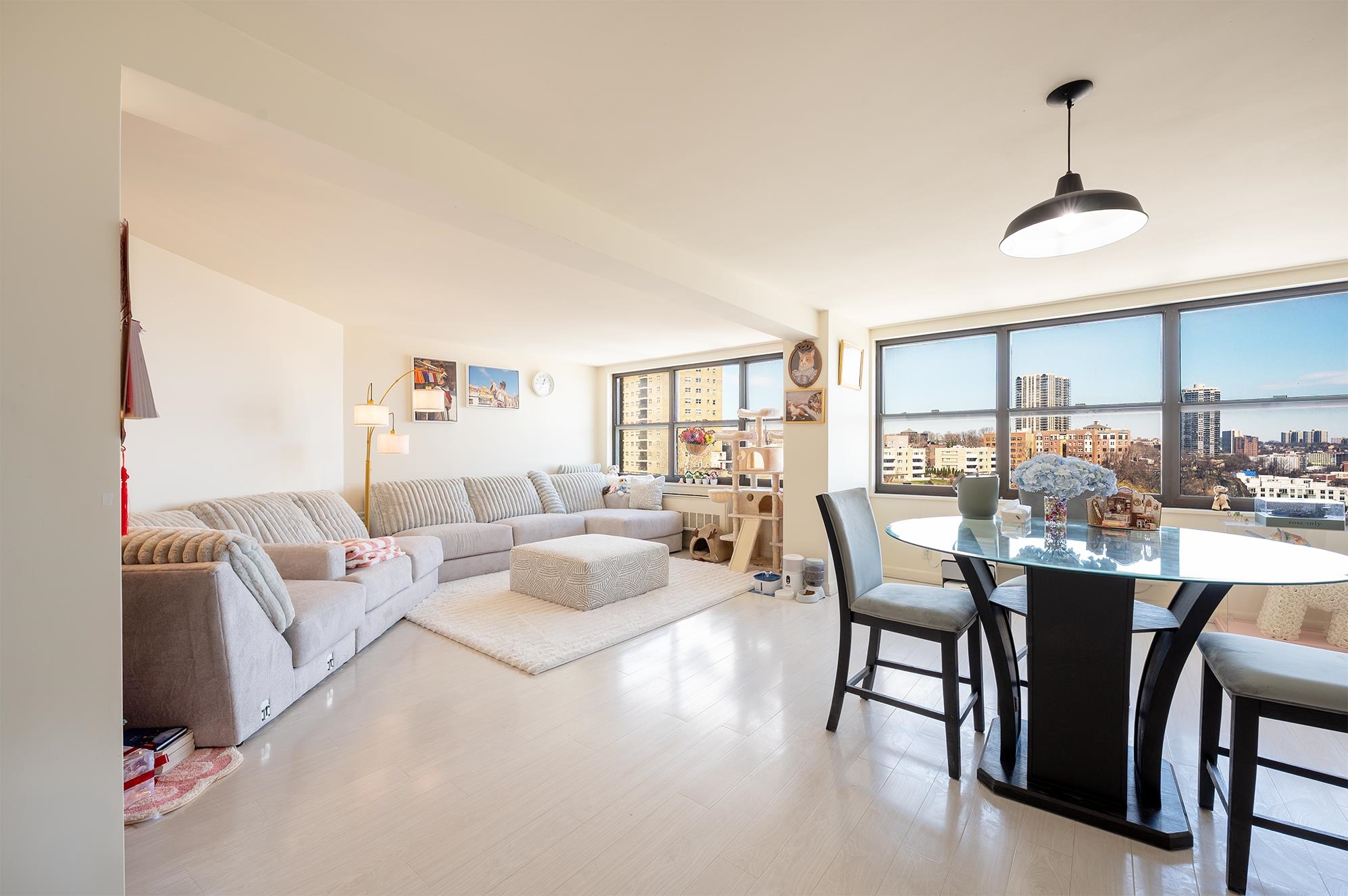 Perched high above the Hudson, this impeccably renovated residence at Galaxy Towers offers a rare blend of scale, sophistication, and sweeping skyline views. Spanning over 1,900 sq ft, the home is thoughtfully curated with designer finishes, bespoke details, and premium appliances throughout. Expansive living and dining areas are bathed in natural light, seamlessly connected to a chef’s kitchen designed for both function and style. The primary suite serves as a private retreat, complete with an en-suite half bath, oversized walk-in closet, and a cedar-lined closet for elevated storage. Residents enjoy access to Galaxy Towers’ full-service amenities, including 24-hour concierge, resort-style indoor and outdoor pools, fitness center, sauna, jacuzzi, tennis courts, and on-site conveniences—offering a lifestyle defined by comfort and ease. Garage parking available for $250/month. With effortless access to NYC, Hoboken, and Jersey City, with easy access to major highways. This residence embodies luxury waterfront living at its finest.
