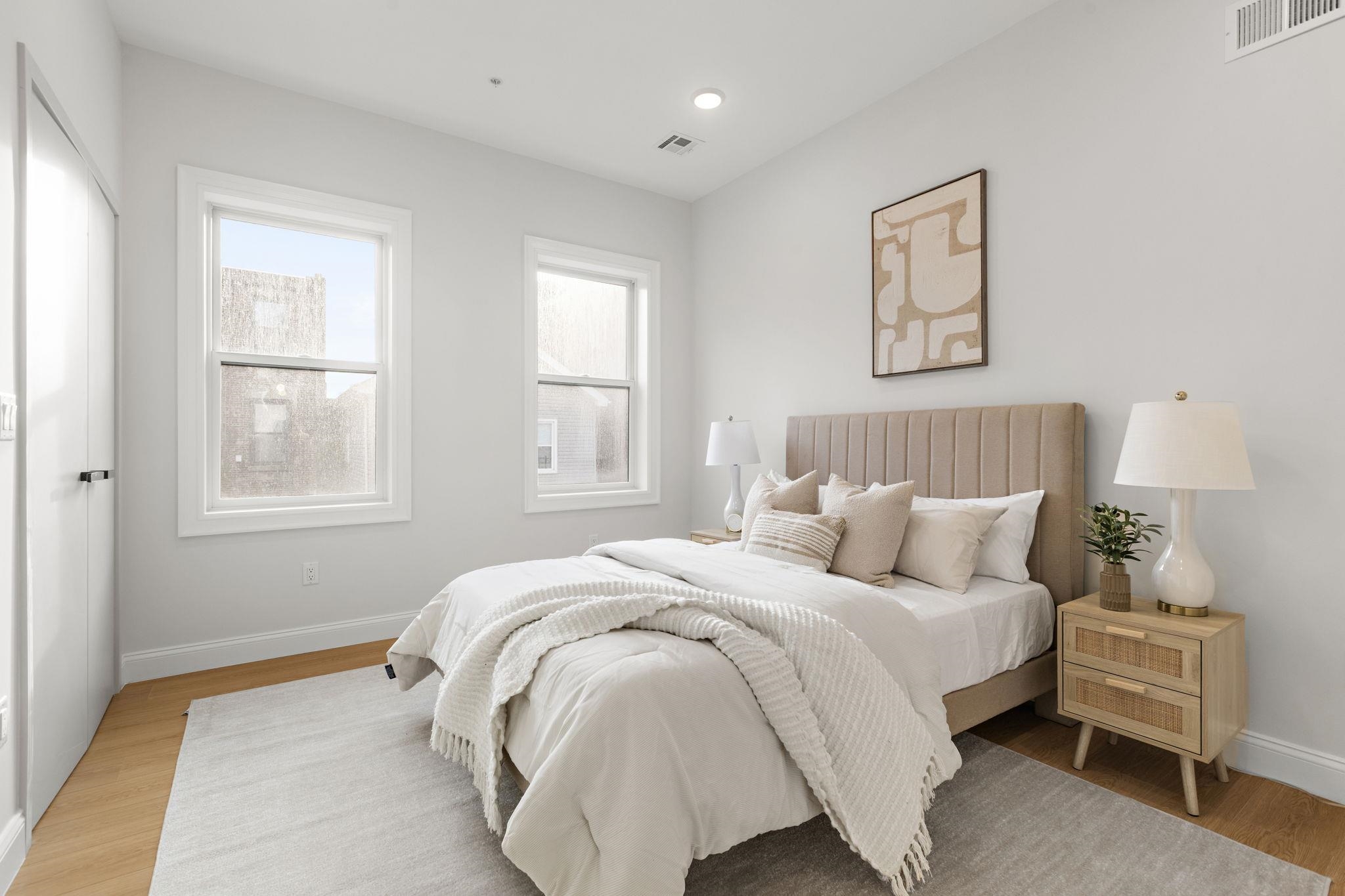 Five new-construction condominium homes redefine modern living in Jersey City Heights. Each home showcases a refined aesthetic and carefully curated details. Chef-inspired kitchens feature expansive Taj Mahal quartz islands, premium LG stainless appliances with gas range, a Frigidaire wine cooler, and Sharp built-in microwave. Primary baths offer a spa-like escape with porcelain and ceramic tiles, frameless glass showers, brushed gold hardware, Kohler fixtures, and natural teak vanities, while secondary baths boast sleek subway tiles, matte black channels, Moen fixtures, and LED mirrors. Wide-plank French oak flooring, soaring ceilings, custom lighting, and built-in electric fireplaces bring warmth and style throughout, creating homes that balance modern sophistication with everyday comfort. 192 Cambridge sits in prime location only one block to Washington Park and a few short blocks to The Arts District surrounding Riverview Park. Enjoy neighborhood cafés, Central Avenue shops, and vibrant restaurants, with the Congress Street Light Rail a short walk away, you’ll enjoy effortless access to Hoboken and Manhattan while keeping the Heights’ neighborhood charm at your doorstep.