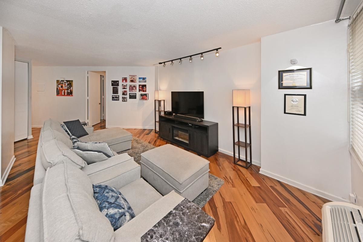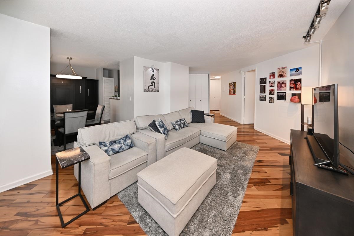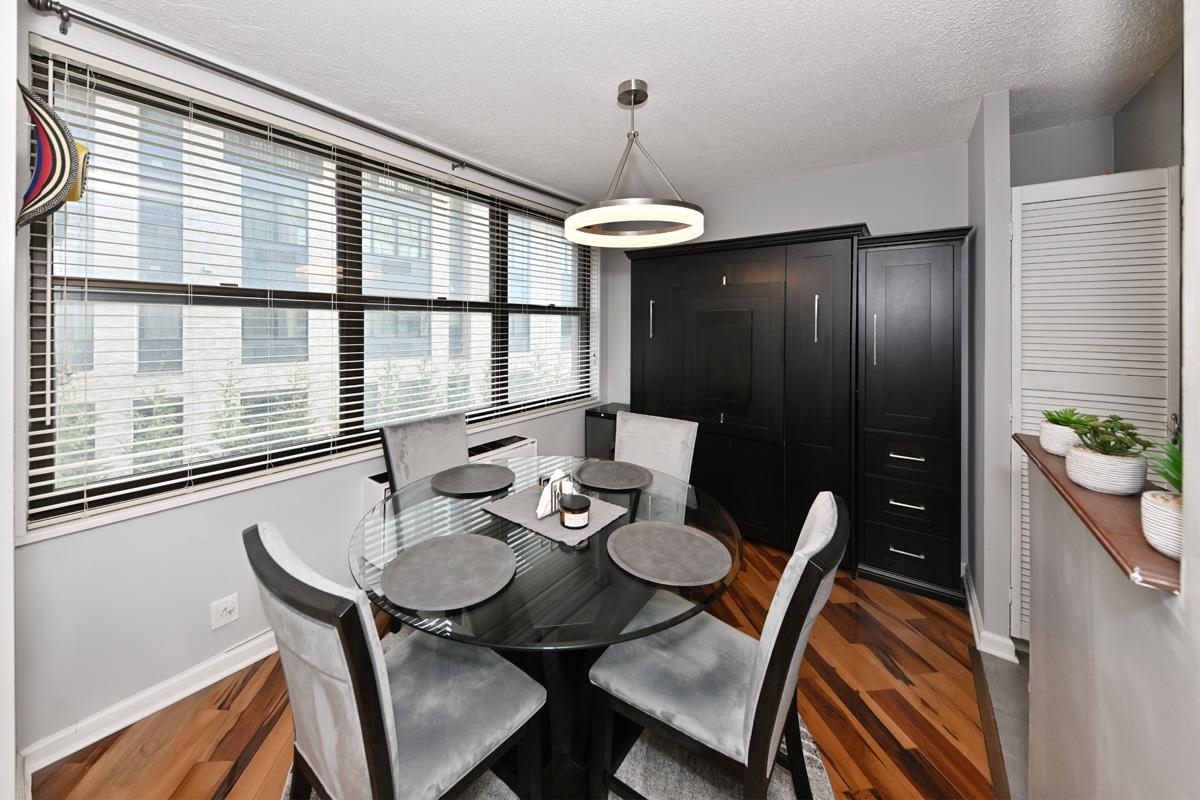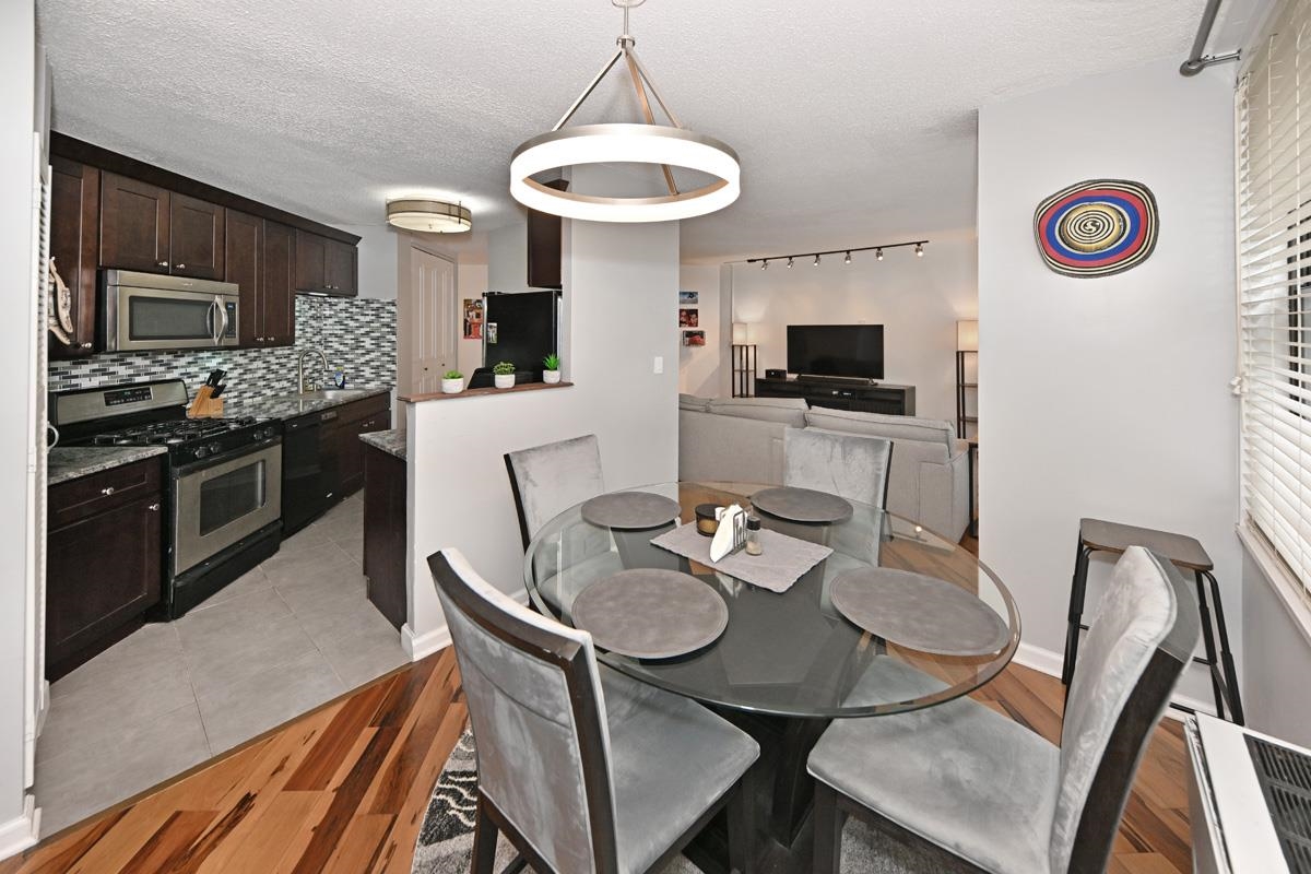 Experience Luxury high-rise living where serenity meets community. This beautiful renovated 979sf condominium offers a thoughtfully designed layout with one spacious bedroom featuring an en-suite bathroom along with a convenient half bath for guests. The kitchen is both elegant and functional, showcasing rich dark chocolate cabinetry, stainless steel appliances, granite countertops, a sleek glass backsplash, and tiled flooring-all seamlessly flowing into the dining area. Designed with versality in mind, the dining space features a Murphy bed, making it idea for hosting guests creating a home office, or adapting to your lifestyle needs. Gorgeous hardwood floors run throughout complemented by an abundance of custom closets that provide both style and exceptional storage. Residents of the Galaxy enjoy an impressive array of amenities designed to promote wellness, relaxation, and connection. Indulge in a state-of-the-art fitness center, tennis courts, indoor and outdoors pools, hot tub, sauna, and steam rooms-all exclusively available to residents. The community is thoughtfully designed to nurture the body, mind and soul. All amenities and utilities are included in the monthly maintenance fee, with parking available for an additional $120 per parking space. Relax, recharge, and embrace a lifestyle of comfort and tranquility in your own luxury retreat. First time may be eligible for up to $15,000 in down payment and lcosing cost assistance.