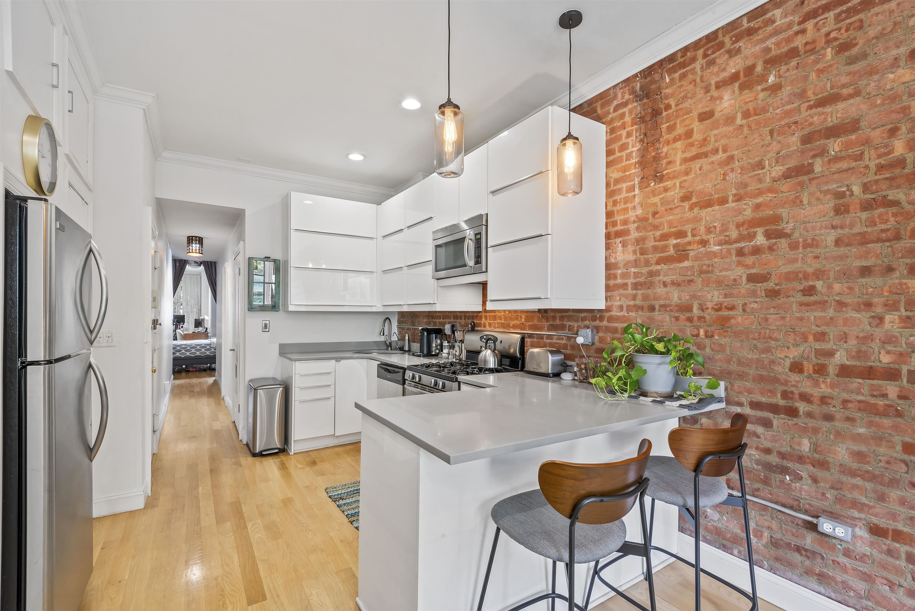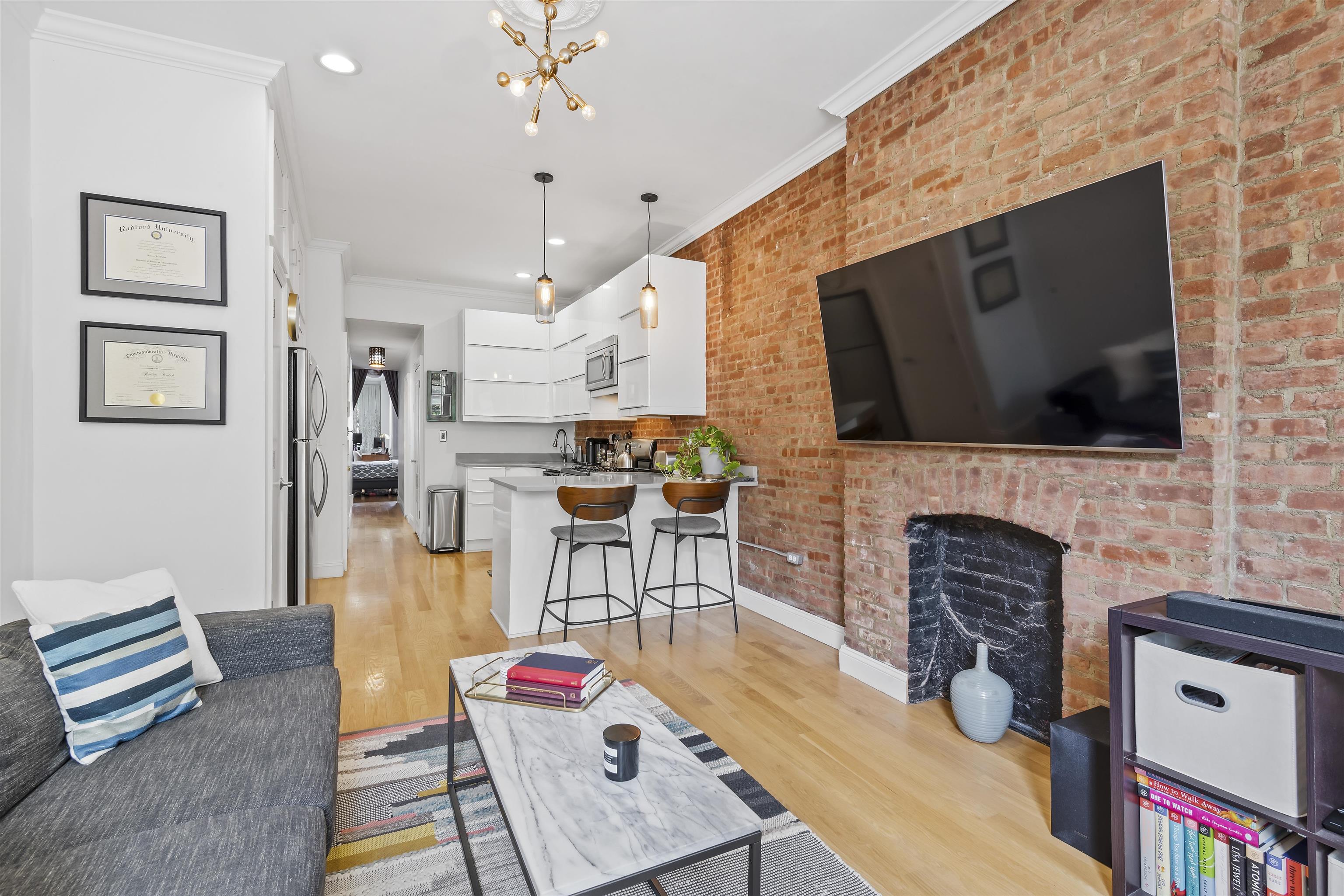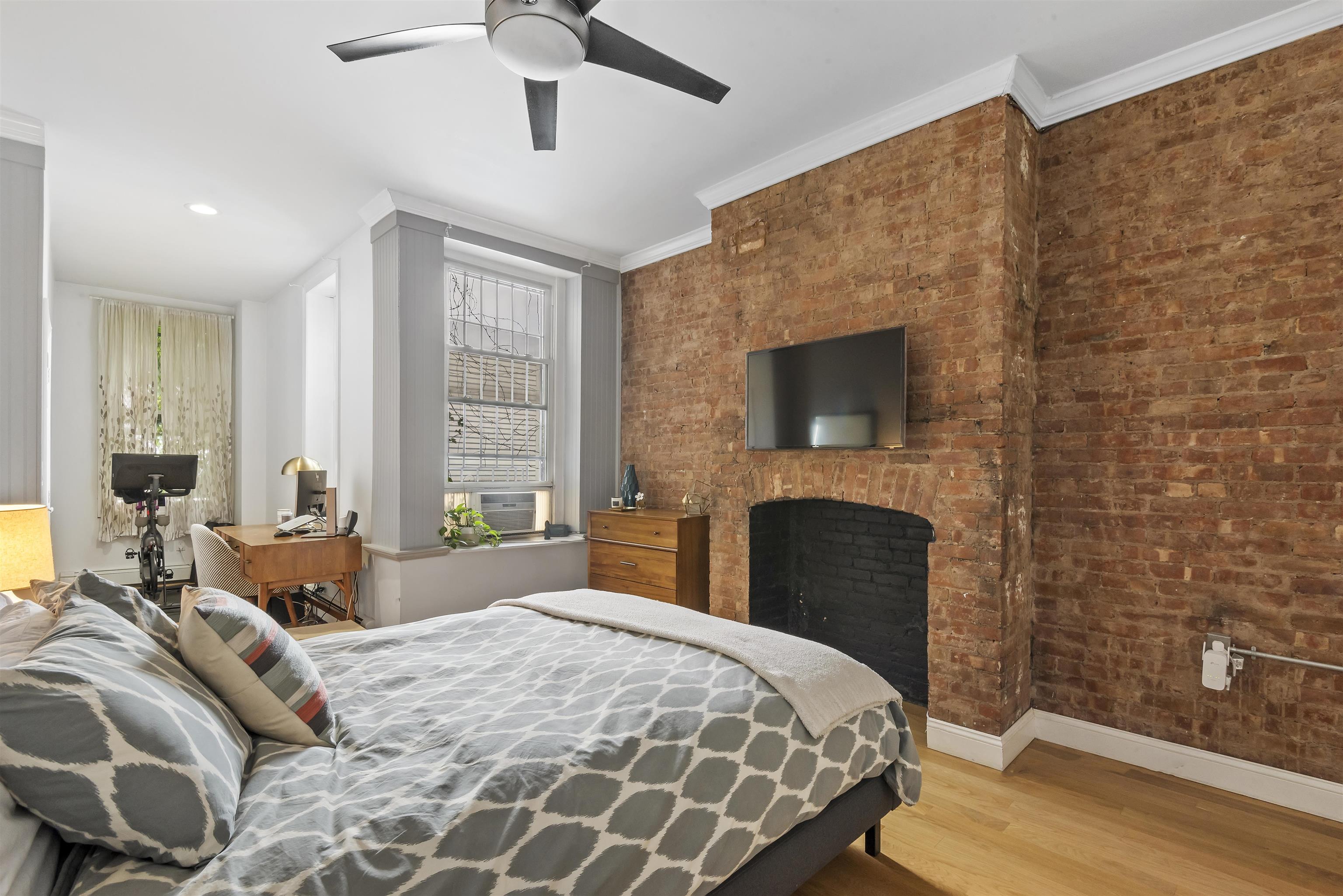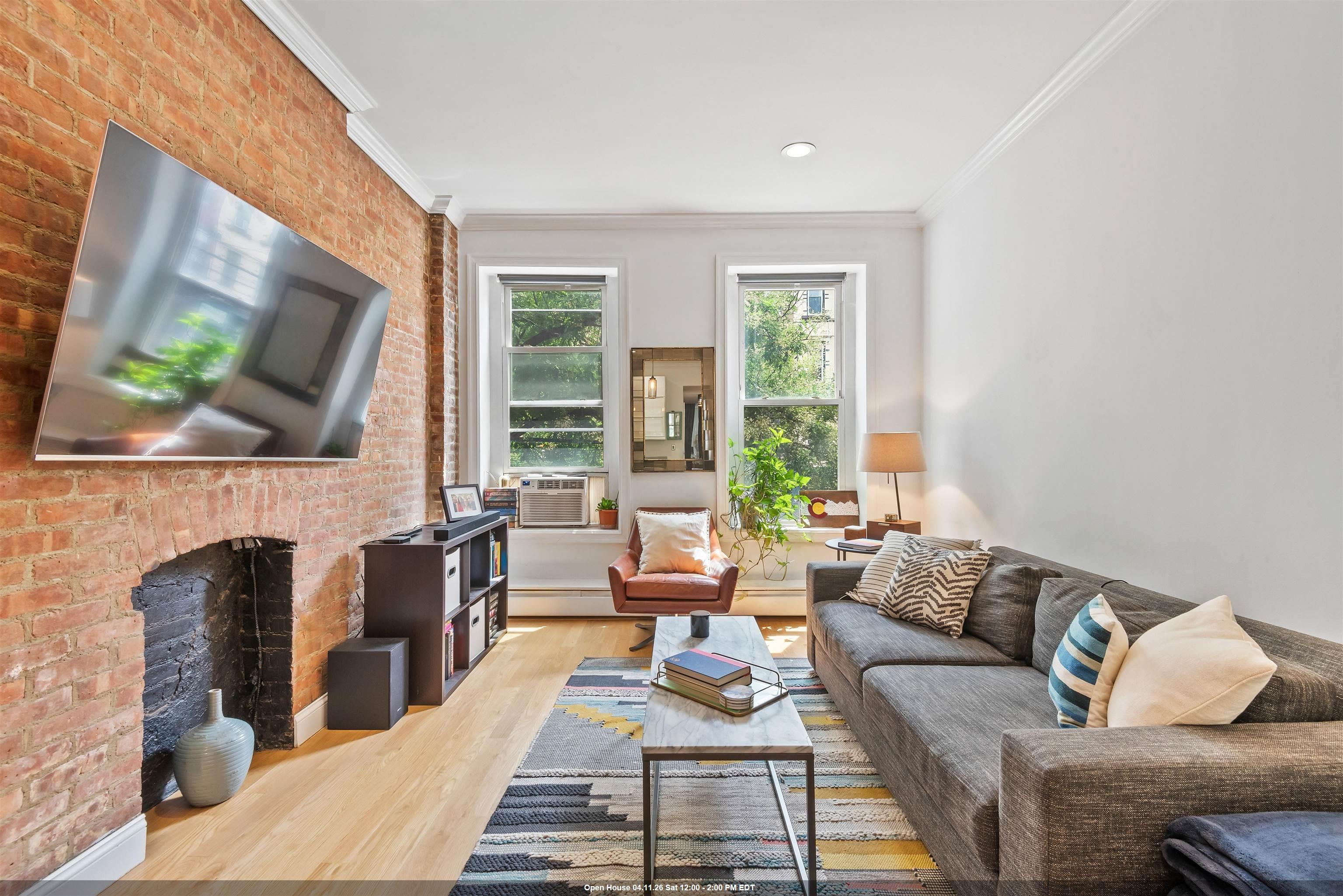 Welcome home to this sun-drenched, stylish one-bedroom plus alcove/den, perfectly situated in a classic historic row house in the heart of prime downtown Jersey City. Located just one flight up on the second floor, this residence is a perfect opportunity for first-time homebuyers or savvy investors looking for a highly desirable property. The home beautifully balances historic charm with sleek modern upgrades. The open living space features soaring high ceilings, gorgeous hardwood floors, exposed brick walls, and two striking decorative fireplaces. Large windows flood the apartment with natural light, highlighting the incredible character throughout. Entertaining is easy in the sleek, modern kitchen, complete with a brand new dishwasher and faucet, gas stove, water filter, microwave and a welcoming breakfast bar. The spacious bedroom is a true retreat, offering three generous closets and flowing seamlessly into a windowed alcove that serves well as a home office or nursery. The modern bathroom offers beautiful custom tiled flooring. For your ultimate everyday convenience, the apartment includes an in-unit washer/dryer and numerous closets providing tons of storage space. Location is truly everything, and this apartment puts you in the center of it all. Step outside your door to enjoy the lush greenery of Van Vorst Park, the lively Newark Avenue Pedestrian Plaza, local farmers markets, and downtown's best boutique shops and highly-rated restaurants. Commuting is a breeze with incredibly close proximity to the Grove Street PATH station. Showings will start after April 6th after 5pm.