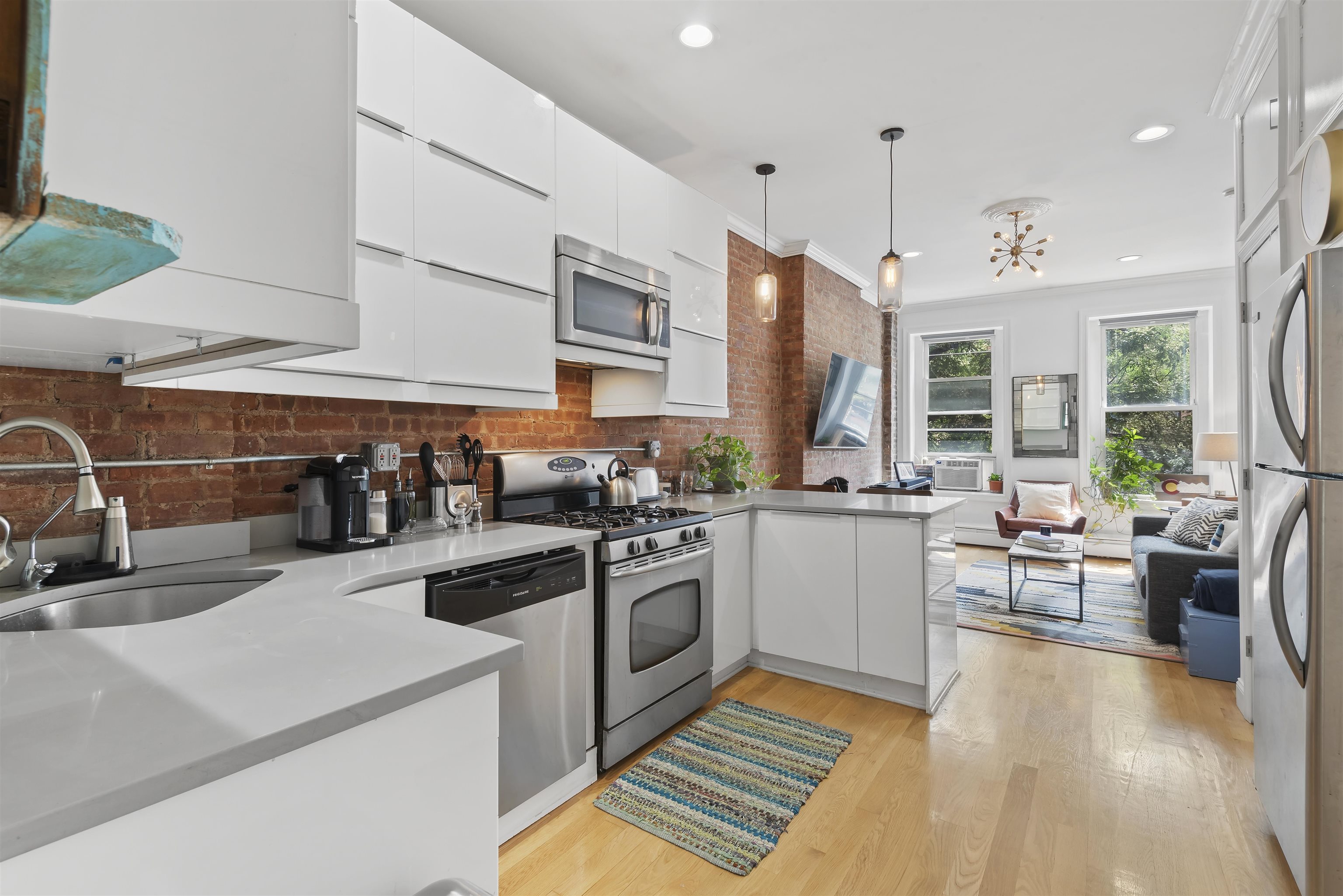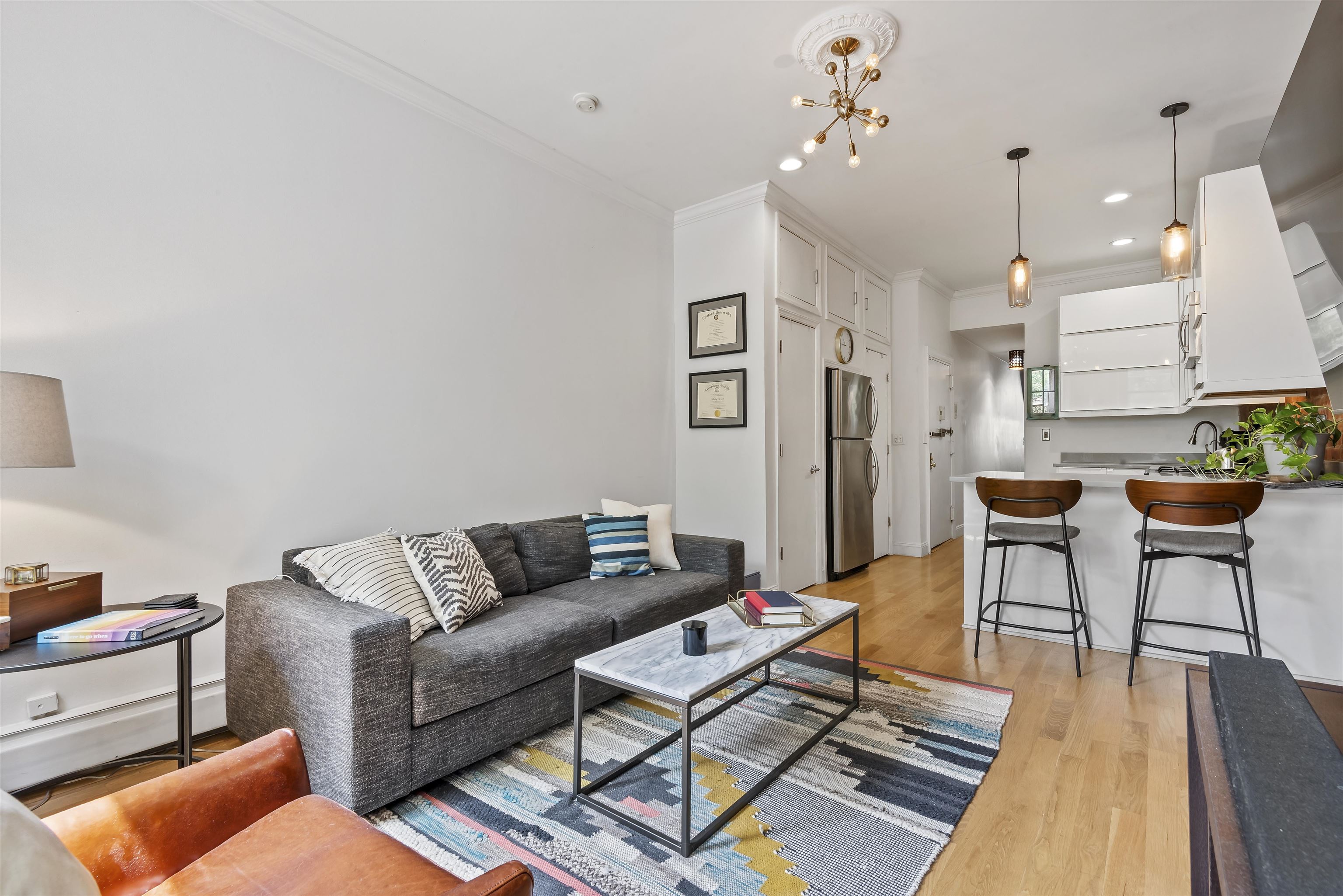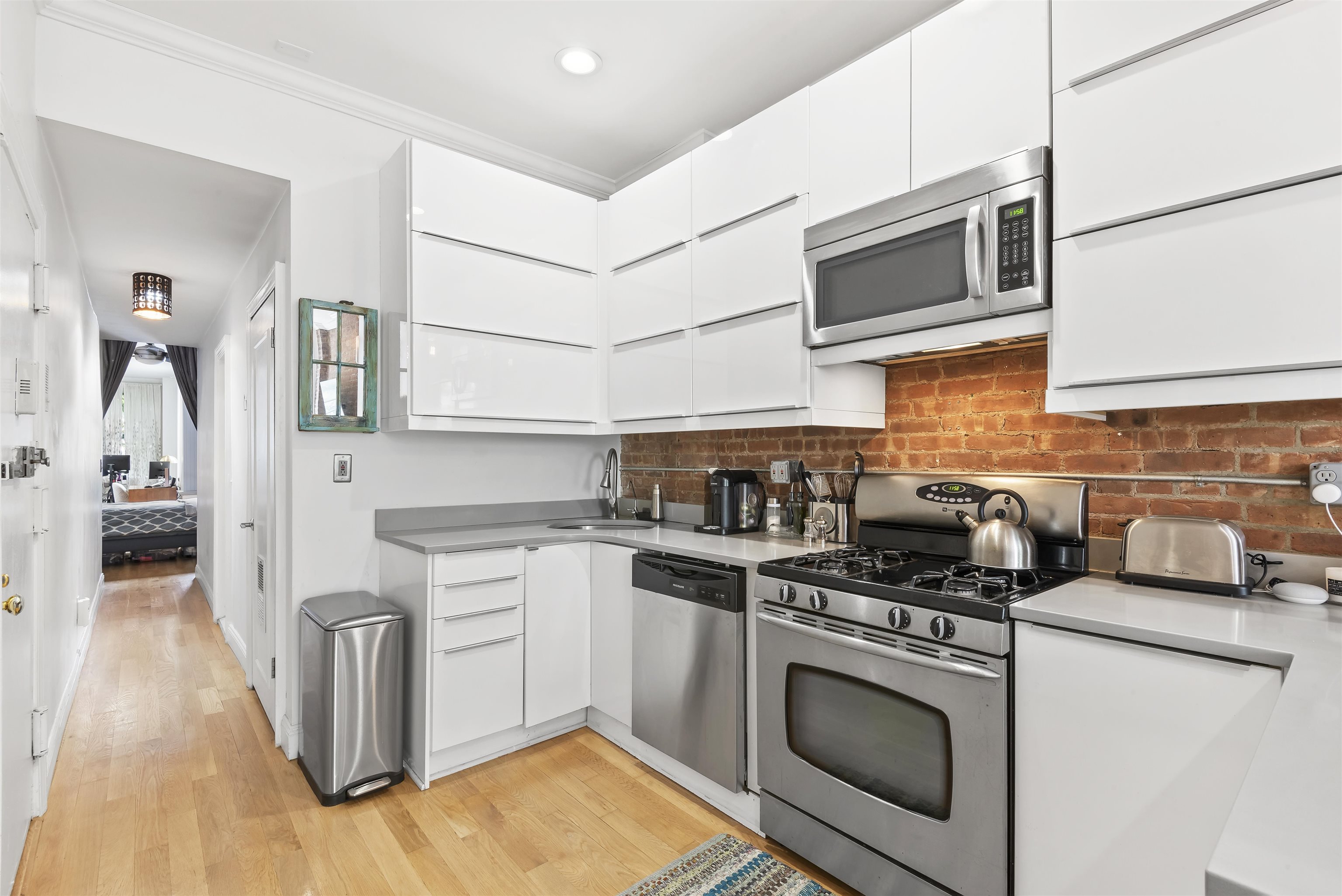 Welcome home to this sun-drenched, stylish one-bedroom plus alcove/den, perfectly situated in a classic historic row house in the heart of prime downtown Jersey City. Located just one flight up on the second floor, this residence is a perfect opportunity for first-time homebuyers or savvy investors looking for a highly desirable property. The home beautifully balances historic charm with sleek modern upgrades. The open living space features soaring high ceilings, gorgeous hardwood floors, exposed brick walls, and two striking decorative fireplaces. Large windows flood the apartment with natural light, highlighting the incredible character throughout. Entertaining is easy in the sleek, modern kitchen, complete with a brand new dishwasher and faucet, gas stove, water filter, microwave and a welcoming breakfast bar. The spacious bedroom is a true retreat, offering three generous closets and flowing seamlessly into a windowed alcove that serves well as a home office or nursery. The modern bathroom offers beautiful custom tiled flooring. For your ultimate everyday convenience, the apartment includes an in-unit washer/dryer and numerous closets providing tons of storage space. Location is truly everything, and this apartment puts you in the center of it all. Step outside your door to enjoy the lush greenery of Van Vorst Park, the lively Newark Avenue Pedestrian Plaza, local farmers markets, and downtown's best boutique shops and highly-rated restaurants. Commuting is a breeze with incredibly close proximity to the Grove Street PATH station. Showings will start after April 6th after 5pm.