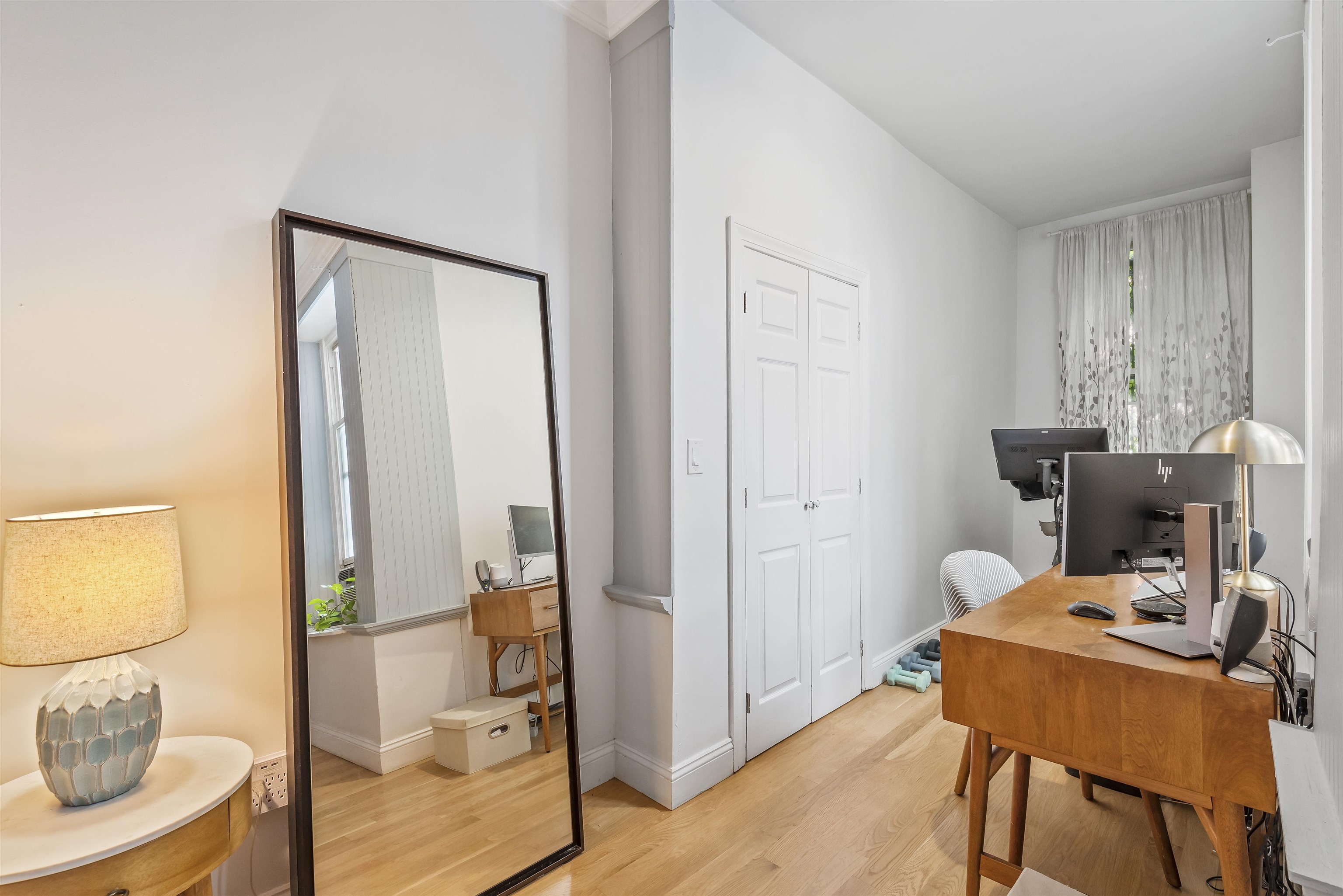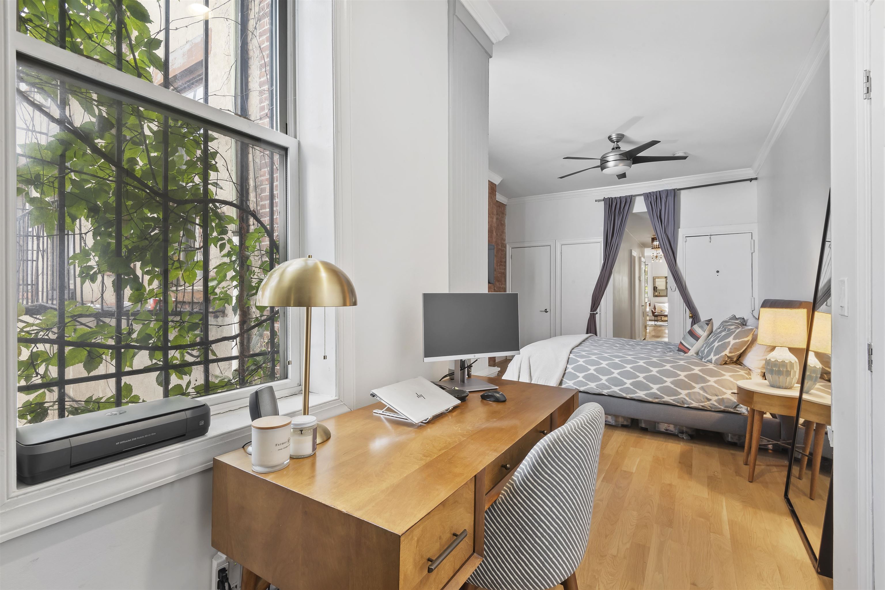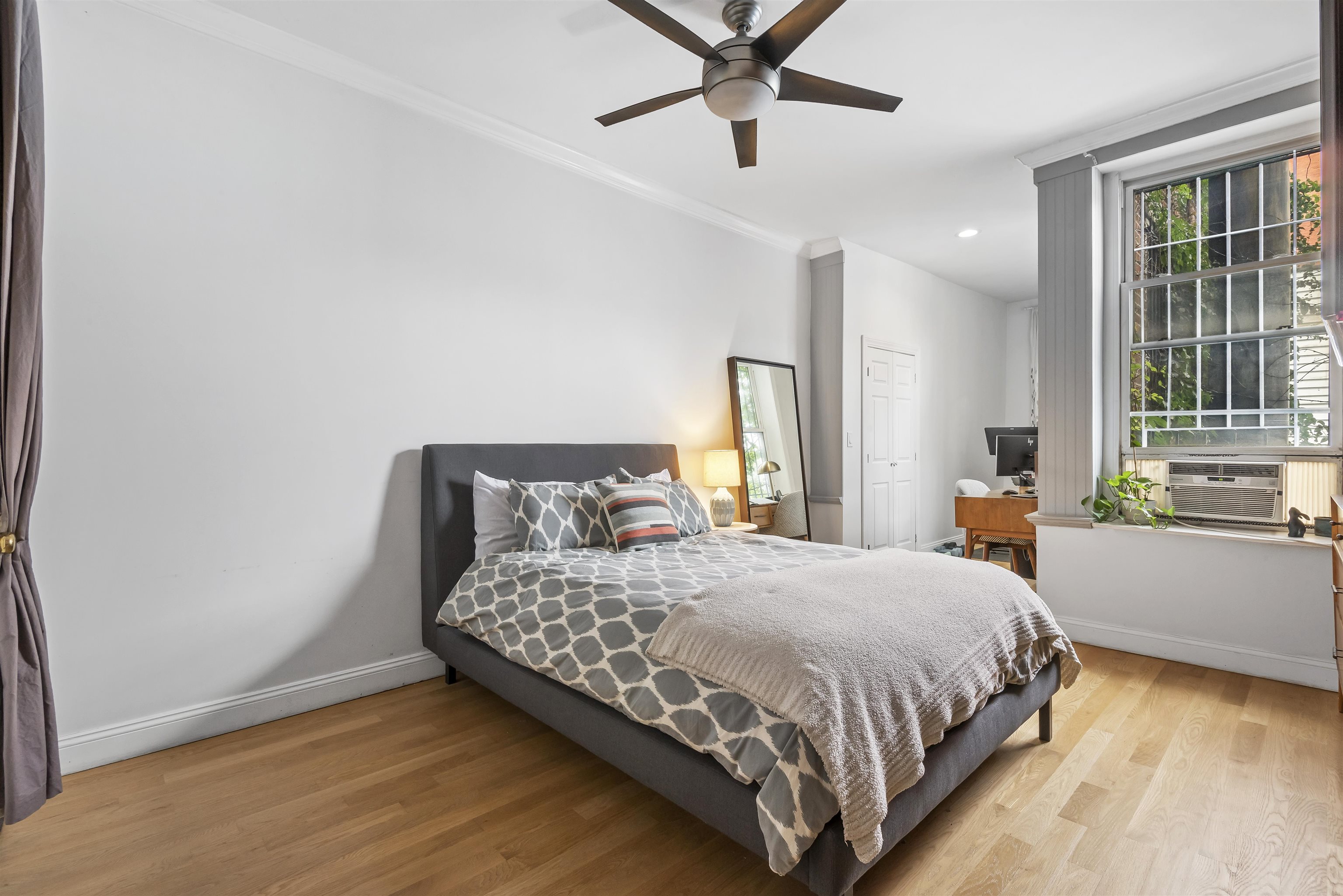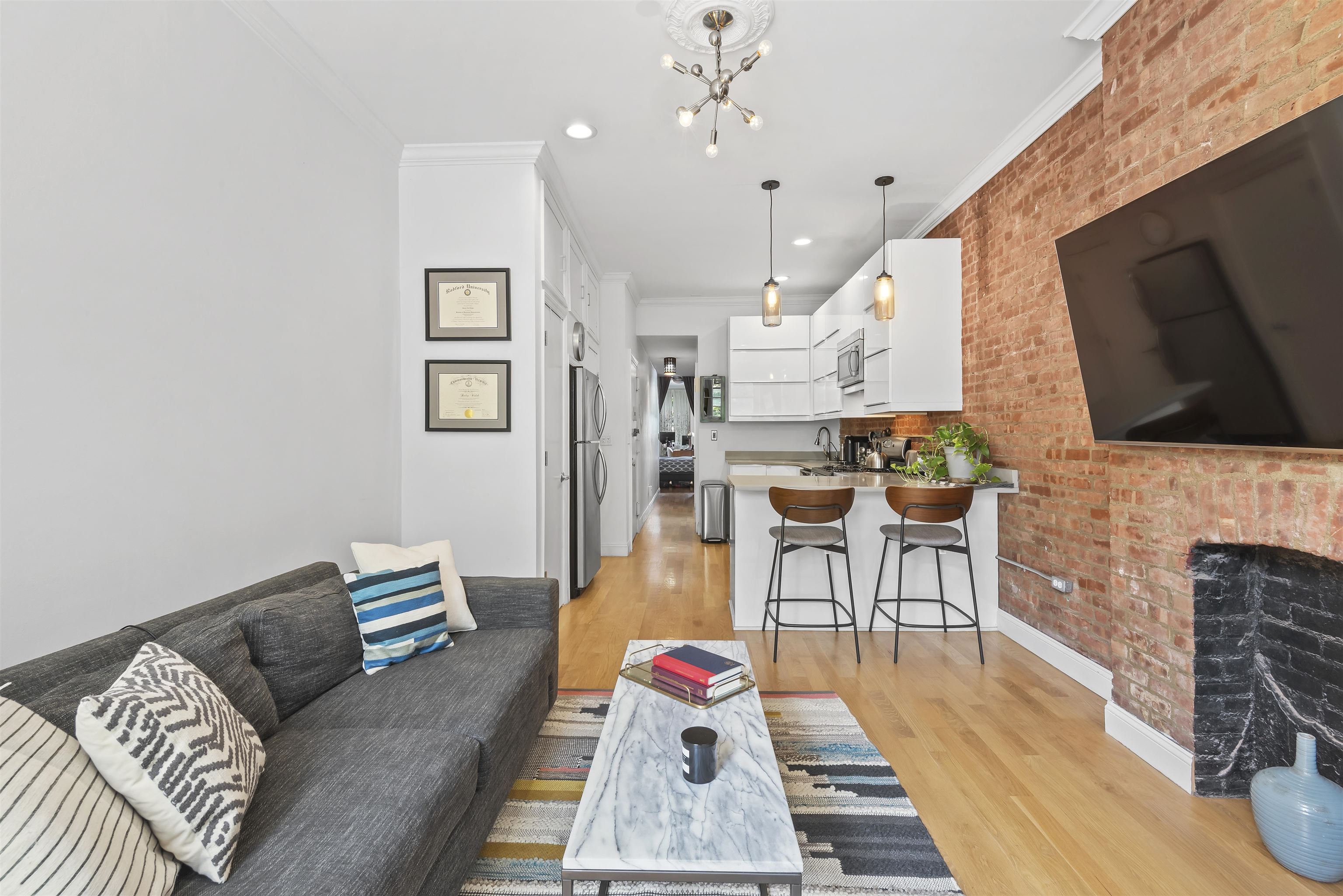 Welcome home to this sun-drenched, stylish one-bedroom plus alcove/den, perfectly situated in a classic historic row house in the heart of prime downtown Jersey City. Located just one flight up on the second floor, this residence is a perfect opportunity for first-time homebuyers or savvy investors looking for a highly desirable property. The home beautifully balances historic charm with sleek modern upgrades. The open living space features soaring high ceilings, gorgeous hardwood floors, exposed brick walls, and two striking decorative fireplaces. Large windows flood the apartment with natural light, highlighting the incredible character throughout. Entertaining is easy in the sleek, modern kitchen, complete with a brand new dishwasher and faucet, gas stove, water filter, microwave and a welcoming breakfast bar. The spacious bedroom is a true retreat, offering three generous closets and flowing seamlessly into a windowed alcove that serves well as a home office or nursery. The modern bathroom offers beautiful custom tiled flooring. For your ultimate everyday convenience, the apartment includes an in-unit washer/dryer and numerous closets providing tons of storage space. Location is truly everything, and this apartment puts you in the center of it all. Step outside your door to enjoy the lush greenery of Van Vorst Park, the lively Newark Avenue Pedestrian Plaza, local farmers markets, and downtown's best boutique shops and highly-rated restaurants. Commuting is a breeze with incredibly close proximity to the Grove Street PATH station. Showings will start after April 6th after 5pm.