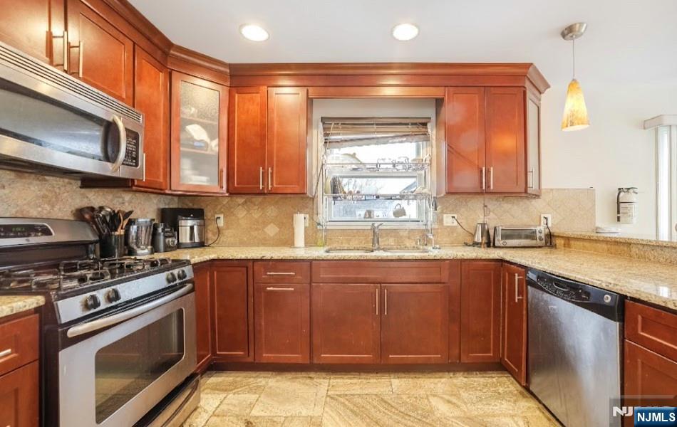 Well-maintained and spacious townhouse rental featuring 3 bedrooms and 3.5 bathrooms, located in the highly desirable town of Tenafly, known for its Blue Ribbon schools and convenient access to NYC. The main level offers an open-concept living and dining area, along with an eat-in kitchen complete with a breakfast bar, granite countertops, stainless steel appliances, and sliding doors that lead to a private deck and backyard. The top level includes three generously sized bedrooms and two full bathrooms. The lower-level den offers an additional full bathroom, a dedicated laundry room, and direct access to the two-car garage. Additional highlights include hardwood floors throughout, recessed lighting, abundant closet space, and extra driveway parking. Tenant is responsible for all utilities and snow removal. Landscaping is maintained by the landlord. Credit check, proof of income, and ID are required. A small pet may be considered.