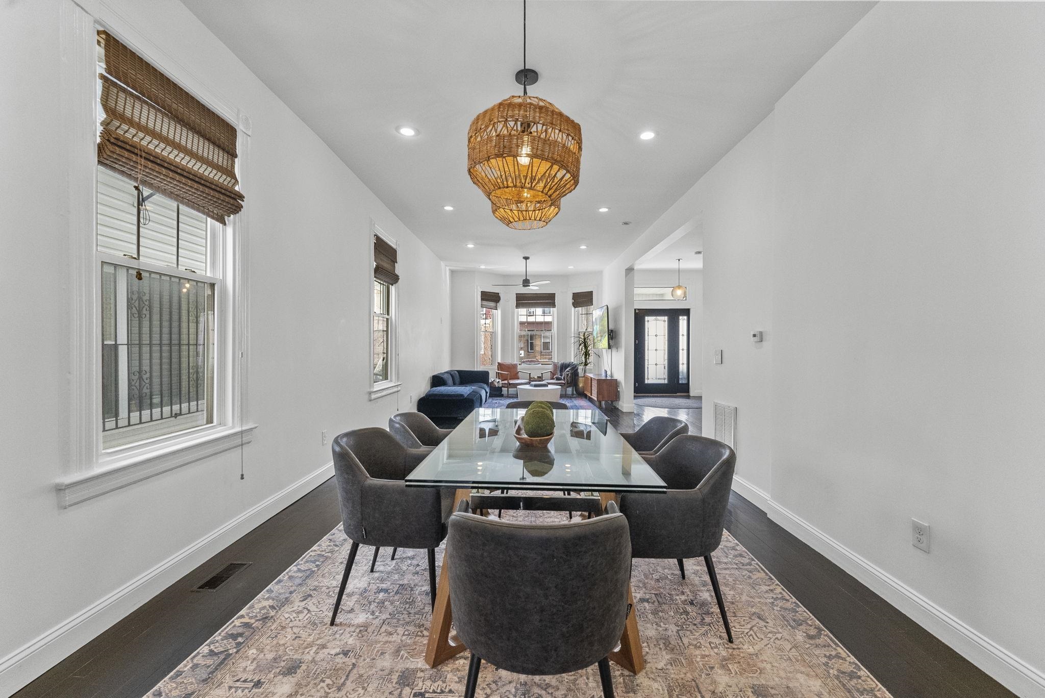 Not many homes in the world live like this—a refined Weehawken residence just five homes from iconic Boulevard East, where sweeping Manhattan views become part of your everyday. Perfectly positioned for an effortless NYC commute, this home pairs a true neighborhood feel with the convenience of the city just minutes away. Thoughtfully reimagined from a former two-family into a stunning single-family retreat, the home was designed to live beautifully with 4 bedrooms and 3 full bathrooms, plus a finished basement and a finished attic—each space offering flexibility, comfort, and an elevated sense of scale. The attic provides easy access to a rooftop escape with skyline views, and can easily serve as an additional bedroom, home office, creative studio, or anything else you can imagine. Inside, natural sunlight pours through an abundance of windows and soaring 10-foot ceilings, creating an airy, magazine-worthy atmosphere throughout. The finished basement expands your living space even further with a dedicated at-home gym and a comfortable family room—perfect for everyday life, entertaining, or movie nights. The primary suite is its own private escape, featuring a walk-in closet and a spa-level ensuite designed for true relaxation—complete with a massive rainfall shower and a separate soaking tub made for bubble baths and unwinding at the end of the day. A standout bonus is the enclosed porch, a flexible space that can be redesigned into an outdoor porch, used as an oversized dressing closet, or styled as a bright sunroom. At the heart of the home is a true open-concept chef’s kitchen, designed for both daily living and hosting. Granite countertops, an oversized sink, and multiple windows bring in beautiful light and a sense of openness, while a BlueStar 48†professional-grade range anchors the space with serious culinary capability. A massive pantry adds exceptional storage, and just beyond the kitchen, a walk-out patio flows to the backyard—ideal for seamless indoor/outdoor entertaining. this home blends craftsmanship, comfort, and location in a way few properties can. A rare Weehawken offering—views, space, and NYC access, all in one.