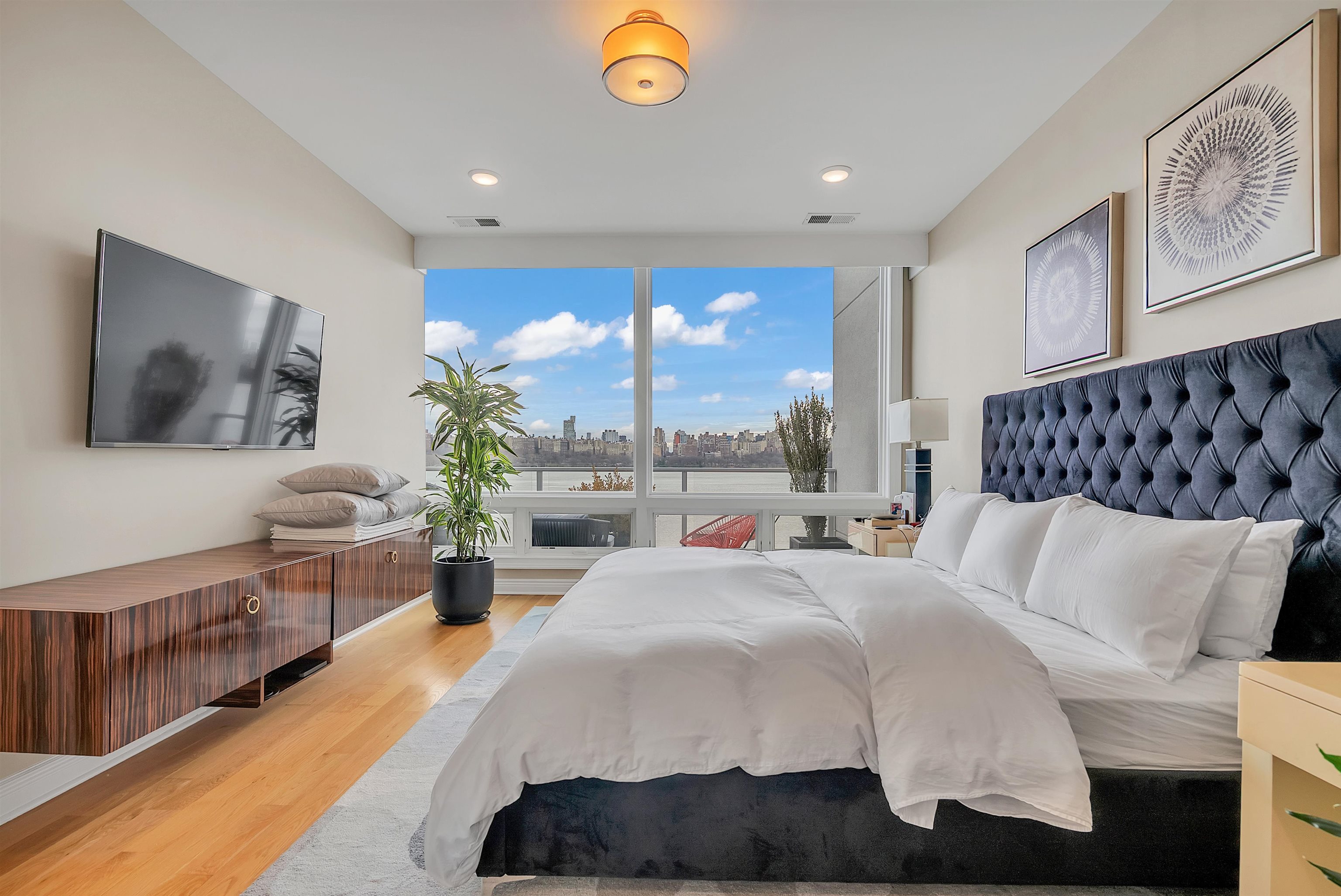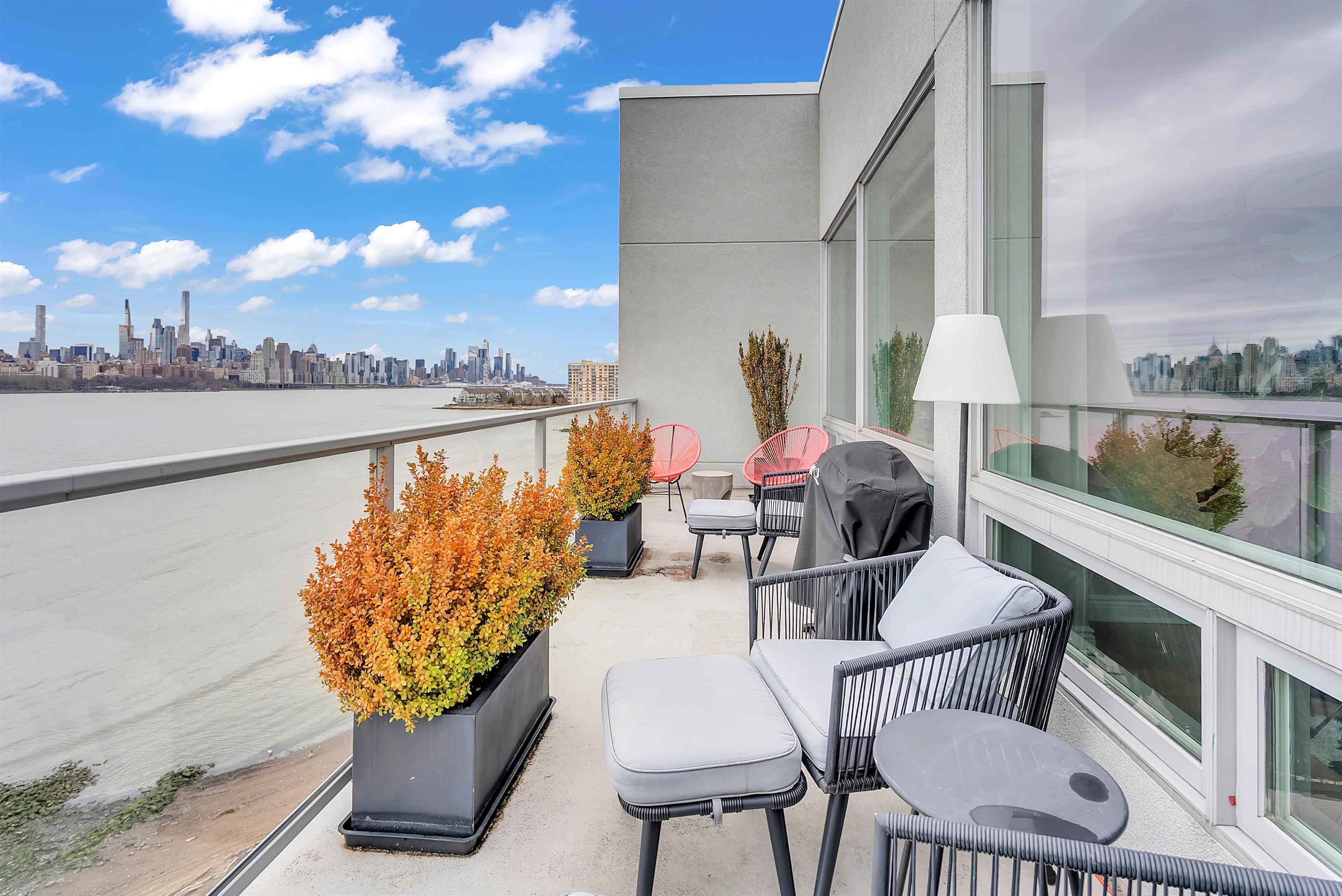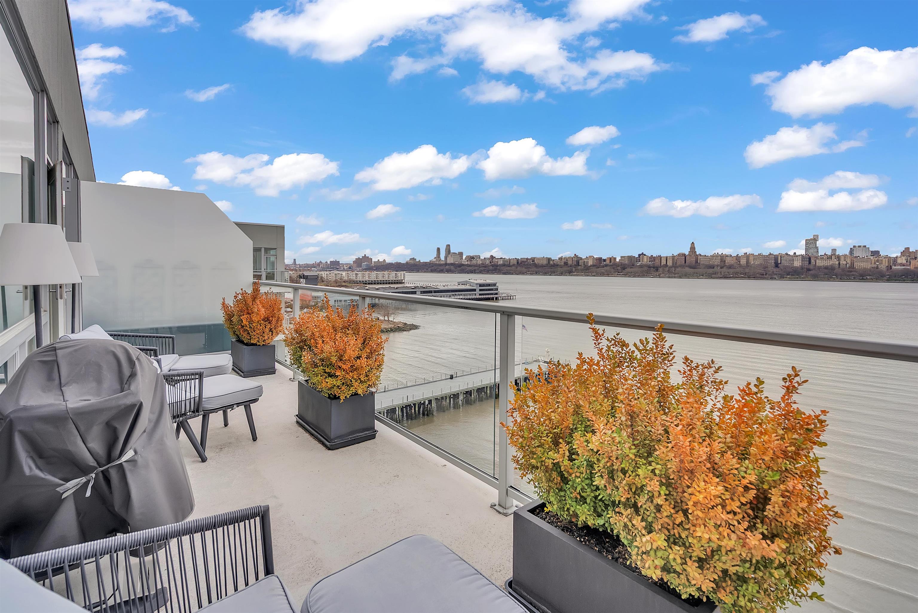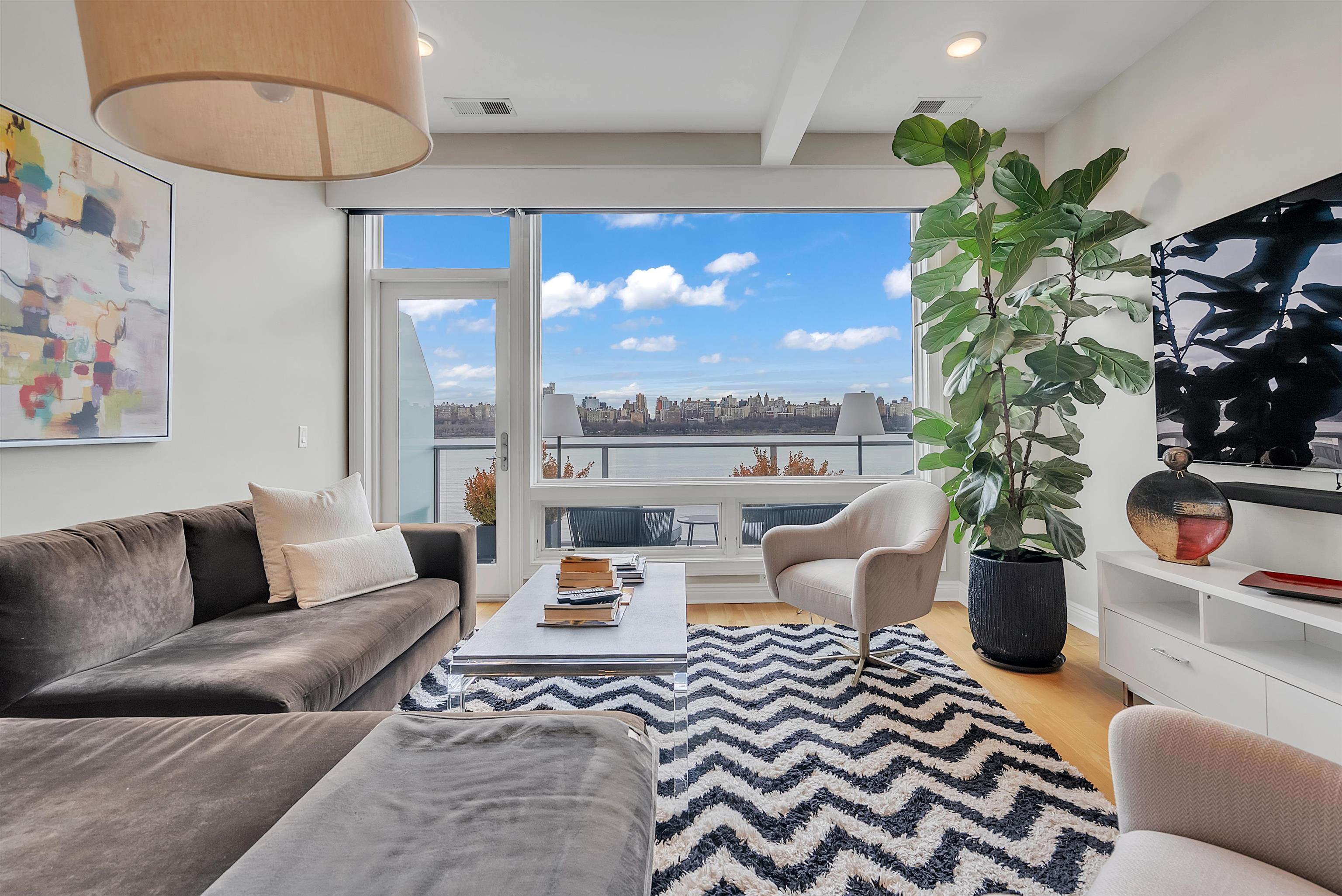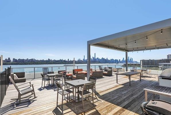 Perched on the top floor, this exceptional 3-bedroom, 2-bath residence offers a rare combination of elevated living, refined finishes, and sweeping NYC skyline views from nearly every room. Spanning approximately 1,430 square feet, the home features soaring ceilings and expansive windows that flood the space with natural light, enhancing the perfectly designed layout. The open-concept living and dining area flows seamlessly, ideal for both everyday living and entertaining, while the chef’s kitchen is appointed with top-of-the-line appliances, sleek cabinetry, and premium finishes throughout. Each bedroom is generously sized, including a stunning primary suite with a spa-inspired bath designed for comfort and relaxation. Step outside to your private east-facing balcony, an incredible highlight, where unobstructed skyline views create the perfect setting for morning coffee or evening unwinding. Top-floor positioning offers added privacy and exclusivity rarely available in the building. Set within a highly desirable, amenity-rich community, this residence delivers the perfect blend of luxury, space, and lifestyle.