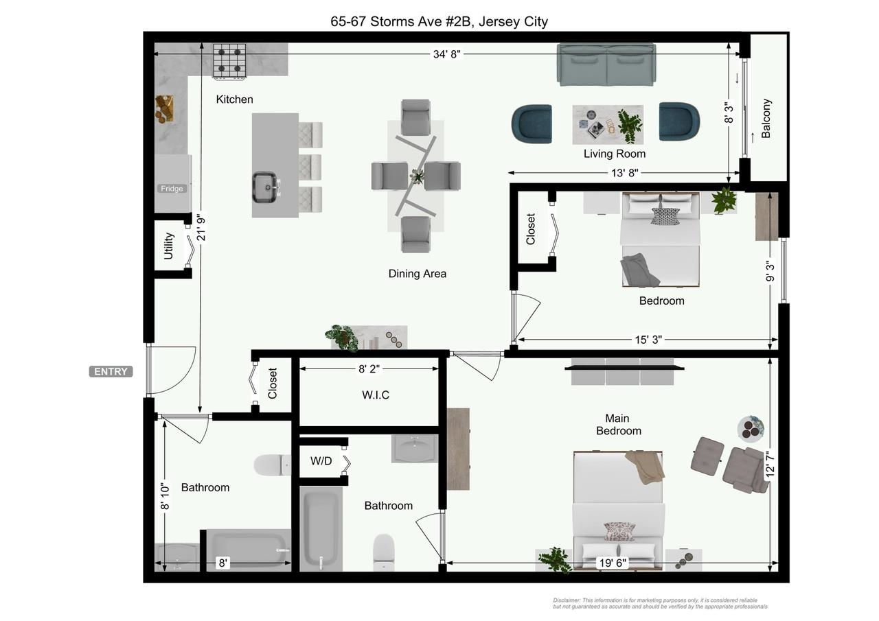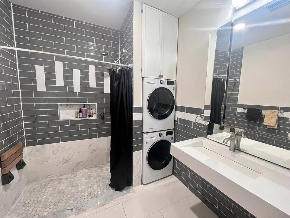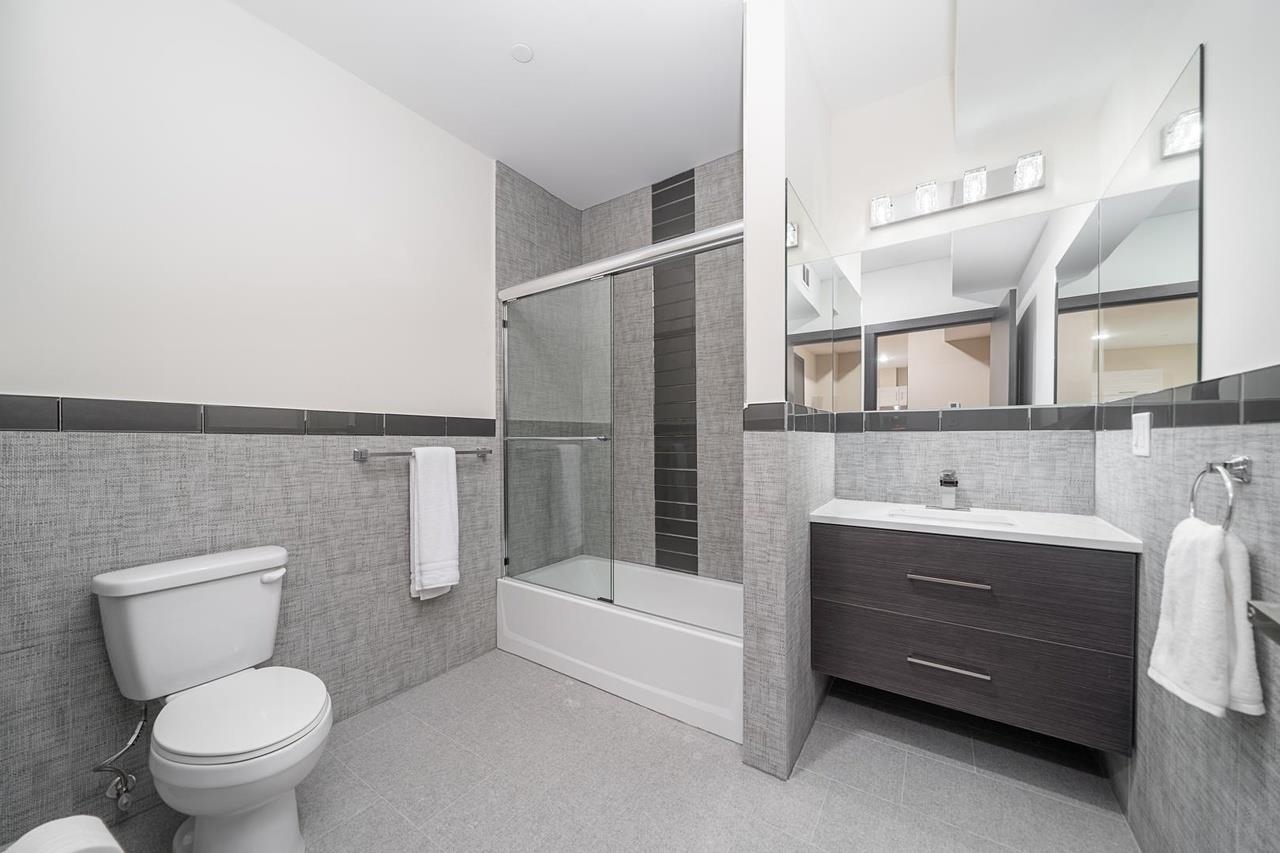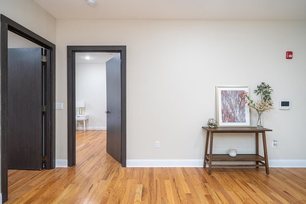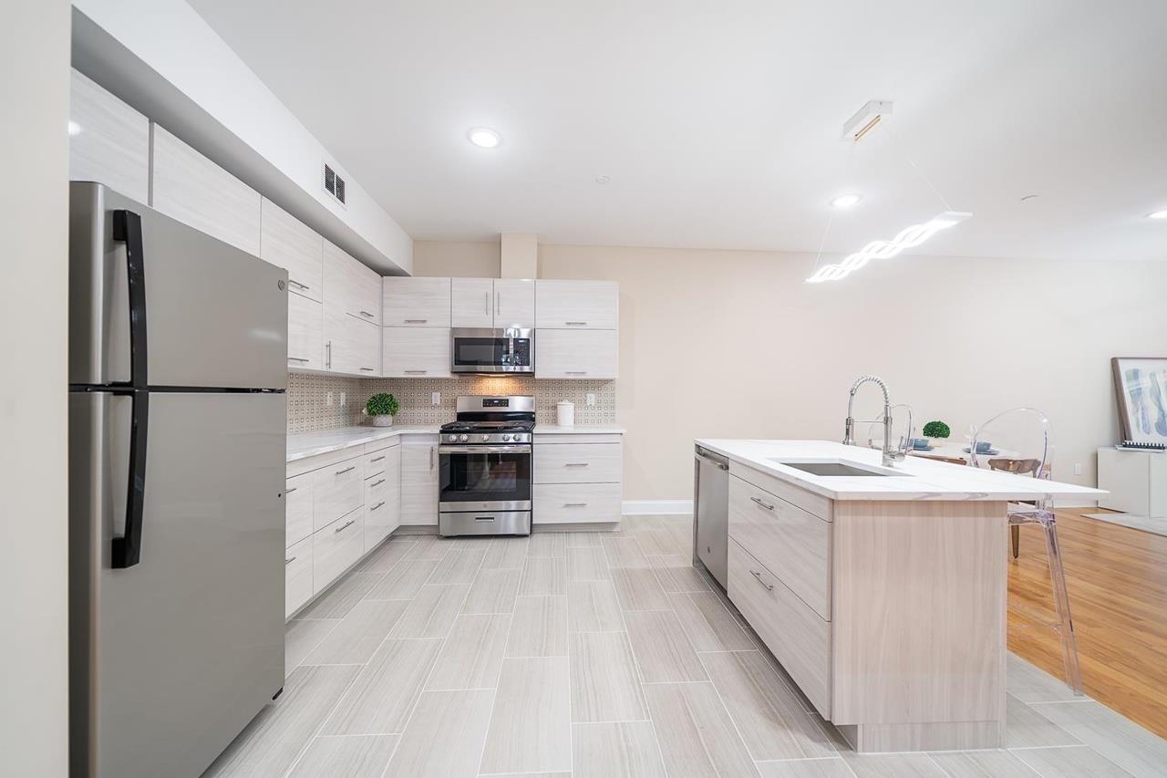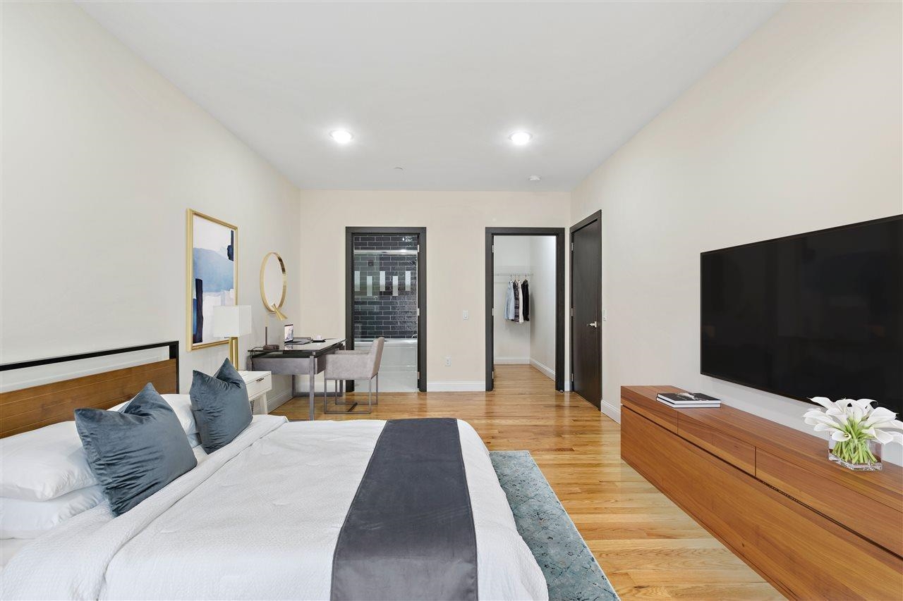 Experience luxury living in this modern and stylish 2-bedroom, 2-bathroom, built in 2022. Enjoy an open-concept kitchen, dining, and living space that seamlessly extends to your private balcony. The spacious bedrooms feature ample closets, centralized AC and heating, and the convenience of an in-unit washer and dryer. Garage parking is included, with an assigned space. Plus, a stunning rooftop deck offers views of NYC. Pet friendly.