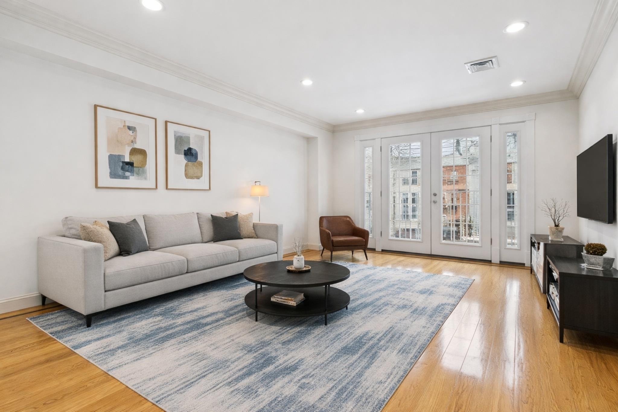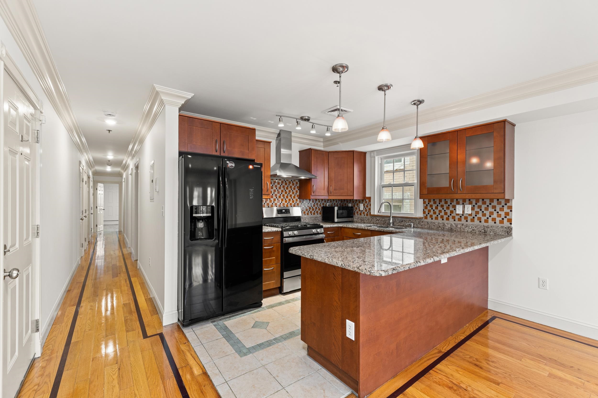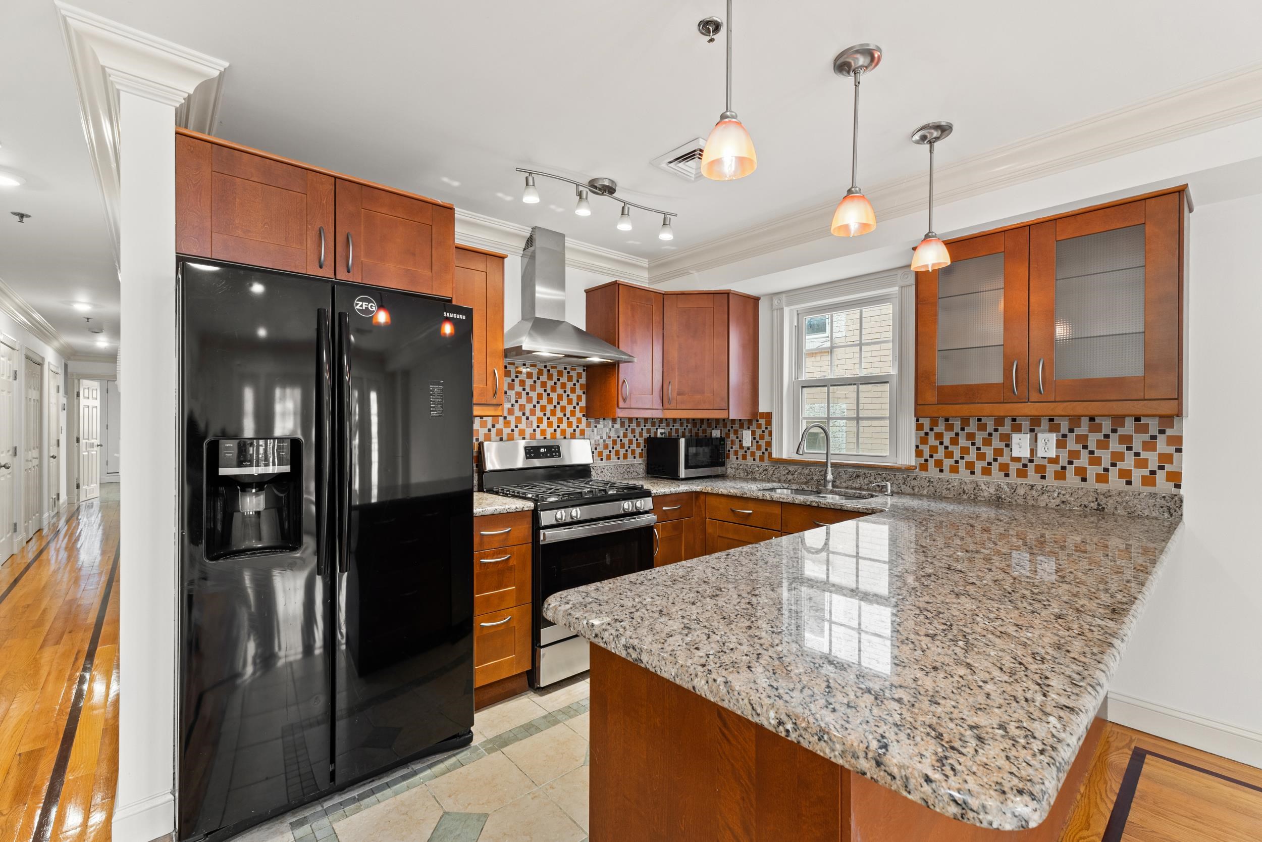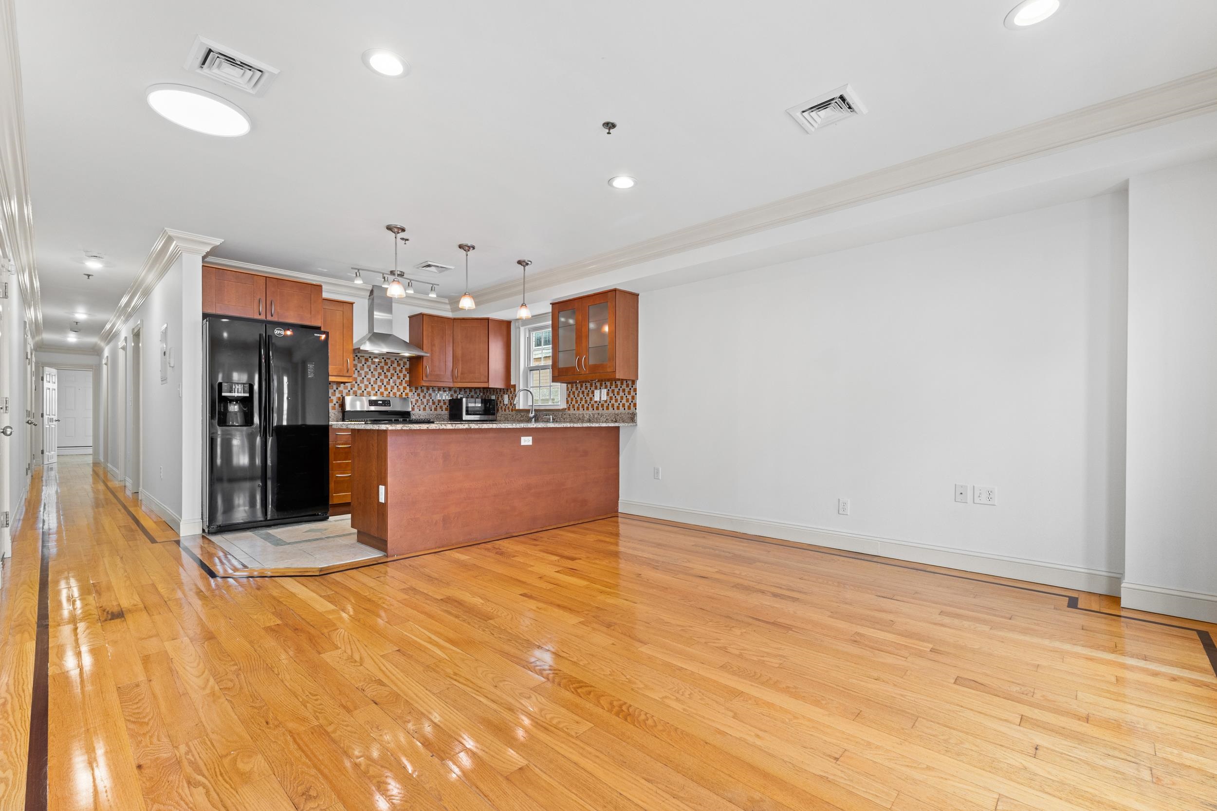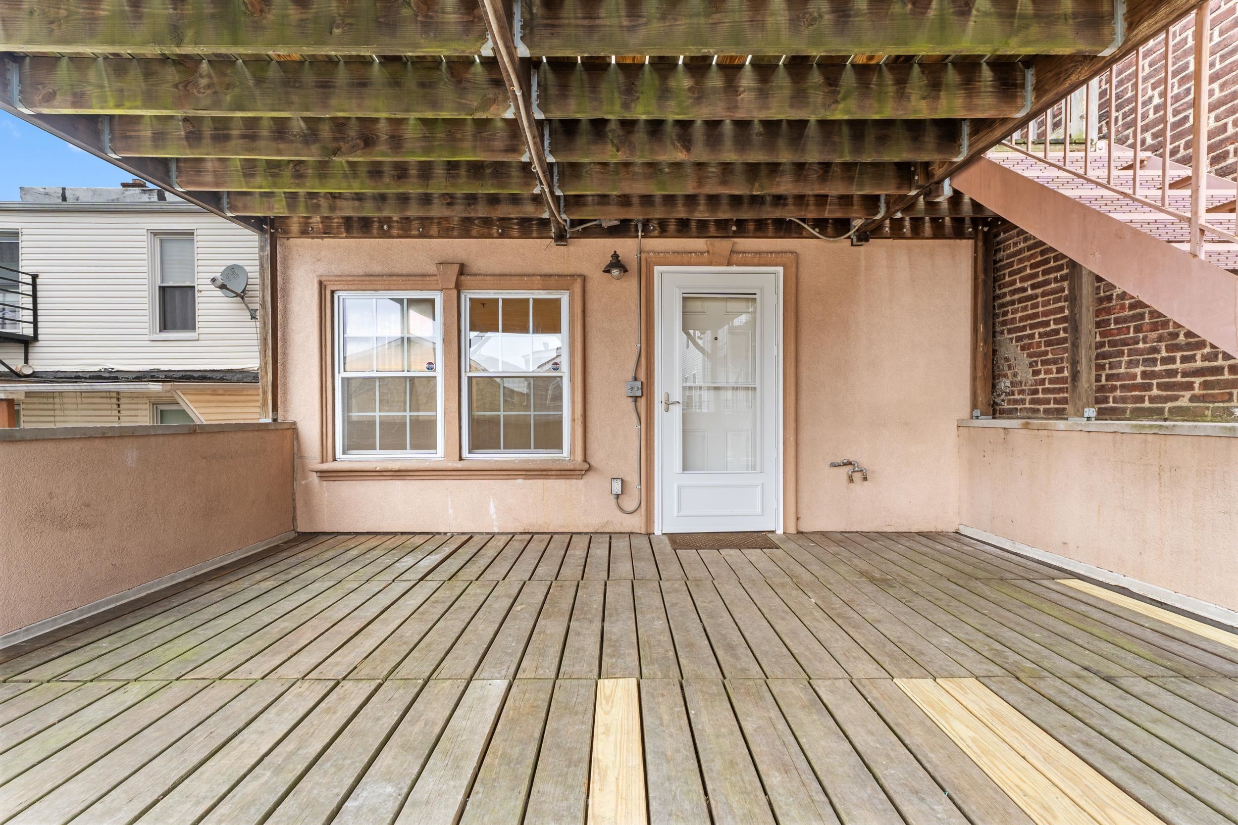 Welcome to 317 11th Street, Unit 2, a beautifully updated three-bedroom condo perfectly positioned for the Manhattan commuter seeking both convenience and comfort. Just minutes from Hoboken and a quick commute into NYC, this residence offers seamless access to the city while enjoying the charm of Union City living. The home features newly refinished hardwood floors, recessed lighting throughout, and an airy open layout with French doors that lead to a private balcony, allowing for abundant natural light and fresh air. The kitchen flows effortlessly into the living space, ideal for both everyday living and entertaining. A standout feature is the expansive private rear deck, exclusive to this unit, offering the perfect setting for morning coffee, intimate gatherings, or summer cookouts. The spacious primary suite includes two closets and a well-appointed en-suite bath, while additional highlights include in-unit washer and dryer and a dedicated parking space. This is a rare opportunity to own a move-in ready home that combines modern updates, private outdoor space, and unbeatable proximity to Manhattan.