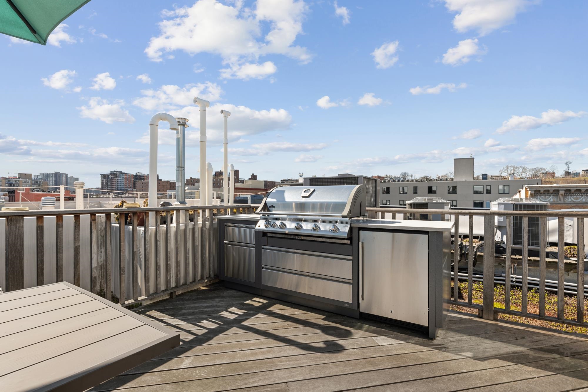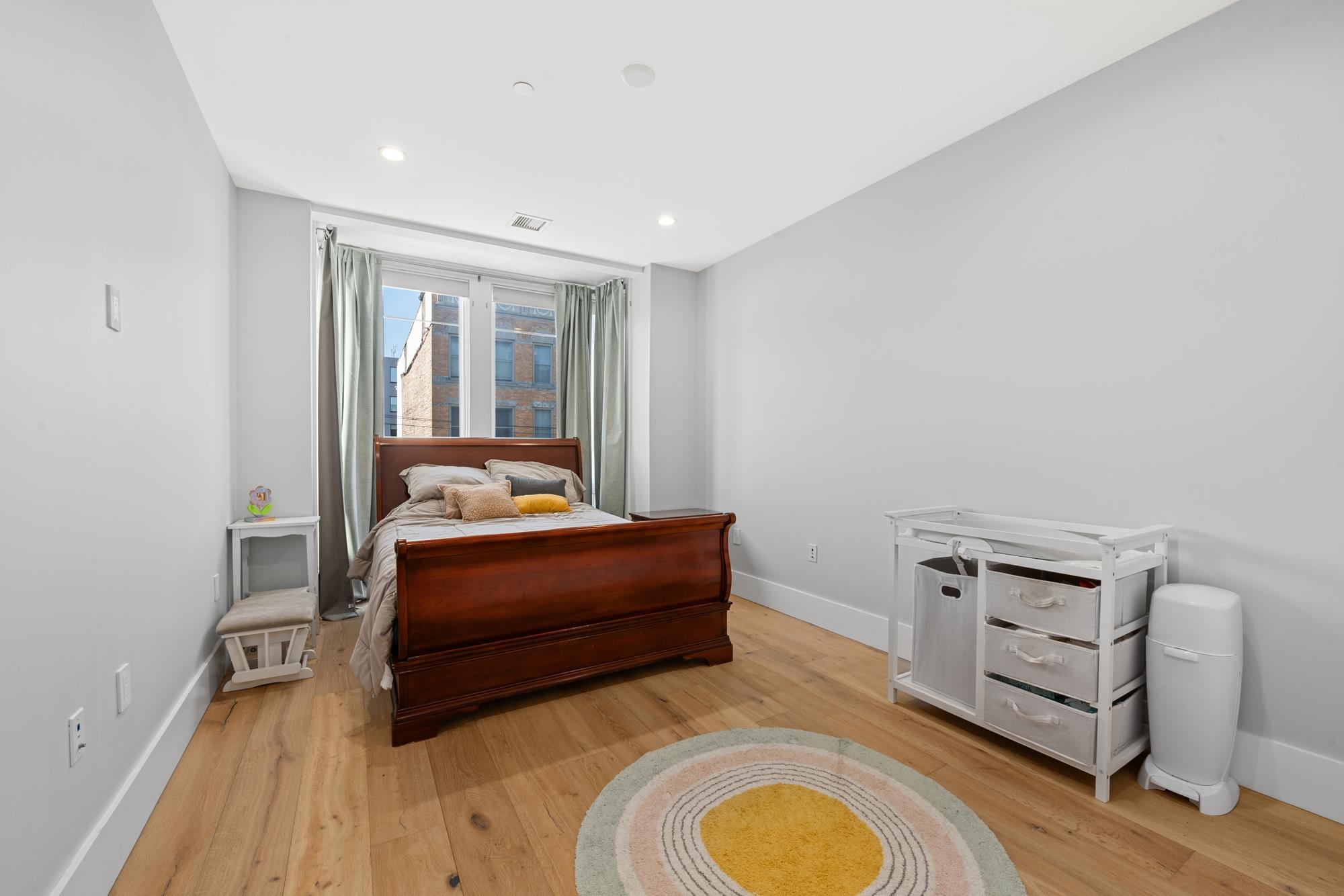 Experience this expansive 3018 SF duplex home, inside a boutique building designed by MVMK Architecture. Discover four generously sized bedrooms, three luxurious baths, a large private roof deck, and a bonus open room which could easily become a fifth bedroom. Enter the building through the stylish lobby to access the vestibule room for the private elevator to access each of the home's living levels above. Step out of the elevator cab and instantly be greeted by the bright, open-concept floor plan featuring a floor-to-ceiling wall of windows which allows natural light to effortlessly illuminate every corner throughout the home. The top-of-the-line kitchen features appliances by Wolf & SubZero and centers around an expansive floating island with modern pendant lights; perfect for hosting guests at your next soiree. There is a tremendous amount of cabinetry to satisfy every inspiring chef, a bonus dry bar, and beverage refrigerator. The impressive dining and living room area flawlessly flows around the kitchen. On the opposite side of the main level discover another versatile gathering room with a custom built-in wall unit, an extra bedroom and one full bath for your guests. Head up one flight on the interior stairs to the roof level to access the private outdoor space, boasting a 500SF deck including a BBQ station with direct gas line, refrigerator & drawers, and a storage closet. Entertaining guests while gazing upon the beautiful NYC skyline, especially at night, is delightful. After a long day retire to the sleeping level down the interior stairs. Enjoy the haven-esque atmosphere of the expansive primary bedroom, with two masterfully designed custom walk-in closets. Retreat into the spa-like bath, warm to the touch with radiant floor heating. The impressive shower room is enclosed with a seamless wall of glass and complimented with a privacy window. An elegant free-standing soaking tub and a dual vanity are all enhanced by designer tiles from Porcelanosa. On the opposite end of this level are two more large bedrooms each comprised with closets, one full bath, and a proper laundry room finished with custom cabinetry and wash sink for those delicates. Additional features include wide white oak plank hardwood floors, solid core doors, custom hardware, LED lighting, speakers with a central pre-wired center, two zoned heating & cooling systems. This modern home is convenient to all modes of transportation, parks, and everything one loves about the Mile Square City. Nearby, discover the Monroe Arts Center, filled with activities for all persons including arts, schools, theater, galleries, restaurants & shops. A perfect blend of the suburban home with an urban lifestyle. Rental parking available nearby has been secured for the remaining calendar year. Included is one large deeded storage room on the ground floor.