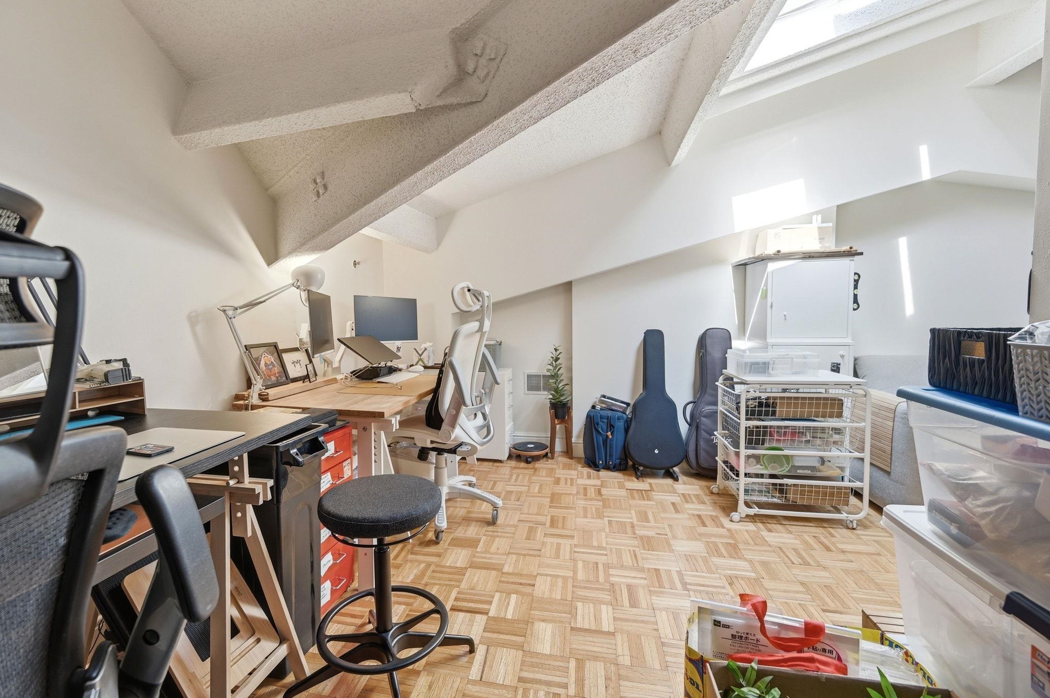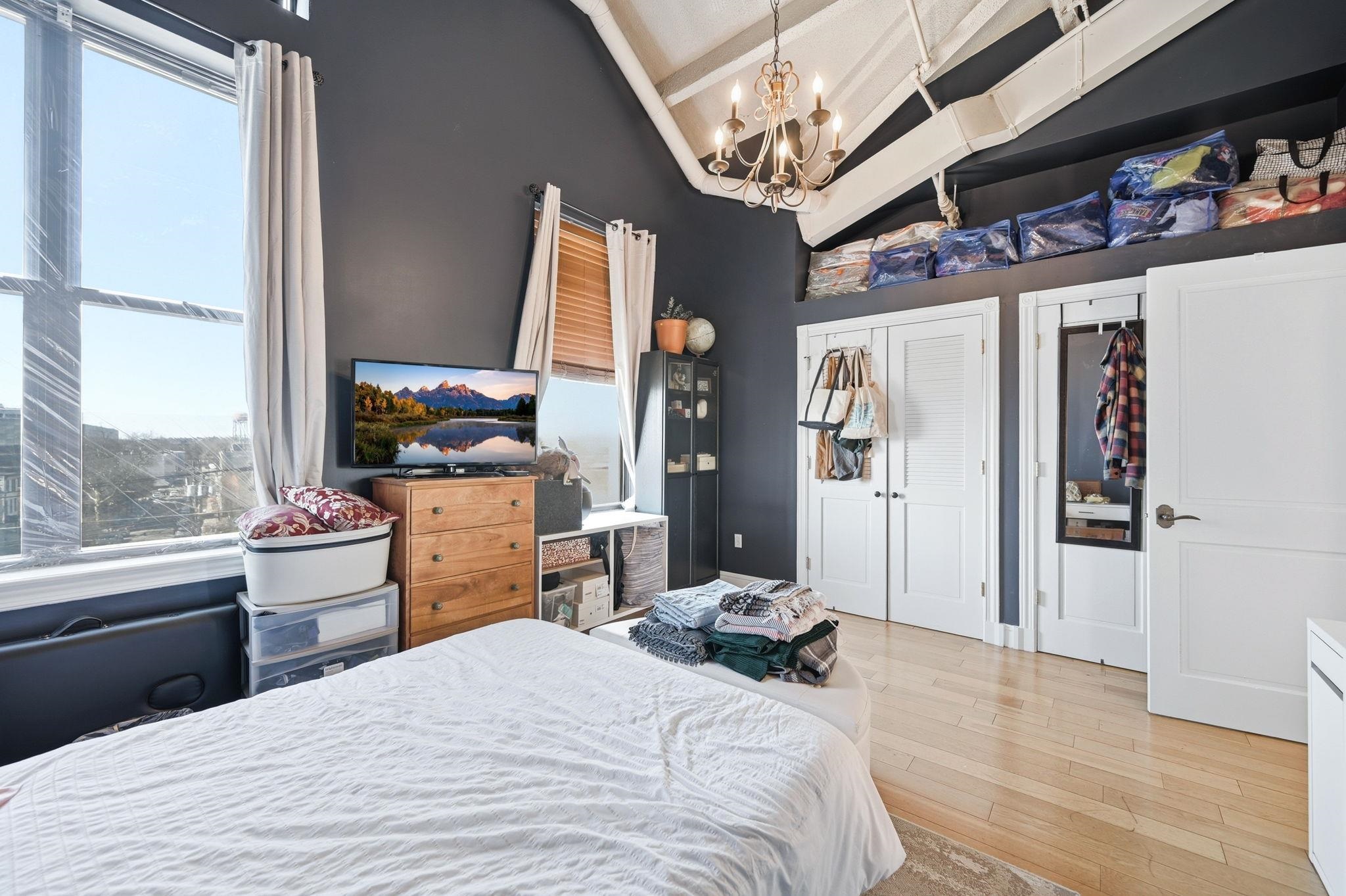 Top floor 2-level loft condo at the Foundry at Liberty State Park. Awesome floor-through unit with Southern and Northern exposure and 9 ft. tall wall of windows. The main level has living room, kitchen and an oversized bedroom with two huge closets and extra storage space. The upper level hasn open floor plan with a skylight. The purchase price includes one deeded car parking space. The building amenities include 24-hour front desk with package room, full size gym, and an outdoor patio/BBQ area for residents, elevators.