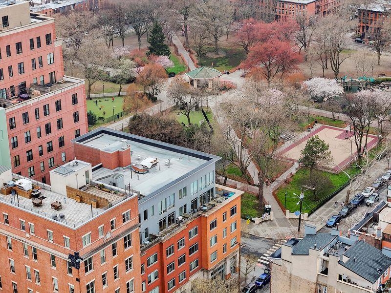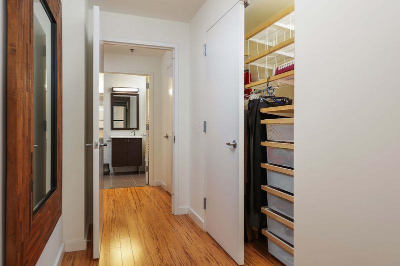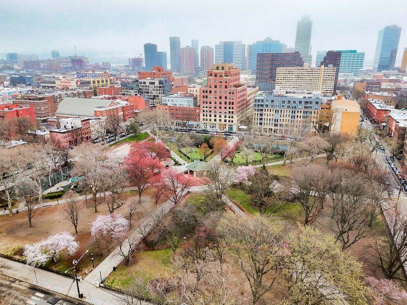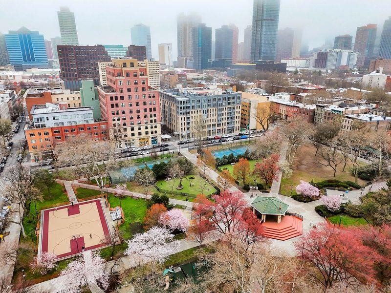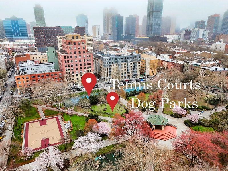 Welcome to Hamilton Square, one of Downtown Jersey City’s most iconic condominium residences, offering true Hamilton Park-front living within a vibrant, engaging community. Residents enjoy a 6,000 sq ft rooftop terrace with NYC views, grilling stations, seating and lounging areas, along with a private landscaped courtyard that creates a serene retreat in the heart of the city. Step outside to historic Hamilton Park's tennis courts, two dog runs, playgrounds, and tree-lined strolling sidewalks that define this beloved and vibrant neighborhood. A 24/7 concierge/attended lobby provides full-service convenience as well as a superintendent on the premises for maintenance and repairs. Easy access to the PATH train (Grove St. and Newport station) makes commuting effortless while keeping you connected to the best of Jersey City and Manhattan. Upon entry to the condo, you’re welcomed into a freshly painted space where warm-toned bamboo flooring flows throughout, offering a sleek, modern aesthetic with exceptional durability. High ceilings and oversized windows enhance the airy, loft-style ambiance, filling the home with natural light. A large walk-in foyer closet, complete with shelving and organizers, provides impressive storage right at the entry. Enjoy a well-equipped kitchen that features GE stainless steel appliances, stone countertops, beautiful cabinetry and a layout that opens seamlessly to the living room—ideal for both everyday living and entertaining. The spa-inspired bathroom is appointed with radiant heated floors and beautifully tile work, creating a luxurious retreat. The condo also features its own electric meter, giving you the benefit of controlling and paying only for your individual electricity usage. An extraordinary recent upgrade to this specific unit is the kitchen and bathroom shut-off valves are now local to this unit only and will not be affected by any repairs in the event of a building/water shutdown. With about eight years remaining on the tax abatement, this condo offers the ease of predictable, low taxes for years to come — allowing you to focus on enjoying Hamilton Park living. At street level, the building is wrapped in everyday conveniences — a 24-hour gym, pharmacy, independent bookstore, wine shop, coffee shop, and a selection of neighborhood restaurants — creating a vibrant, walkable lifestyle that’s truly unmatched.