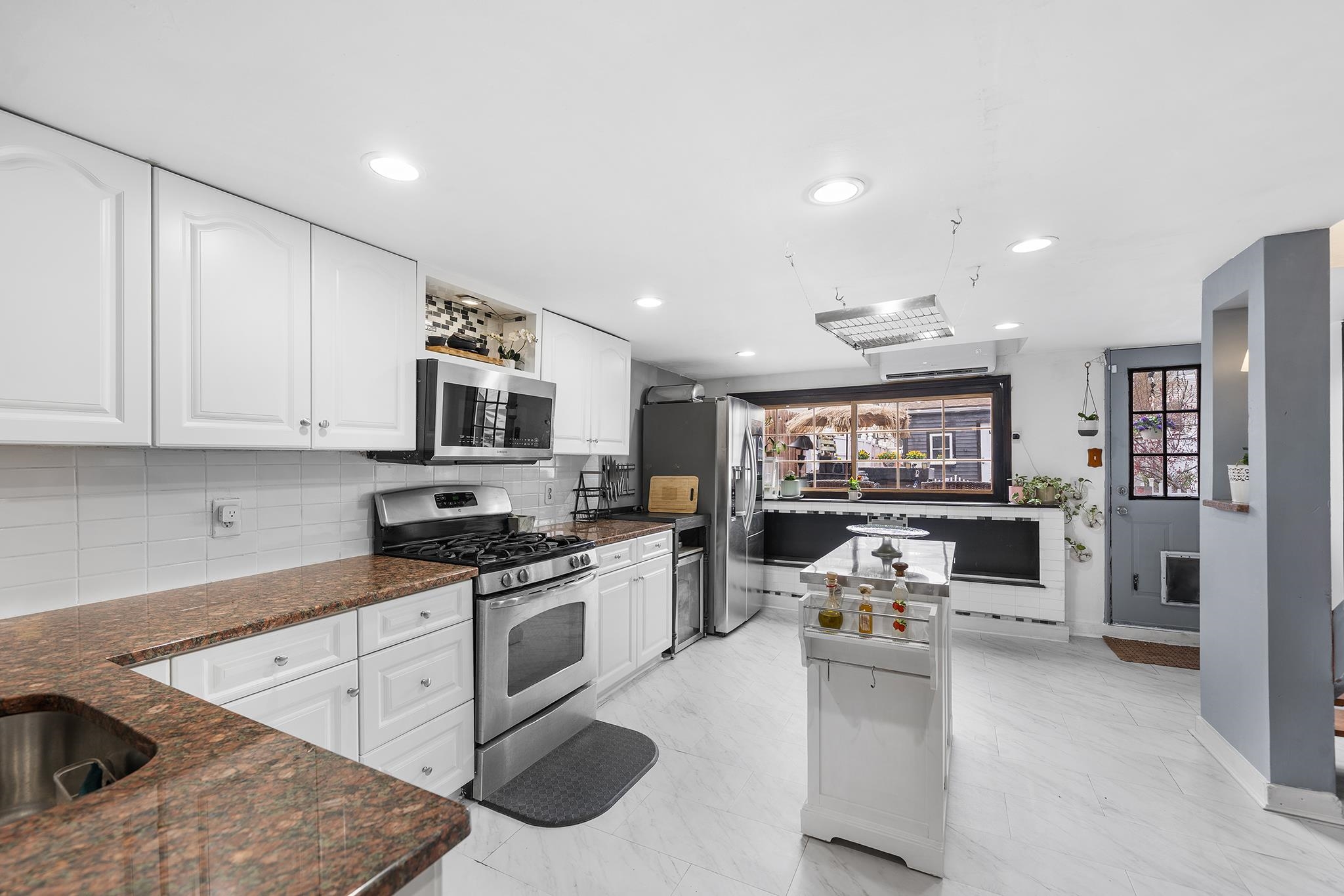 Welcome to a rare opportunity in downtown Union City where indoor comfort meets an outdoor space rarely found at this price point. This lovingly-maintained single family home located minutes from Washington Park sits on an oversized 2,500 sq ft lot and features a private, resort-style backyard that truly sets it apart. Whether you’re entertaining, relaxing, or just enjoying your own space, the yard—with a separate lofted studio shed—offers additional storage, workspace or recreation. Inside, the home features cathedral ceilings in both the living room and primary bedroom, creating an open, airy feel. The large, upgraded kitchen and bathroom add both style and functionality. Additional updates include a brand new GREE split HVAC system (2025), refinished kitchen cabinetry, new kitchen windows, and freshly renovated closets. Energy efficiency is a major bonus, with a fully paid-off solar panel system, significantly reducing electric costs. The roof and solar system were maintained in December 2025 and come with a 2-year service warranty. This unique home blends neighborhood warmth with everyday accessibility, making this the ideal choice for buyers seeking privacy, convenience, and outdoor space at an unbeatable value.