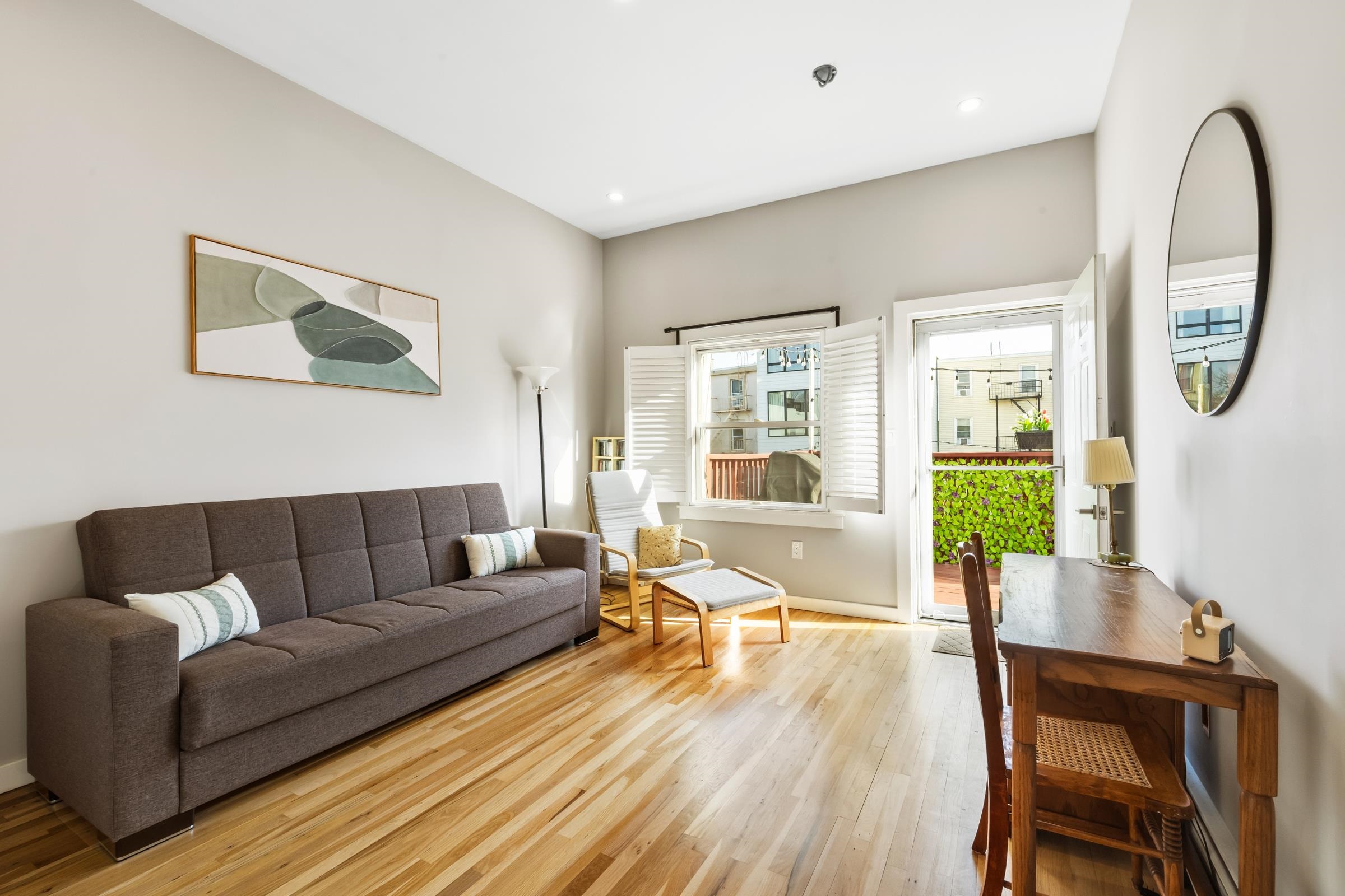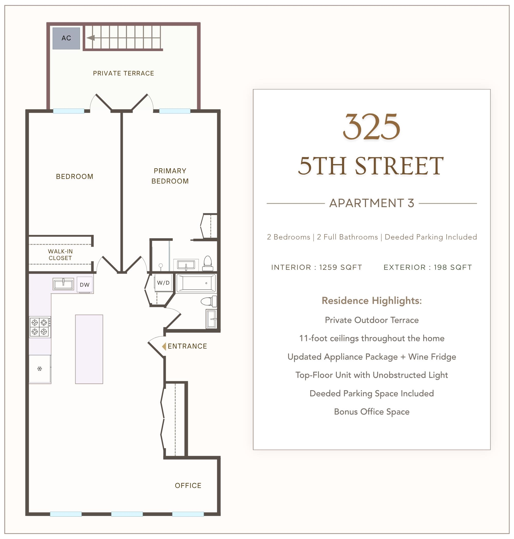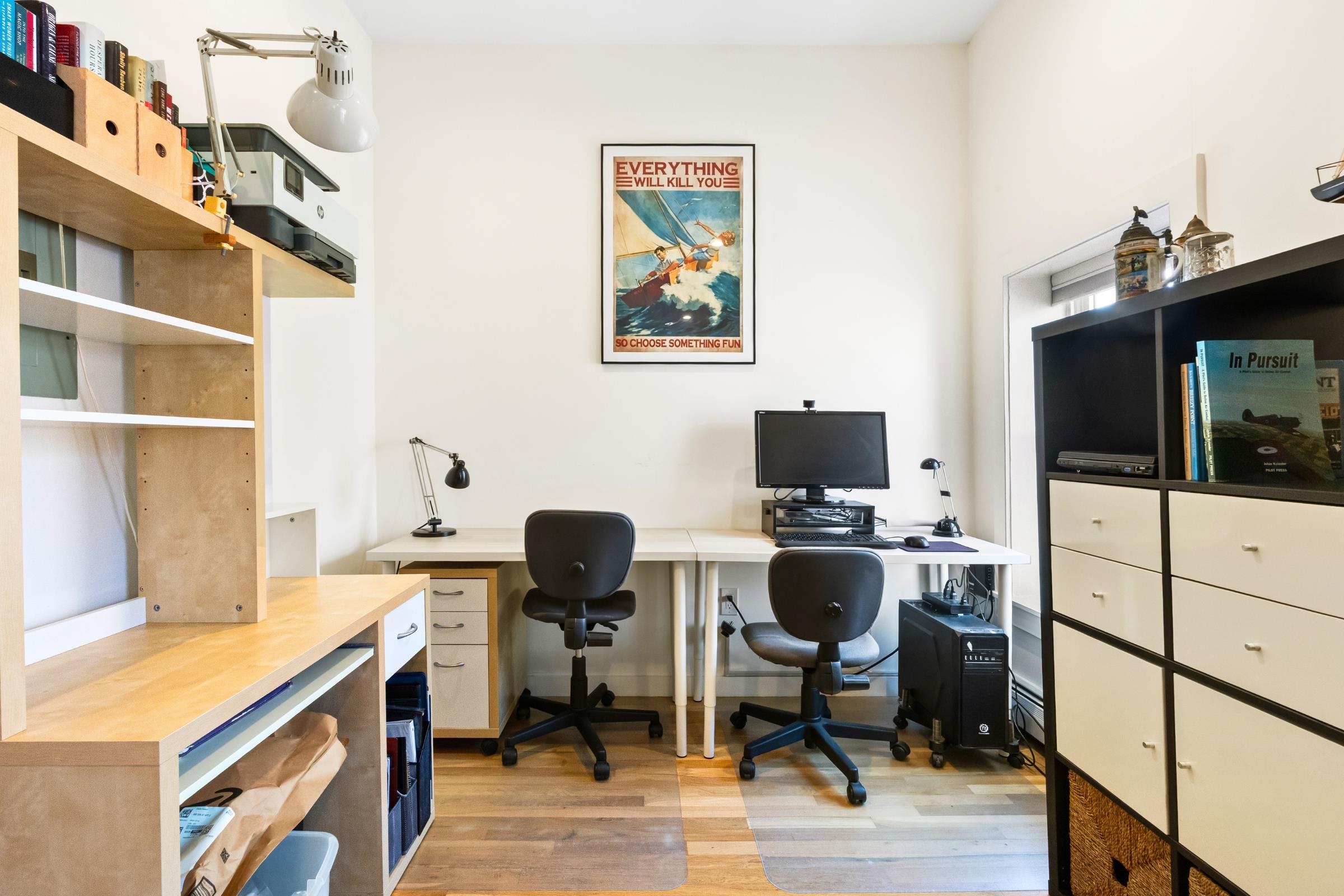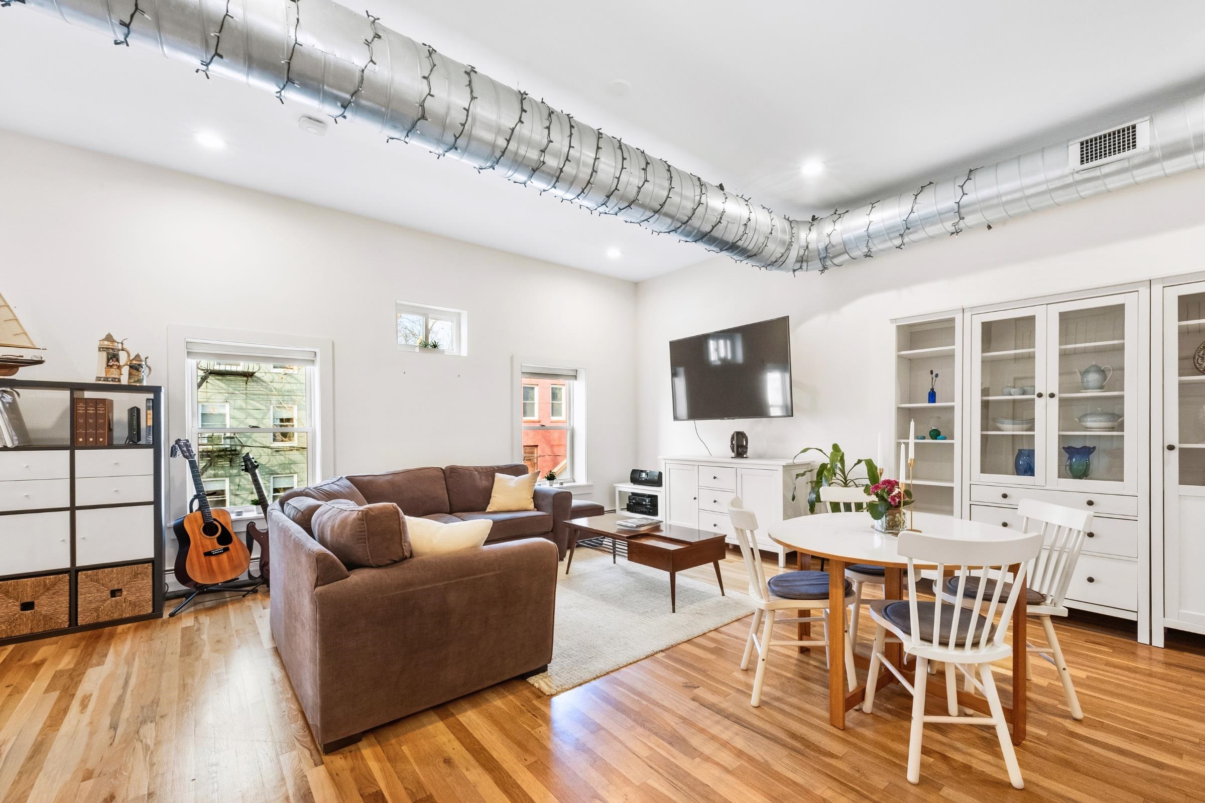 Nestled in a quaint and peaceful neighborhood, this exemplary loft-style residence perfectly reflects the aesthetic of modern living. This 2 Bedroom + Office, 2 Full Bathroom Condominium showcases nearly 1,300 Sqft of living space, impeccable ceiling heights, a private outdoor terrace, and a very rare parking space included. The Chef Style kitchen with a massive island countertop and abundant storage is the pinnacle of modern Luxury, completed with chic custom cabinetry, Alpine Mist Caesarstone counters, a premium appliance package, and a built-in wine fridge. Each angle of this sprawling home is designed with natural light and abundant space in mind, creating a versatile layout for a seamless connection from the spacious bedrooms, to the scenic outdoor terrace. The primary bedroom suite is designed to fit a king-sized bed along with a 5-piece bedroom set, adjoined by a captivating ensuite bathroom tiled in a custom herringbone pattern. Additional features include hardwood floors throughout the home, Central AC, with Nest climate control, recessed lights, and a LG washer/dryer. Complementing this home is one of the best neighborhoods in JC Downtown, perfectly located near Hamilton Park, PATH stations, and all of the award-winning restaurants, shops, and stores that Downtown Jersey City has to offer.