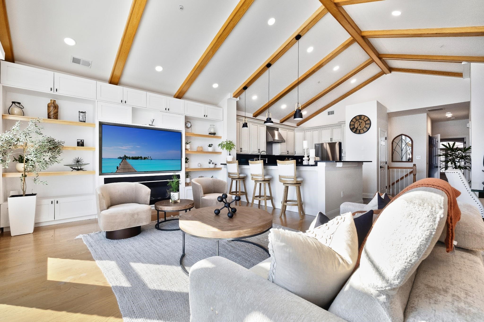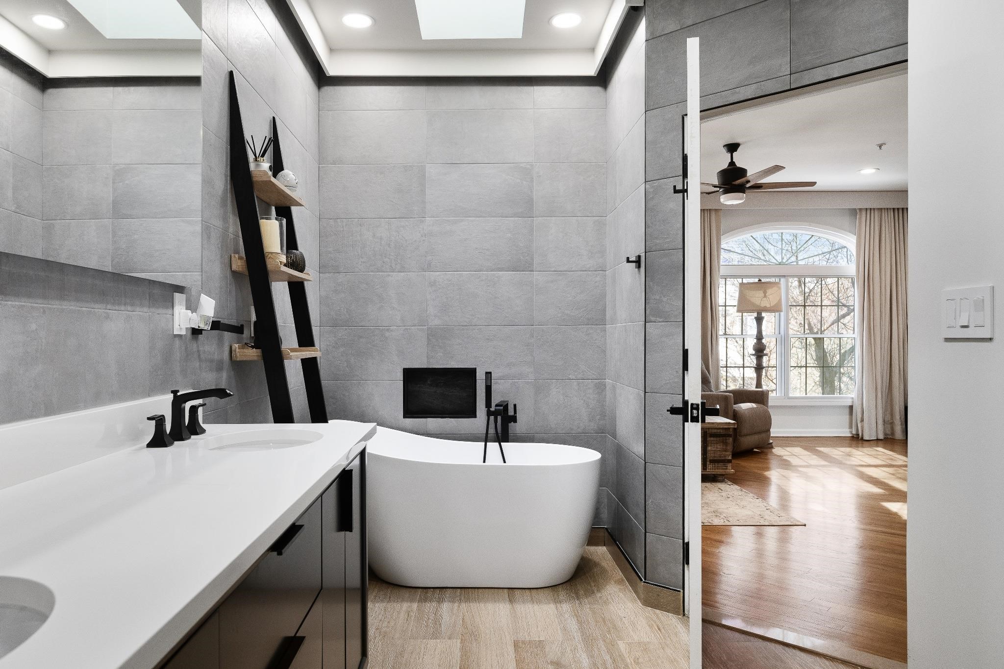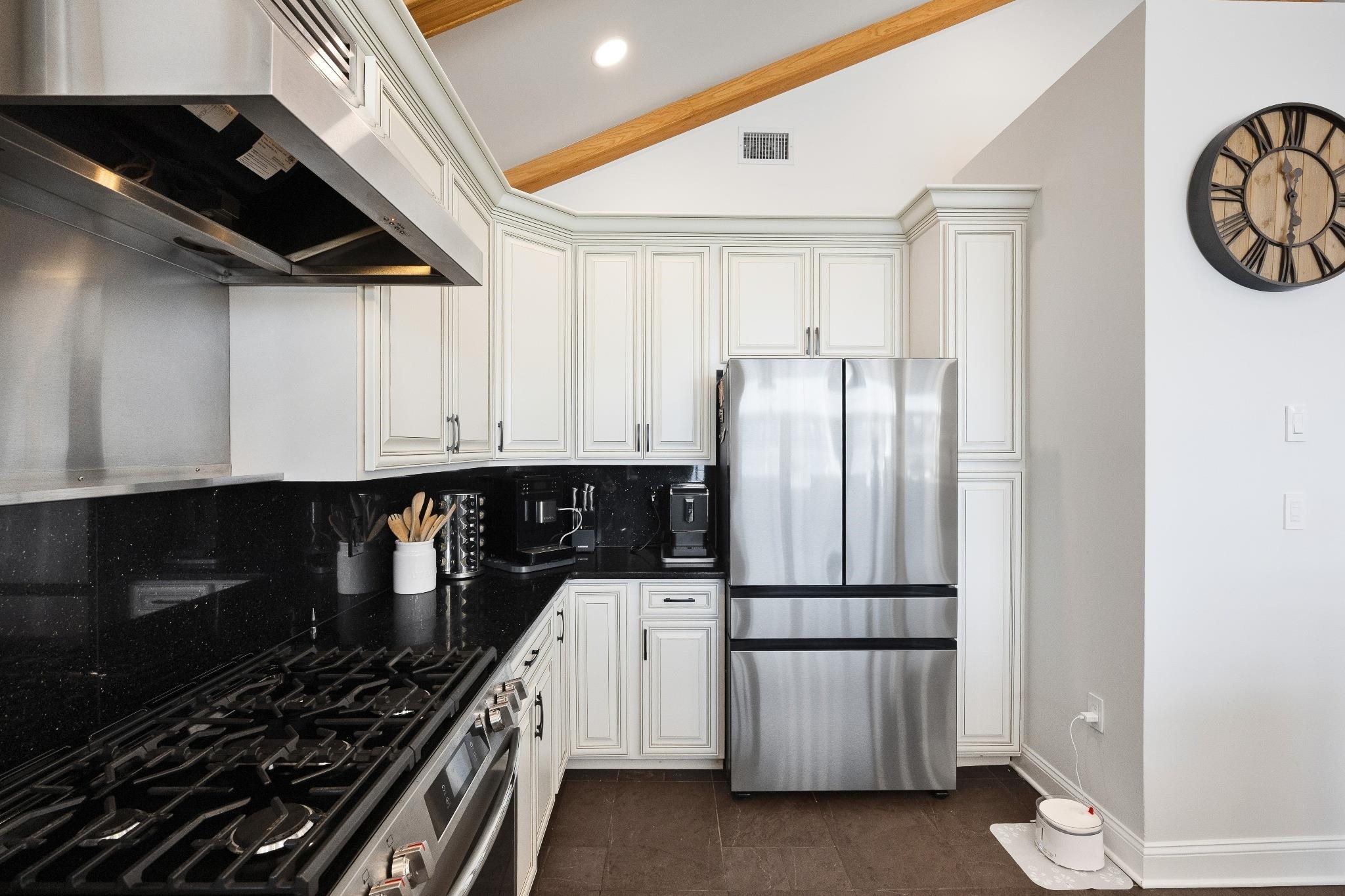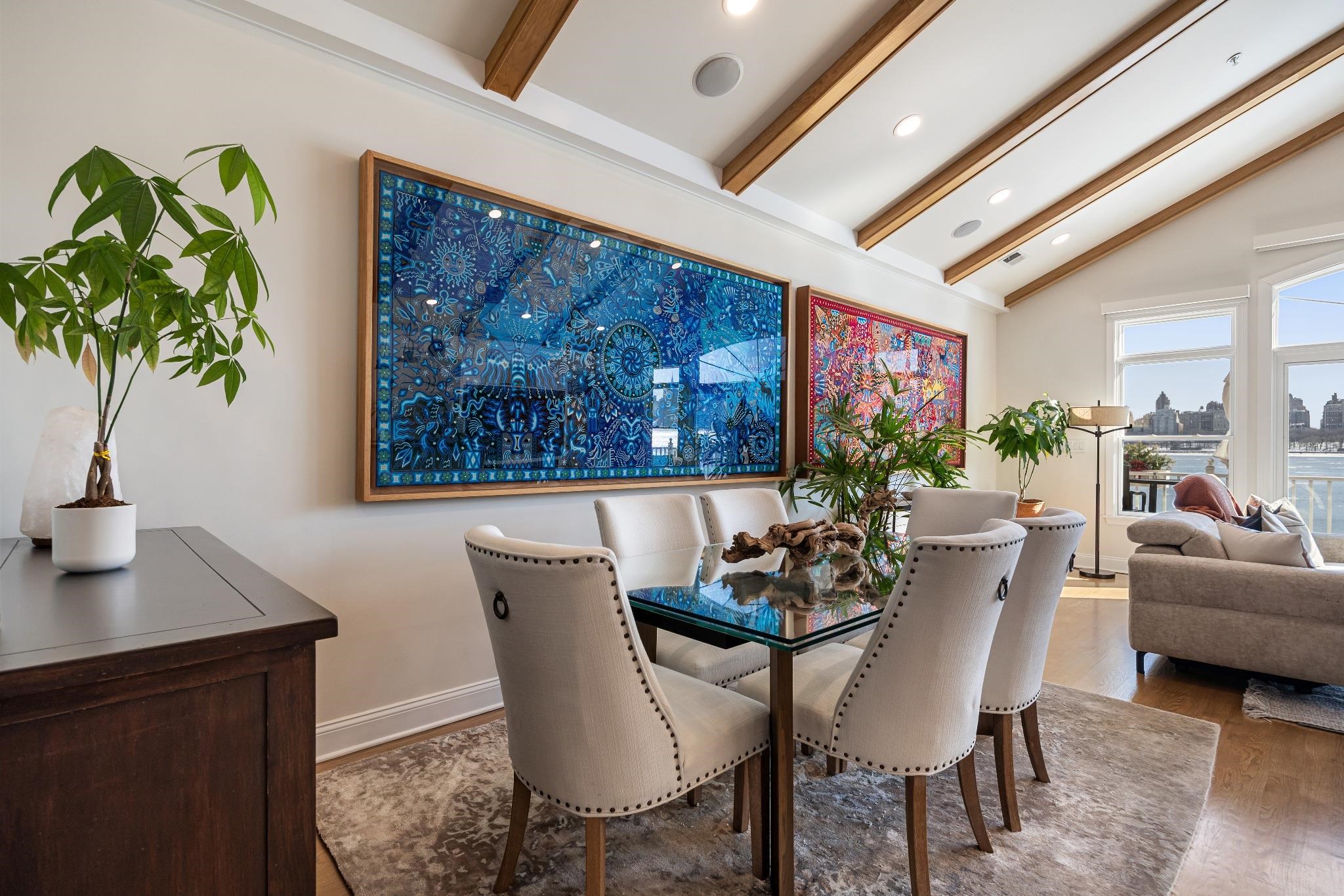 Located in the sought-after Bulls Ferry community, 18 Lydia Drive is a fully renovated waterfront residence offering panoramic NYC skyline and Hudson River views from the living, dining, and kitchen areas. This barn-style, loft-inspired home features soaring ceilings, exposed beams, and walls of oversized windows that fill the main living spaces with natural light throughout the day. The expansive private balcony, located off the living room, is ideal for entertaining or enjoying stunning city and river views. A private in-unit elevator provides seamless access between levels. The renovated kitchen and dining area showcase white cabinetry, quartz countertops and backsplash, and black stainless steel appliances—perfectly positioned to take full advantage of the sweeping views. Hardwood floors run throughout, adding warmth and continuity. The primary suite offers a peaceful retreat with a beautifully renovated spa-like bathroom featuring a soaking tub beneath a skylight. Additional highlights include, newer HVAC, private one-car garage plus driveway parking, and access to Bulls Ferry amenities including two pools with jacuzzis, waterfront promenade, shuttle to ferry, and easy NYC bus access. A rare opportunity for move-in-ready waterfront living just minutes from Manhattan.