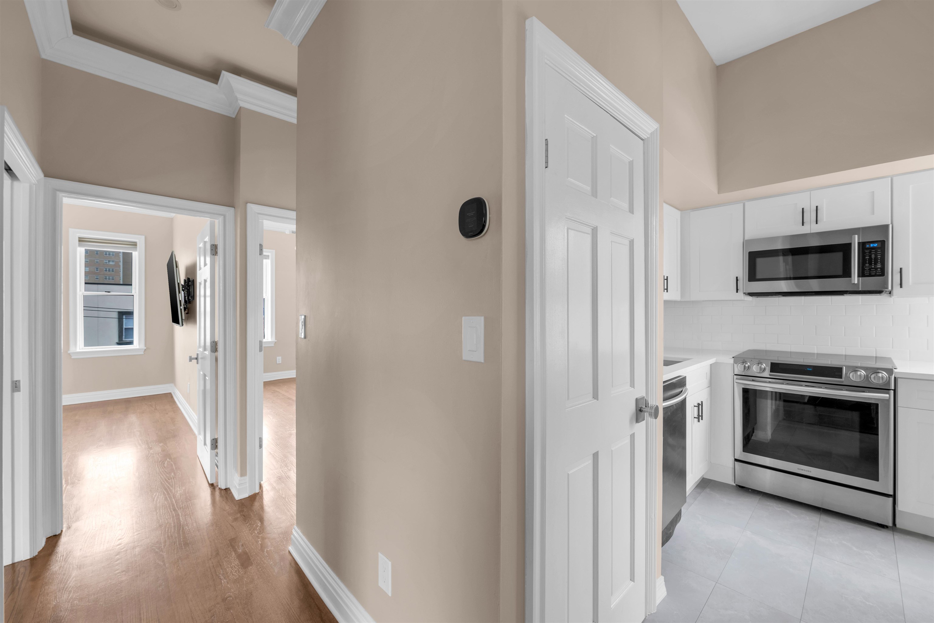 Welcome home! This beautifully renovated condominium is just what you've been looking for. With a cozy two-bedroom setup, it even boasts an extra room perfect for a home office or guest room. The brand new kitchen with quartz countertops and new ss appliances is sure to inspire culinary delights, and you'll love the convenience of having laundry right in your unit. The renovated bathroom has elegant Porcelanosa tiles and fixtures. Relax on your private rooftop or take advantage of your one-car garage with an EV charger. Plus, basement storage makes organization a breeze. And for added security and peace of mind, there's video intercom and door entry with remote access via smartphone. Situated by Boulevard East, you're close to stores, schools, and everything you need, with fantastic access to transportation to Manhattan.