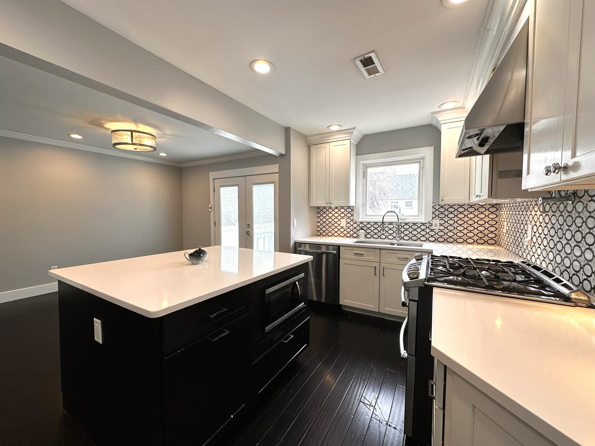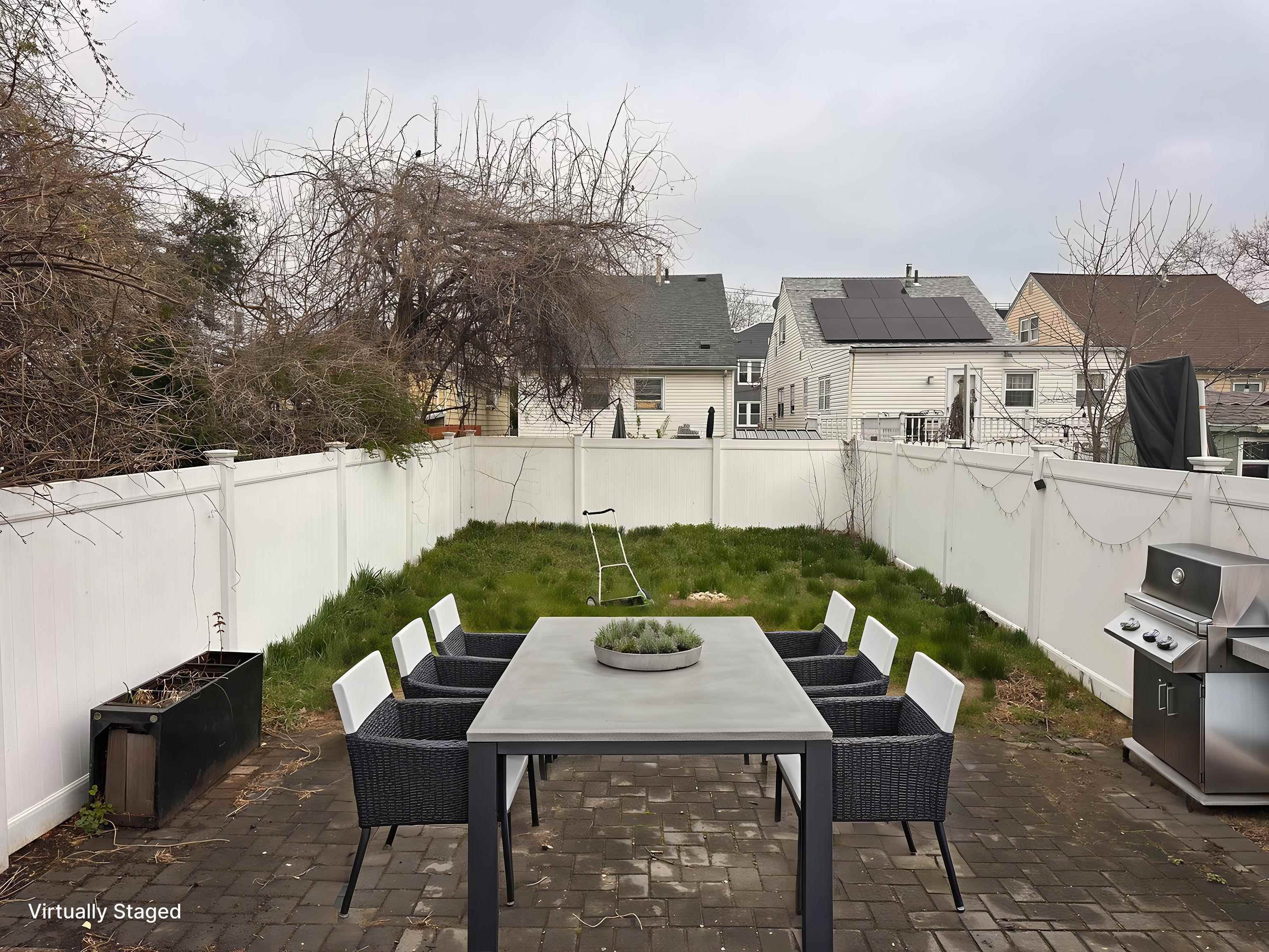 Don’t miss this opportunity to own a beautifully updated single-family home featuring a fenced private yard and 2 car driveway parking. This spacious 3-bedroom home—currently configured as a 2-bedroom with an oversized walk-in closet—has been thoughtfully renovated throughout. The first floor offers a comfortable living room and a separate dining area that flows seamlessly into the stylish kitchen. The kitchen showcases two-tone cabinetry, under-cabinet lighting, a modern stone backsplash, stainless steel appliances, a pot filler, and a wine cooler. Step outside to enjoy summer gatherings in the private backyard, perfect for entertaining. The second floor includes three bedrooms and a renovated bathroom with a walk-in glass-enclosed shower. Additional highlights include ample storage with a pantry and coat closet, a fully finished basement offering additional living space and a second full bathroom, hardwood floors, recessed lighting throughout, in-unit washer/dryer, and central air. Ideally located near parks, public transportation, shopping, dining, and schools, this home offers the perfect blend of comfort, style, and convenience.