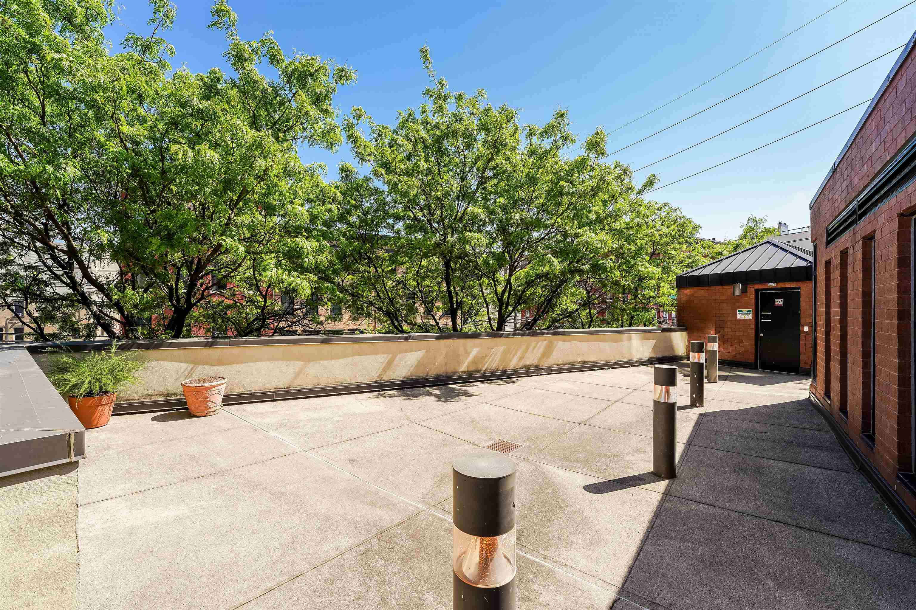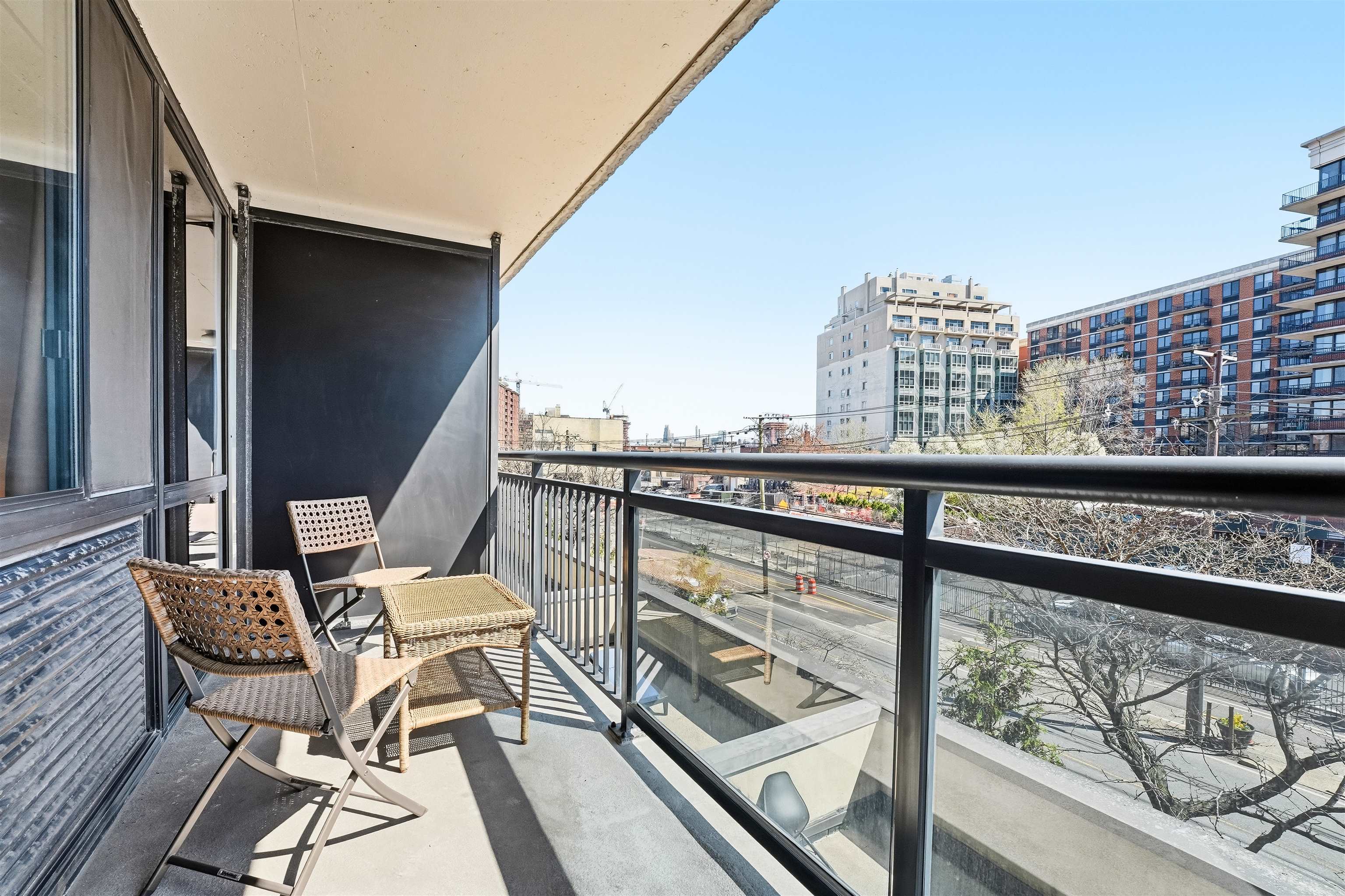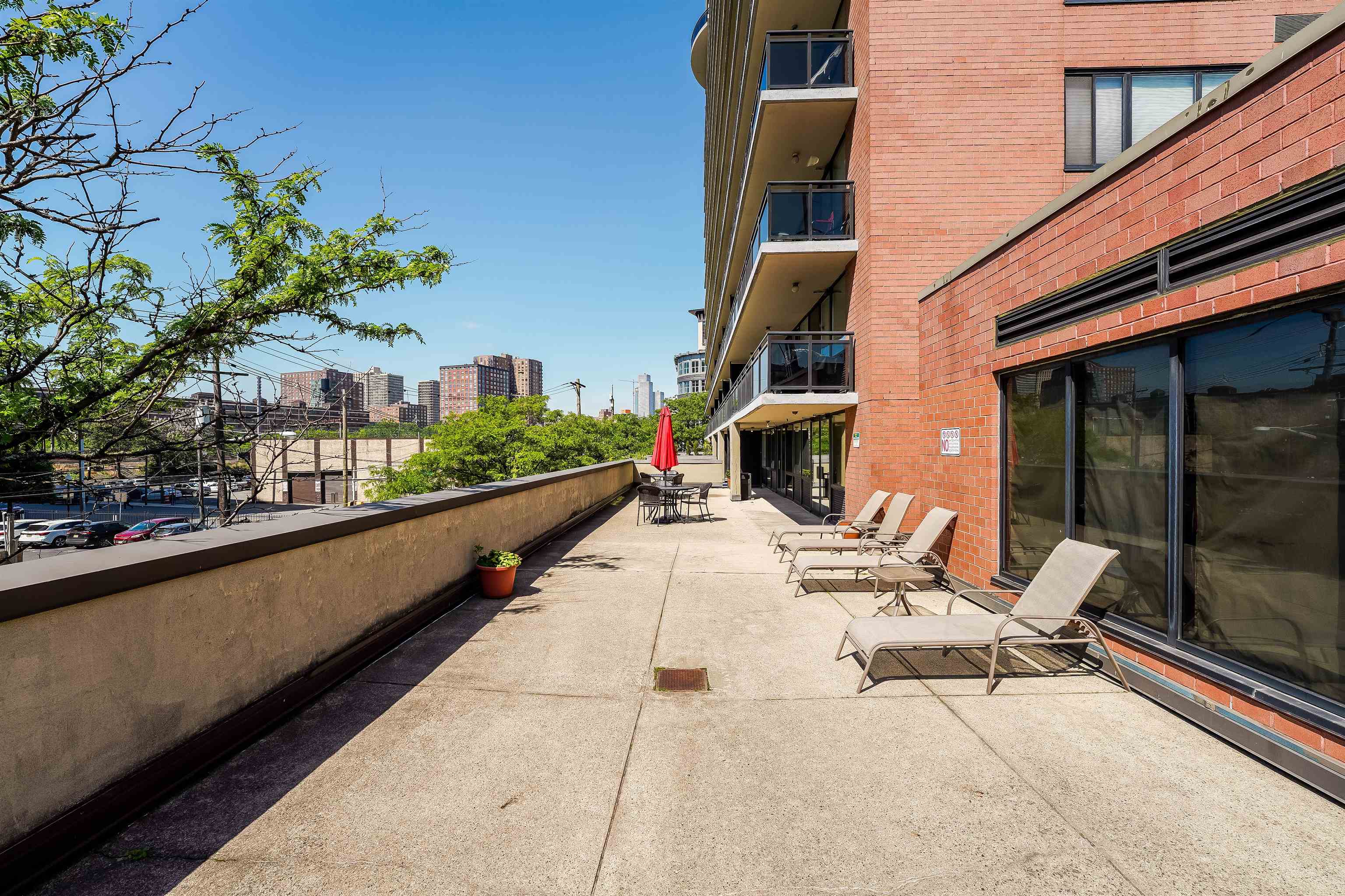 Rare, oversized studio with private terrace and garage parking in the Skyline building, a combination that almost never comes to market. This bright 557 sq ft home with southern exposure lives far beyond a typical studio, with hardwood floors throughout and large windows that flood the space with natural light. The expansive layout easily accommodates a separate sleeping area, a full living and dining area, and a work-from-home setup, all without feeling cramped. The updated kitchen features brand-new stainless steel appliances, generous cabinetry, and functional counter space, while the bathroom offers a full tub/shower. Step outside to your private terrace, perfect for morning coffee, outdoor dining, or unwinding at the end of the day, creating true indoor/outdoor living. Additional highlights include excellent closet space and room for a king-size setup. Located in the full-service Skyline building with a doorman, fitness center, concierge, laundry on every floor, and free PATH shuttle, plus the rare convenience of included valet garage parking. For buyers seeking outdoor space, parking, and full-service living in one home—this is the one.
