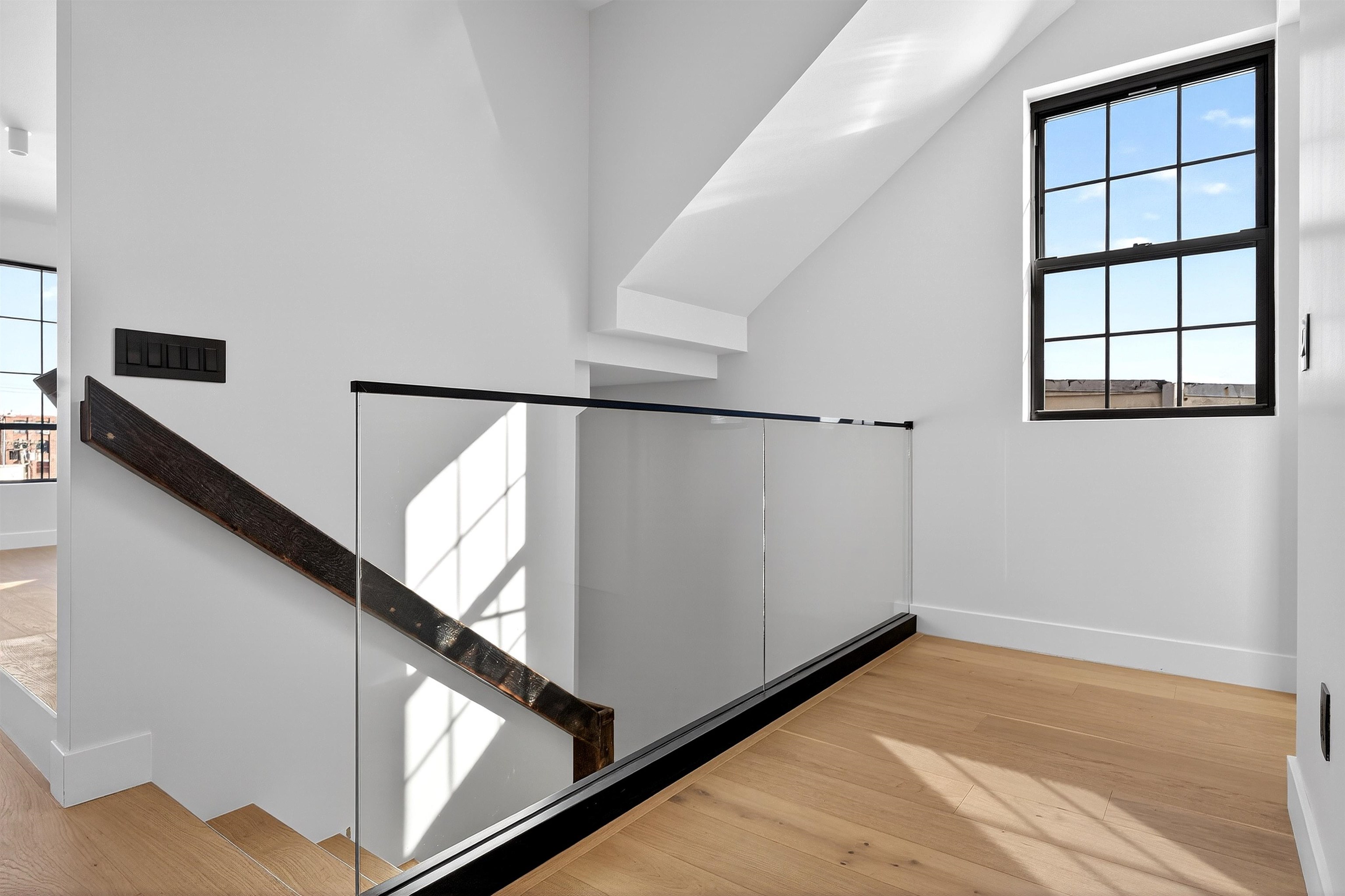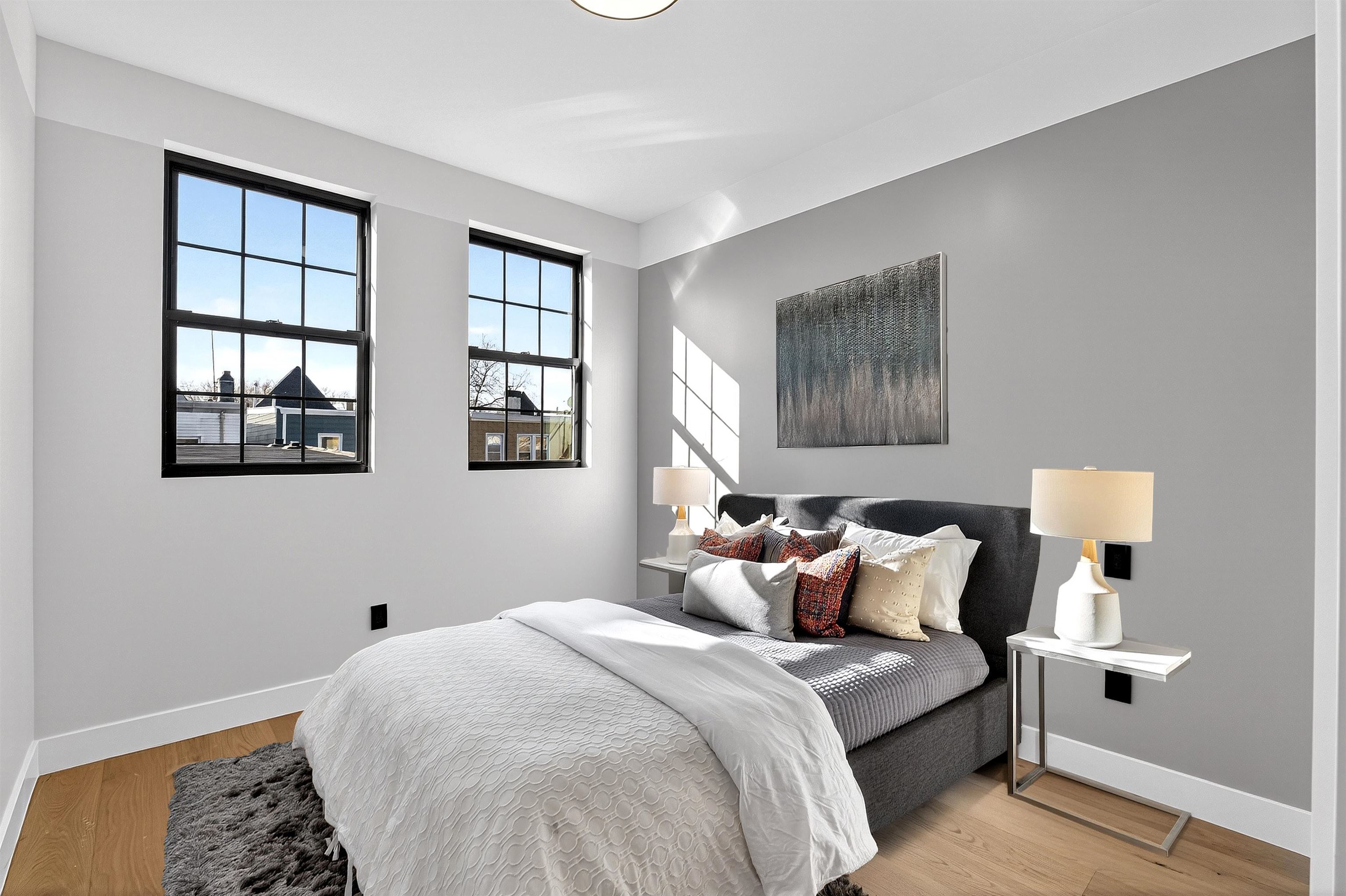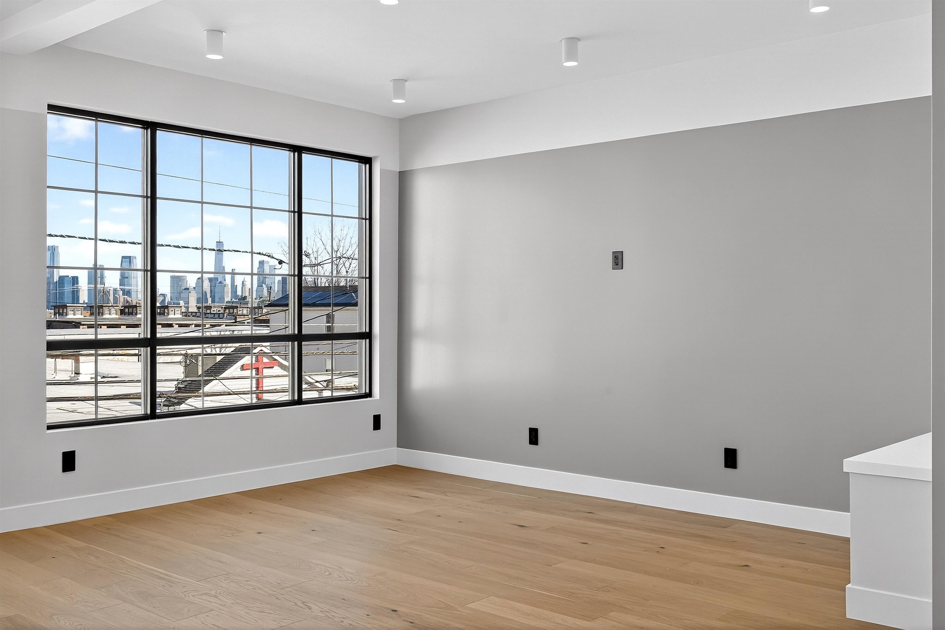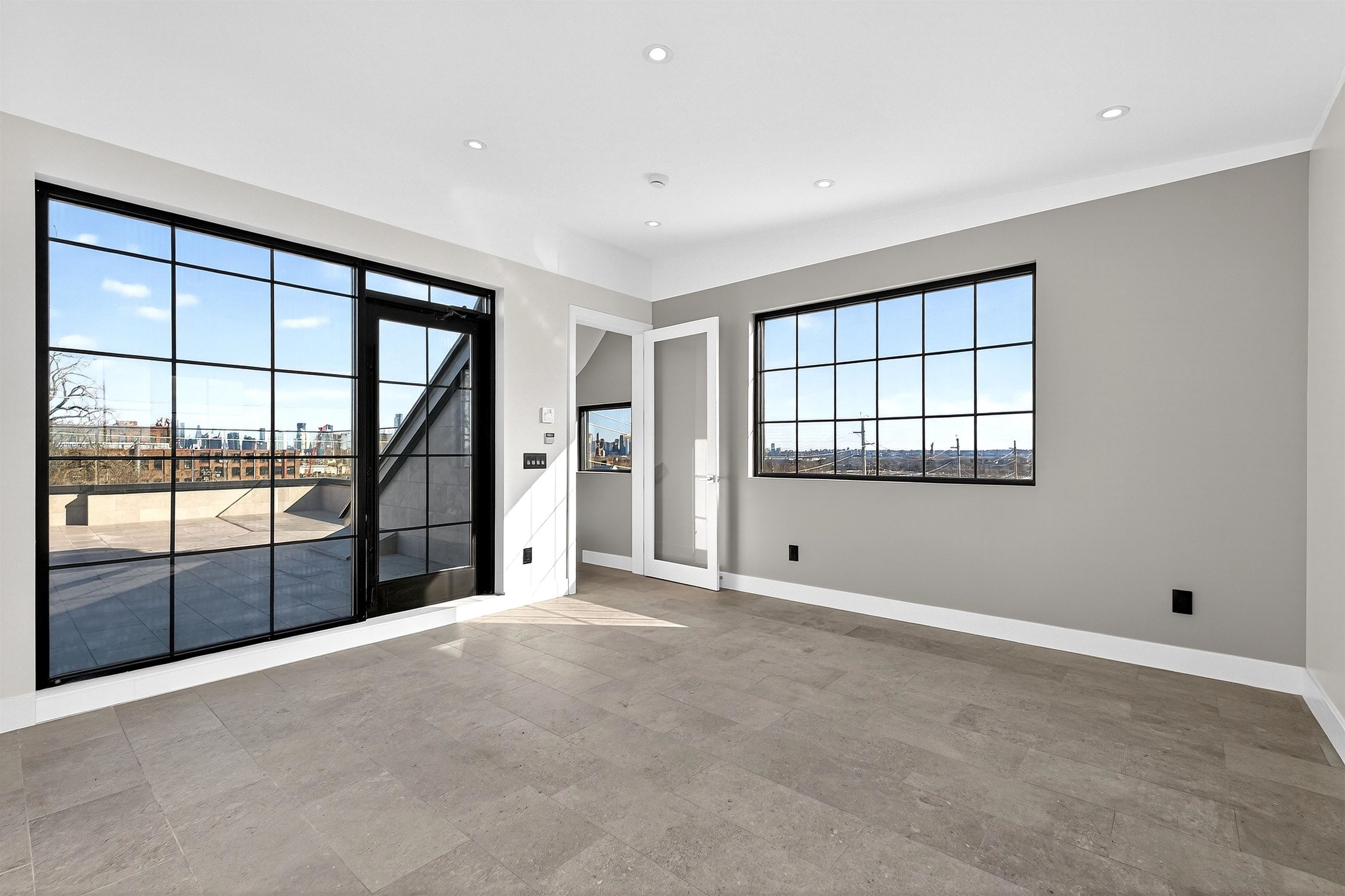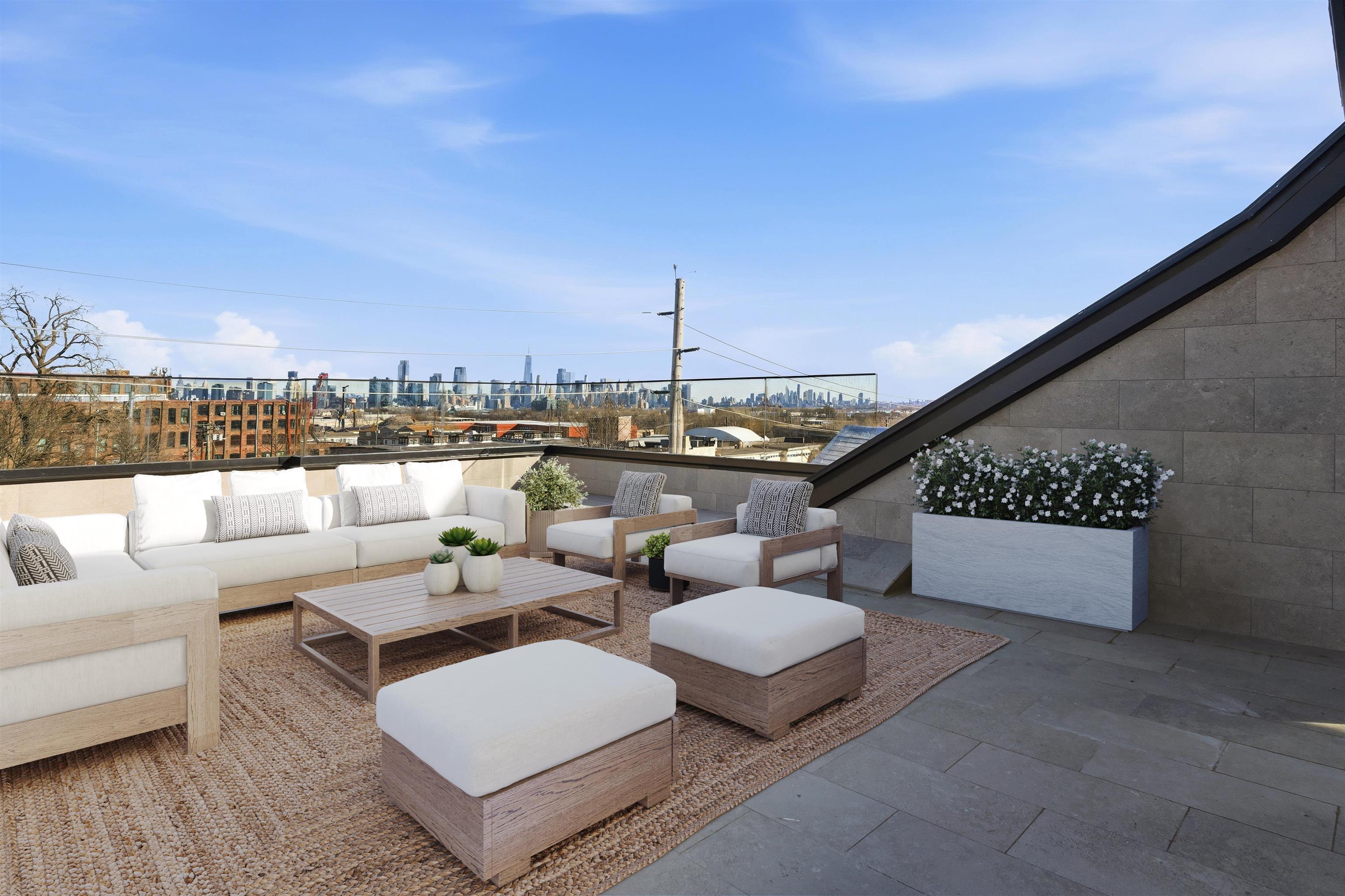 Step into a one-of-a-kind new construction luxury condo residence offering 3 floors of expansive living, 2,625 sq ft of refined interiors, and nearly 750 sq ft of private outdoor space across two spectacular terraces with sweeping 360° views of Manhattan, the Statue of Liberty, and beyond. This stunning 4-bedroom home also features a dramatic rooftop sky lounge—perfect as a 4th bedroom, home office, gym, or private retreat—along with 4 full baths, 2 half baths, designer finishes throughout, and private parking. Technical excellence is evident throughout, with ethernet wiring for camera and Wi-Fi systems, smart LED lighting, Legrand designer electrical switches, and unit-level control panels. Climate control features include Frederich high-performance multi-zone HVAC systems, radiant floor heating, including snow-melting terraces, Bluetooth bathroom fans, and smart water heaters with leak detection. Designer kitchens feature Frigidaire Gallery appliances, with a Frigidaire Professional refrigerator, and an 8-foot quartz island. Bathrooms are finished with lime washed walls, Kohler, Hansgrohe, and Porcelanosa fixtures, Porcelanosa porcelain and ceramic tiles, and smart LED mirrors with defogging functions. 7.5†white oak engineered floors and custom reclaimed wood accents tie the modern interiors to the building's historic origins. This home presents an unparalleled opportunity to own a piece of architectural excellence, combining cutting-edge technology, premium finishes, and reclaimed historic materials — all within a single, thoughtfully crafted property. Located in Bergen-Lafayette, this home offers the best of urban living with its vibrant community and easy access to a wide range of amenities, including dining, shopping, and entertainment options. Plus the massive Canal Crossing Charter School Campus will offer a convent and highly rated school option right in the neighborhood! Enjoy the charm and convenience of this neighborhood, while still being within reach of everything Jersey City has to offer.