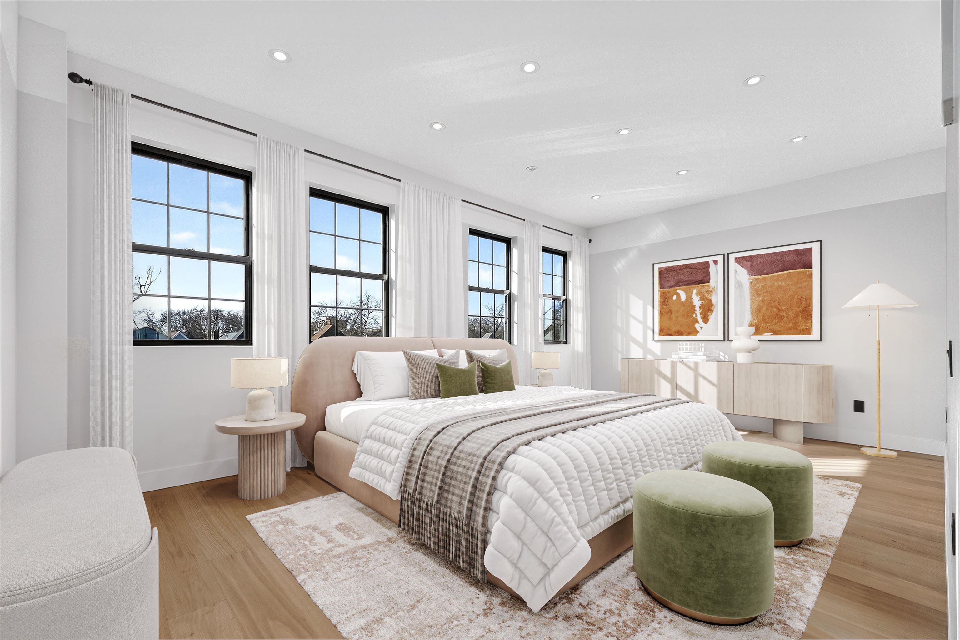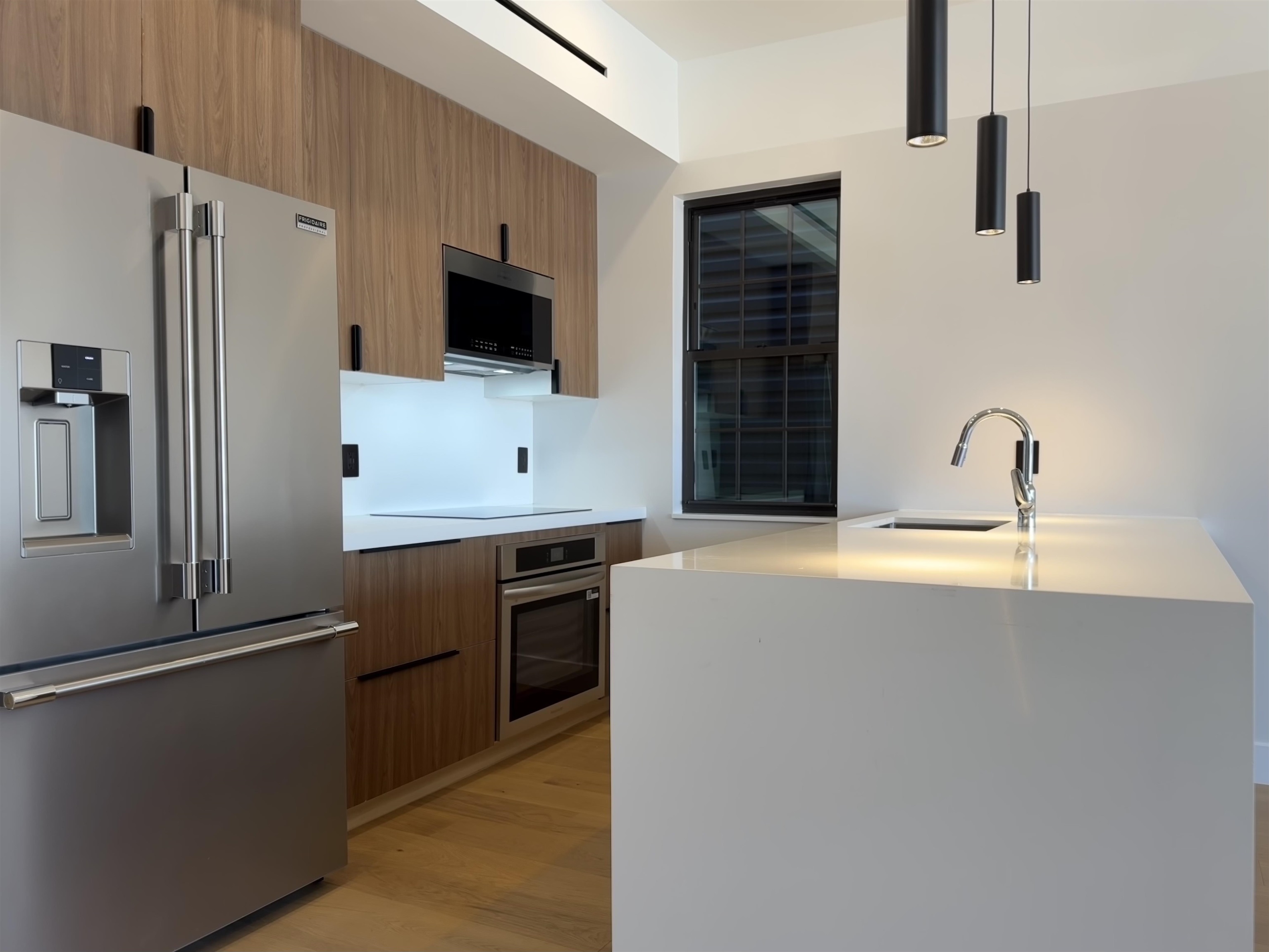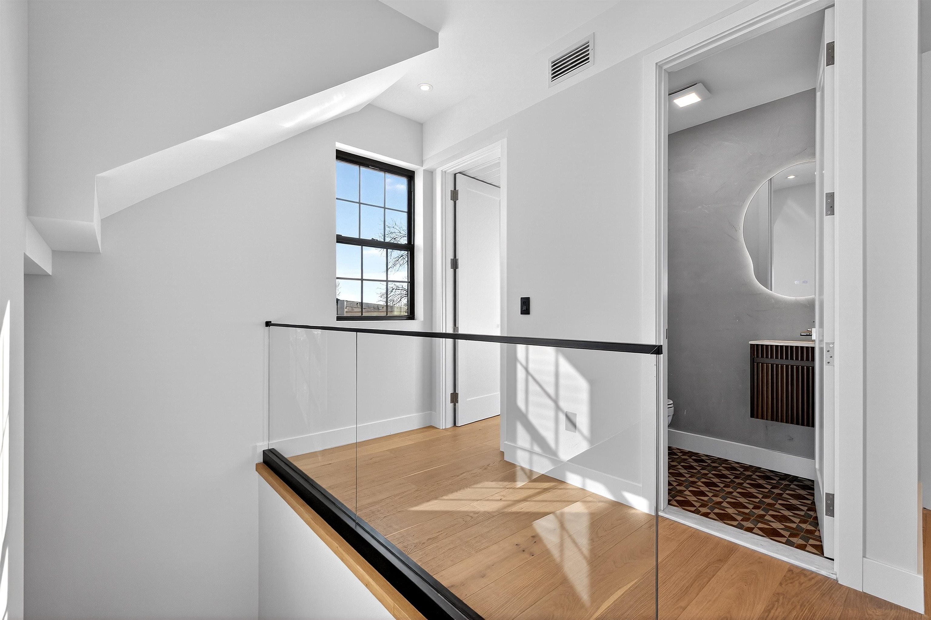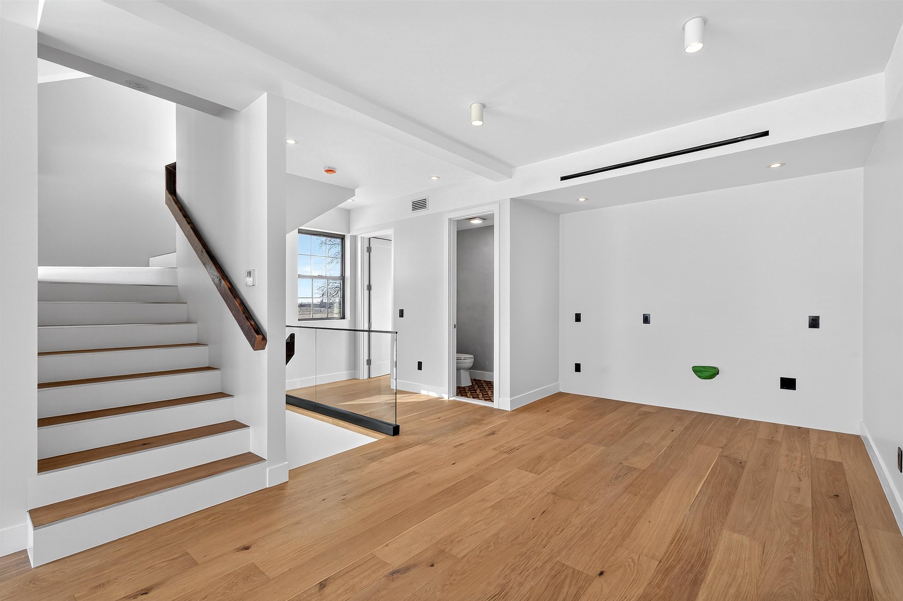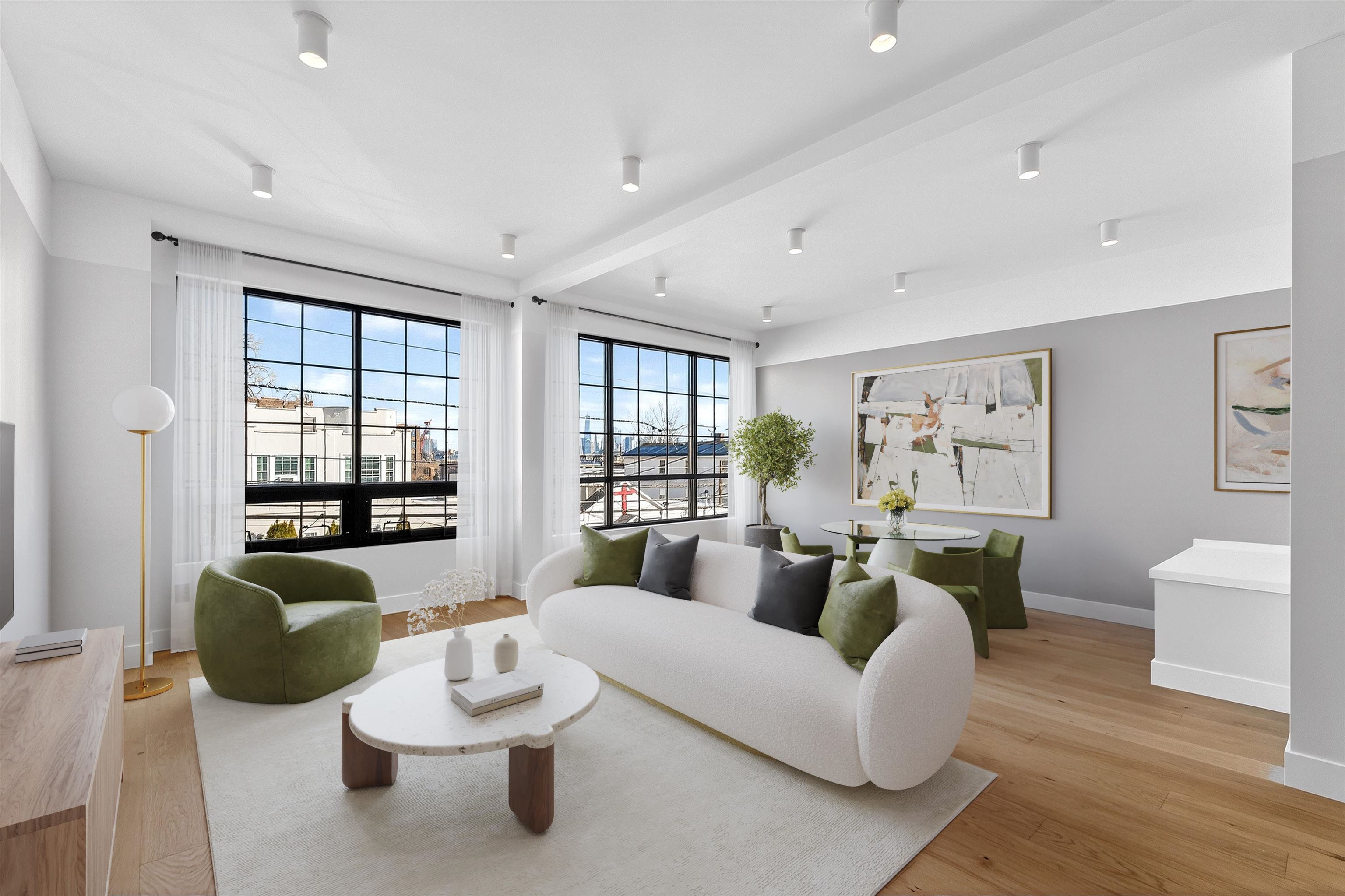 Step into a one-of-a-kind new construction luxury condo residence offering 3 floors of expansive living, 2,625 sq ft of refined interiors, and nearly 750 sq ft of private outdoor space across two spectacular terraces with sweeping 360° views of Manhattan, the Statue of Liberty, and beyond. This stunning 4-bedroom home also features a dramatic rooftop sky lounge—perfect as a 4th bedroom, home office, gym, or private retreat—along with 4 full baths, 2 half baths, designer finishes throughout, and private parking. Technical excellence is evident throughout, with ethernet wiring for camera and Wi-Fi systems, smart LED lighting, Legrand designer electrical switches, and unit-level control panels. Climate control features include Frederich high-performance multi-zone HVAC systems, radiant floor heating, including snow-melting terraces, Bluetooth bathroom fans, and smart water heaters with leak detection. Designer kitchens feature Frigidaire Gallery appliances, with a Frigidaire Professional refrigerator, and an 8-foot quartz island. Bathrooms are finished with lime washed walls, Kohler, Hansgrohe, and Porcelanosa fixtures, Porcelanosa porcelain and ceramic tiles, and smart LED mirrors with defogging functions. 7.5†white oak engineered floors and custom reclaimed wood accents tie the modern interiors to the building's historic origins. This home presents an unparalleled opportunity to own a piece of architectural excellence, combining cutting-edge technology, premium finishes, and reclaimed historic materials — all within a single, thoughtfully crafted property. Located in Bergen-Lafayette, this home offers the best of urban living with its vibrant community and easy access to a wide range of amenities, including dining, shopping, and entertainment options. Plus the massive Canal Crossing Charter School Campus will offer a convent and highly rated school option right in the neighborhood! Enjoy the charm and convenience of this neighborhood, while still being within reach of everything Jersey City has to offer.