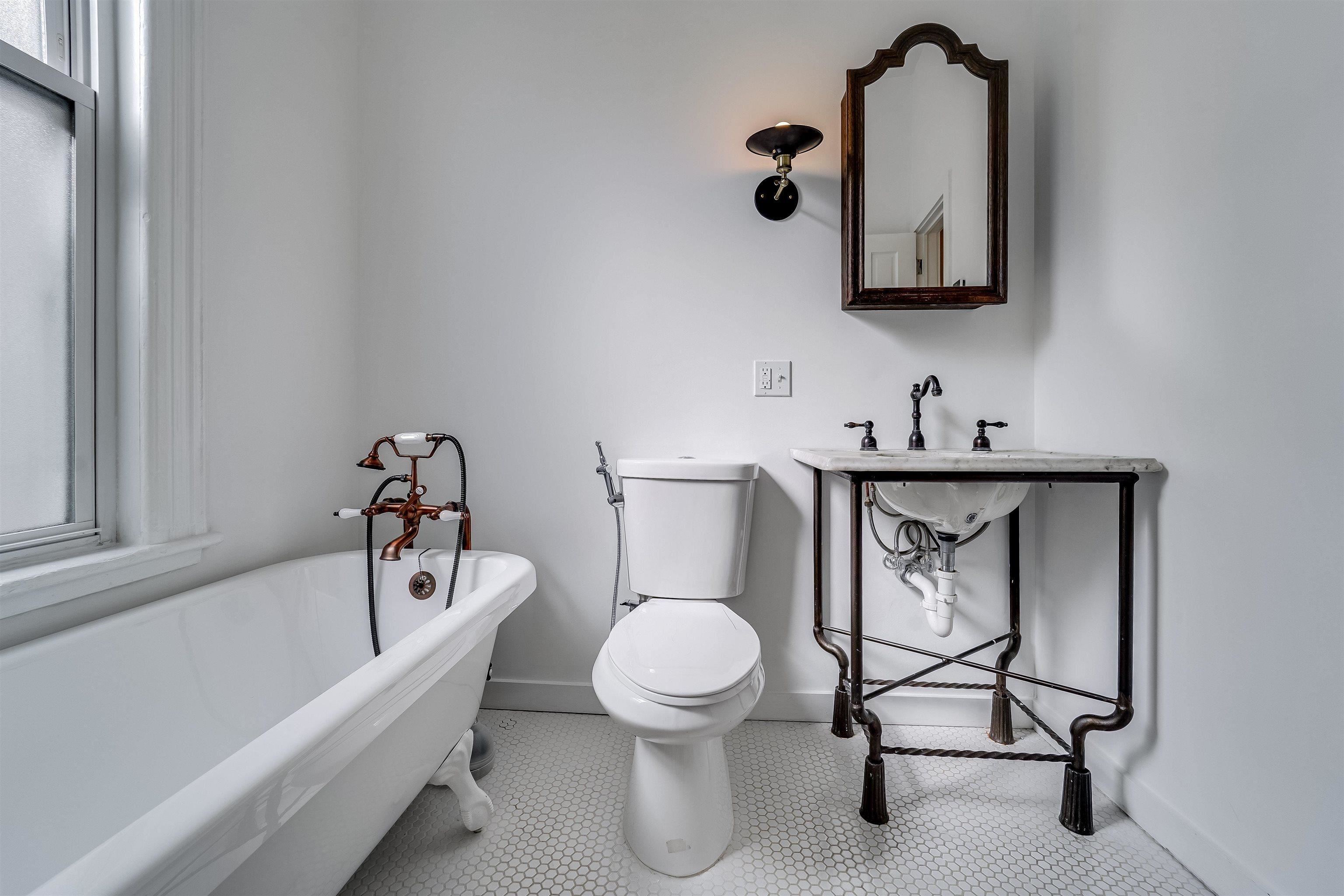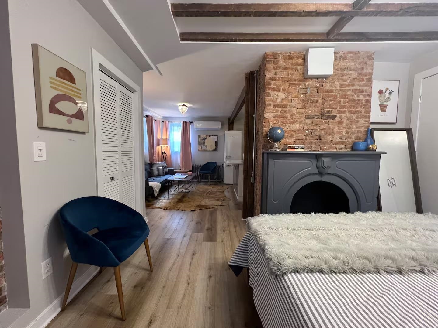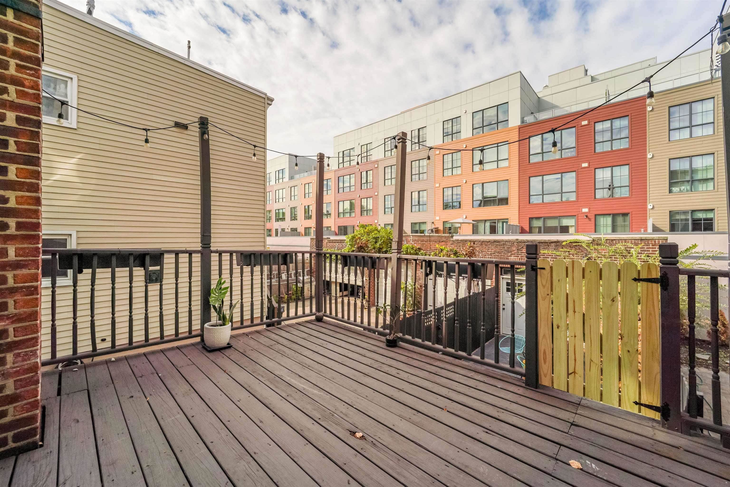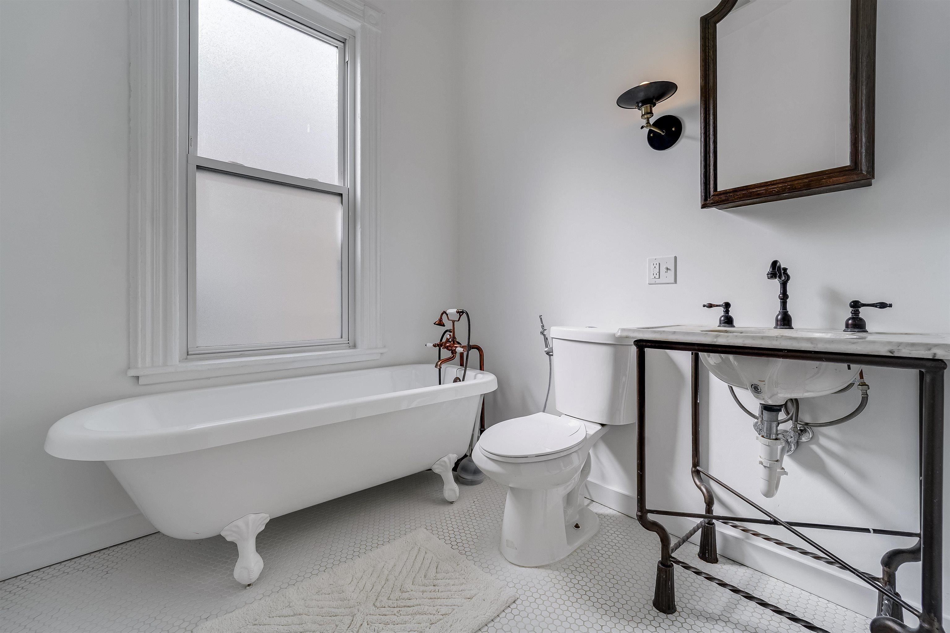 Perfectly positioned on one of the most coveted blocks in Jersey City Heights, this detached two-family home seamlessly blends historic character with high-end contemporary design. As you step into the primary residence, you are greeted by an expansive main floor bathed in natural light, highlighting the stunning original sub-flooring and exposed wood beams. The living area serves as a sophisticated retreat, anchored by a decorative mantle and accented by rich exposed brick that runs throughout the entire property, offering a warm, industrial-chic aesthetic. The heart of the main unit is the chef’s kitchen, a masterpiece of form and function featuring crisp white shaker cabinetry, elegant stone countertops, and a large central island perfect for entertaining. Culinary enthusiasts will appreciate the premium Bertazzoni range and hood and suite of stainless steel appliances. Adjacent to the kitchen, sliding glass doors lead directly to a private terrace, creating a fluid indoor-outdoor living experience. A stylish half-bath and a full-sized stacked washer/dryer complete this level for ultimate convenience. Retreat to the upper level of the main home, where you will find three thoughtfully designed bedrooms. The primary suite is a true sanctuary, boasting a luxurious ensuite bathroom equipped with a deep soaking tub and radiant heated floors for a spa-like feel. The additional bedrooms are serviced by a sleek hallway bath with a custom-tiled shower. Currently, one bedroom has been transformed into a dream walk-in closet featuring fully custom built-ins, offering unparalleled storage. The second unit is a fully equipped one-bedroom, one-bathroom garden-style apartment. Featuring its own full kitchen with an island, dedicated laundry, and direct access to the backyard, this space provides incredible flexibility for rental income or a private guest suite. Outside, the property includes a rare garage parking spot at the rear of the lot with additional attached storage space. Located just steps from the vibrant Riverview-Fisk Park, this unique two-family residence offers a rare combination of historic charm and modern luxury in the heart of The Heights.