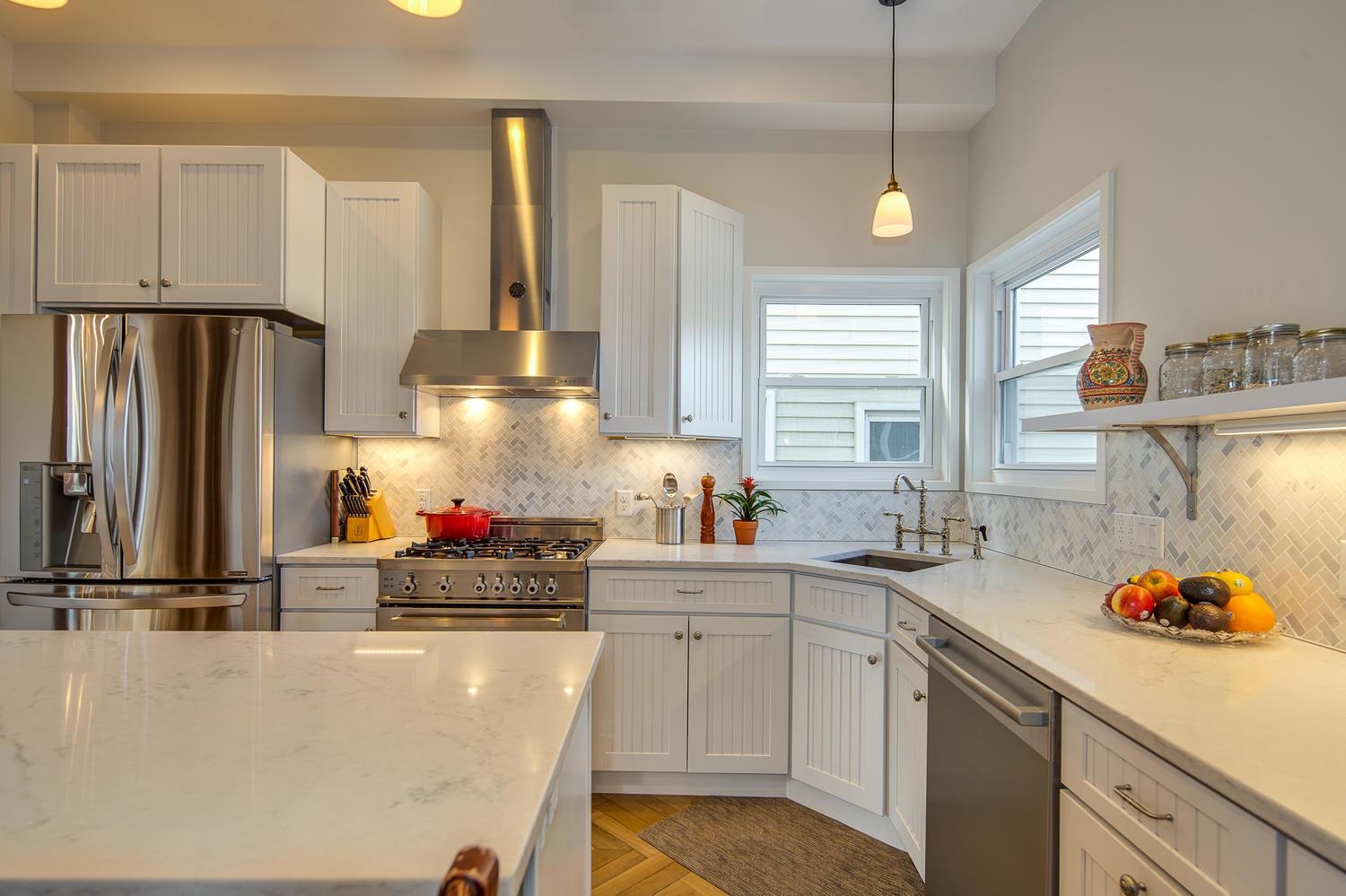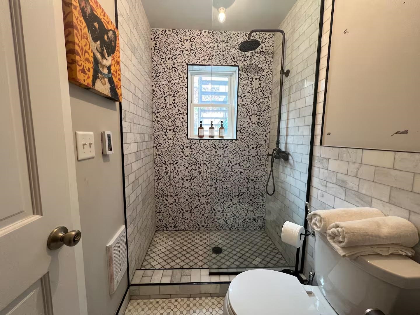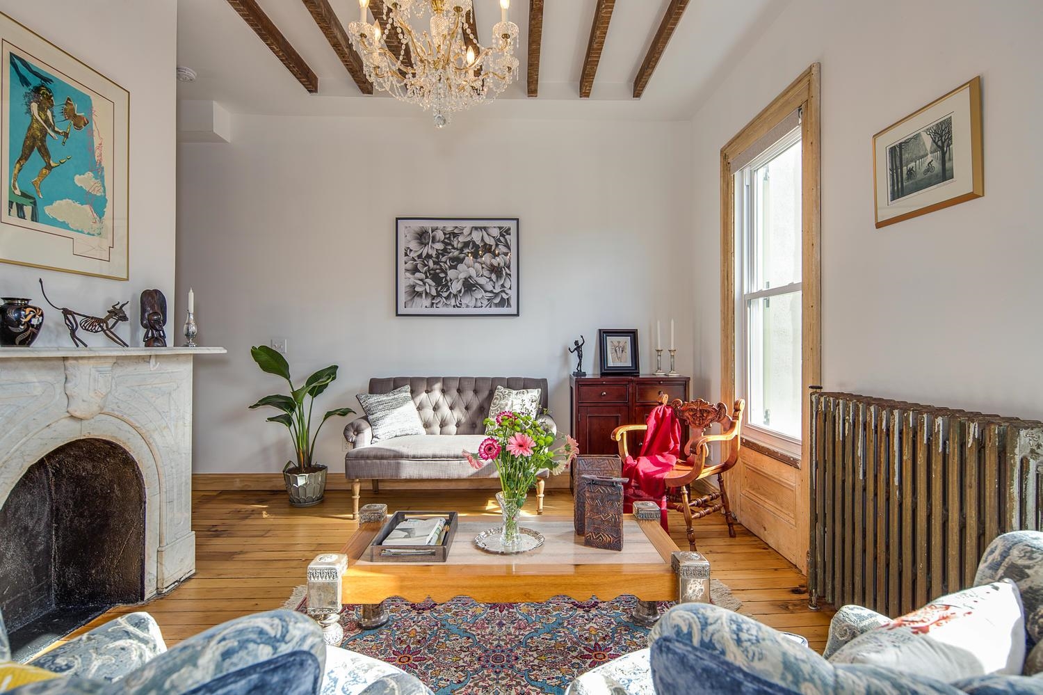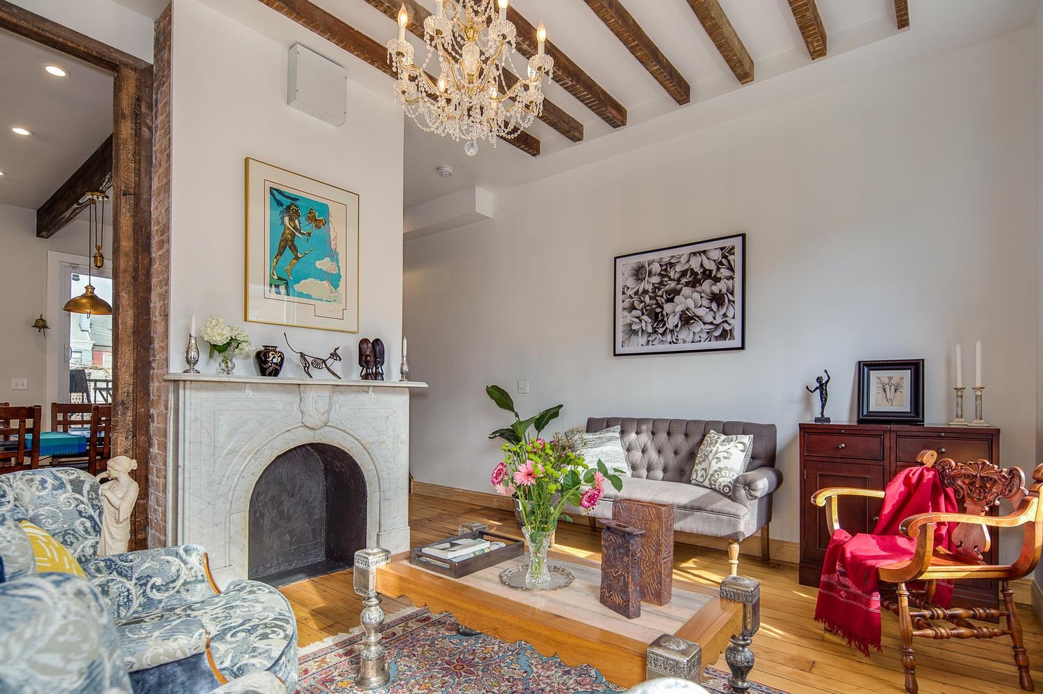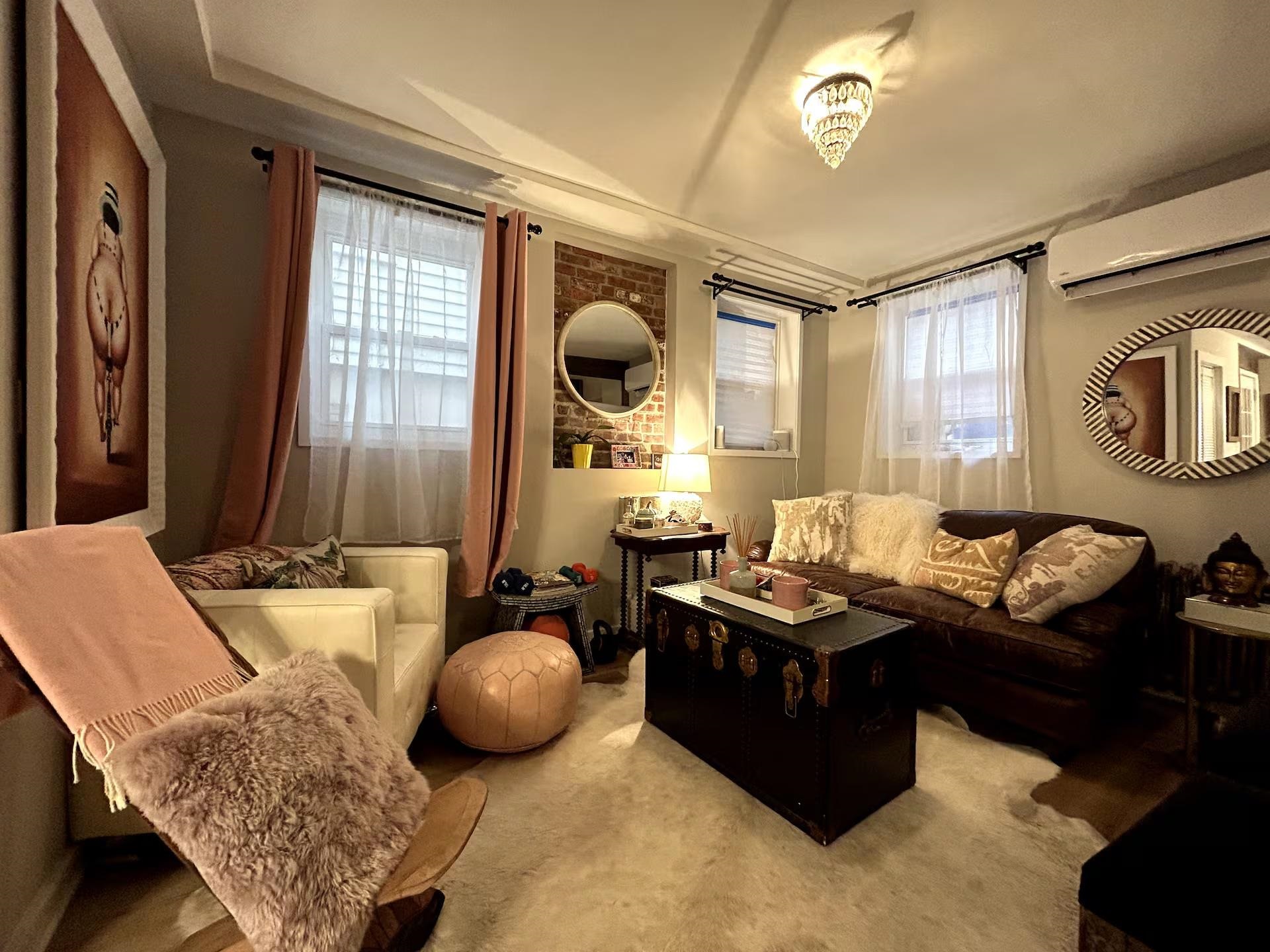 Perfectly positioned on one of the most coveted blocks in Jersey City Heights, this detached two-family home seamlessly blends historic character with high-end contemporary design. As you step into the primary residence, you are greeted by an expansive main floor bathed in natural light, highlighting the stunning original sub-flooring and exposed wood beams. The living area serves as a sophisticated retreat, anchored by a decorative mantle and accented by rich exposed brick that runs throughout the entire property, offering a warm, industrial-chic aesthetic. The heart of the main unit is the chef’s kitchen, a masterpiece of form and function featuring crisp white shaker cabinetry, elegant stone countertops, and a large central island perfect for entertaining. Culinary enthusiasts will appreciate the premium Bertazzoni range and hood and suite of stainless steel appliances. Adjacent to the kitchen, sliding glass doors lead directly to a private terrace, creating a fluid indoor-outdoor living experience. A stylish half-bath and a full-sized stacked washer/dryer complete this level for ultimate convenience. Retreat to the upper level of the main home, where you will find three thoughtfully designed bedrooms. The primary suite is a true sanctuary, boasting a luxurious ensuite bathroom equipped with a deep soaking tub and radiant heated floors for a spa-like feel. The additional bedrooms are serviced by a sleek hallway bath with a custom-tiled shower. Currently, one bedroom has been transformed into a dream walk-in closet featuring fully custom built-ins, offering unparalleled storage. The second unit is a fully equipped one-bedroom, one-bathroom garden-style apartment. Featuring its own full kitchen with an island, dedicated laundry, and direct access to the backyard, this space provides incredible flexibility for rental income or a private guest suite. Outside, the property includes a rare garage parking spot at the rear of the lot with additional attached storage space. Located just steps from the vibrant Riverview-Fisk Park, this unique two-family residence offers a rare combination of historic charm and modern luxury in the heart of The Heights.