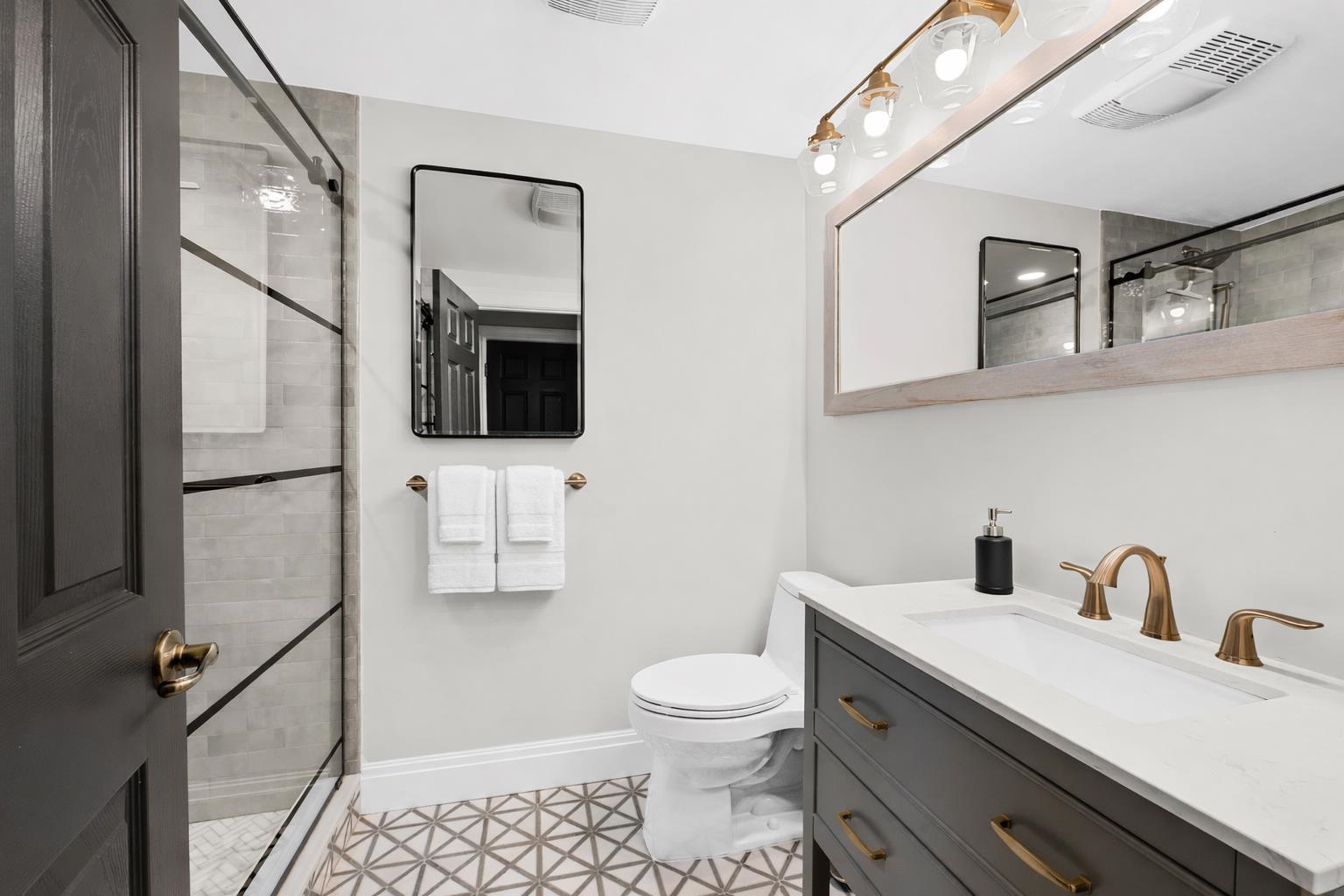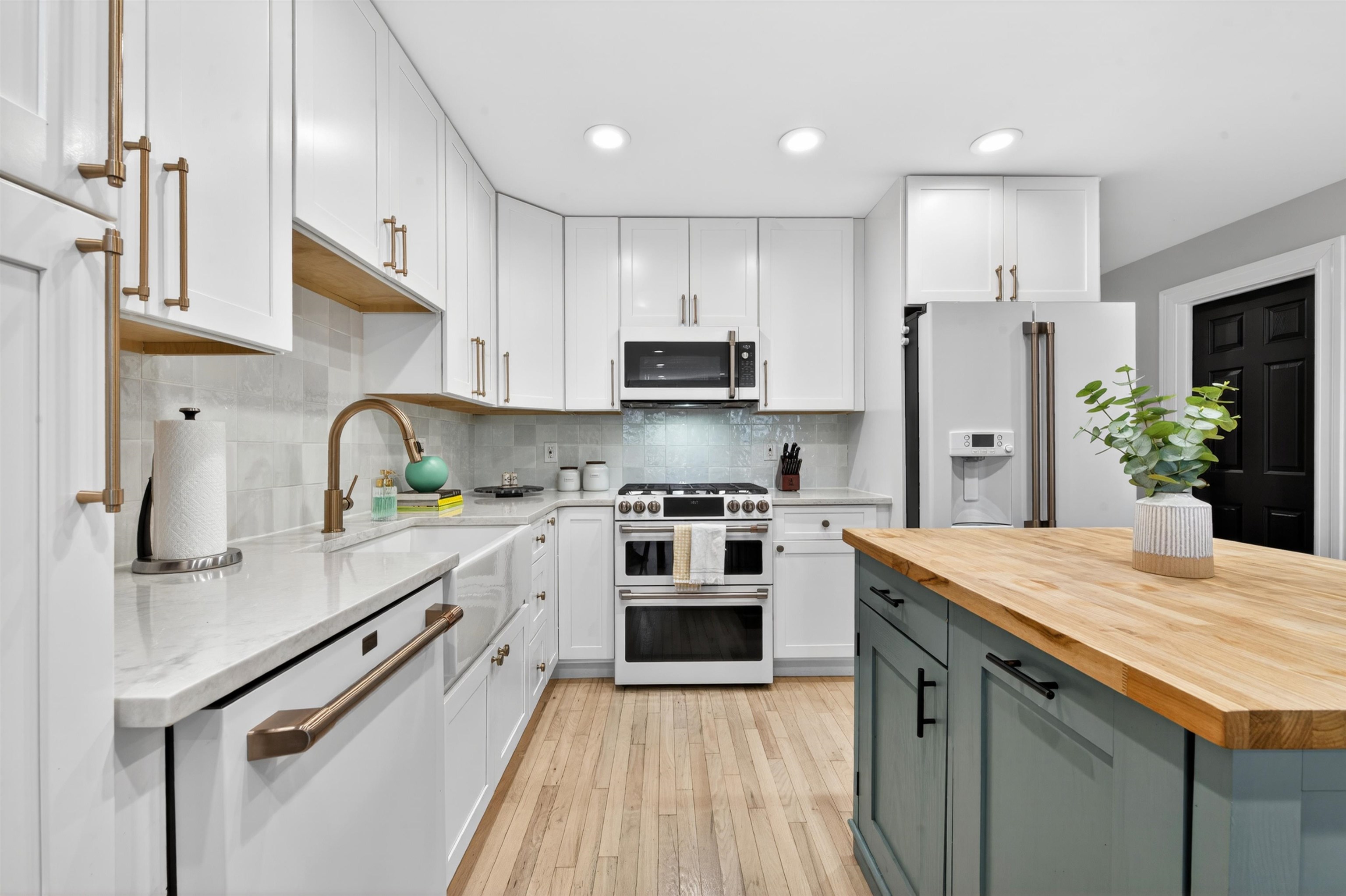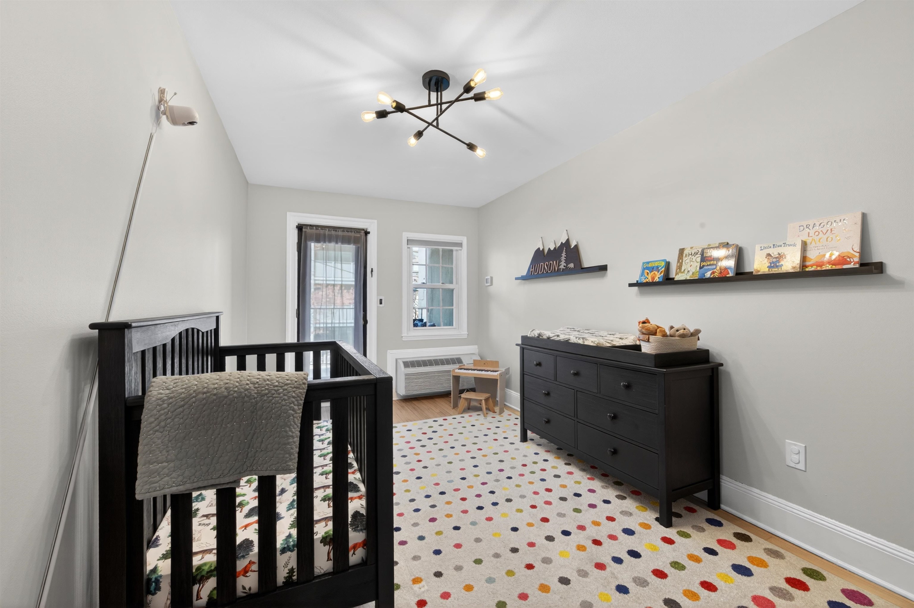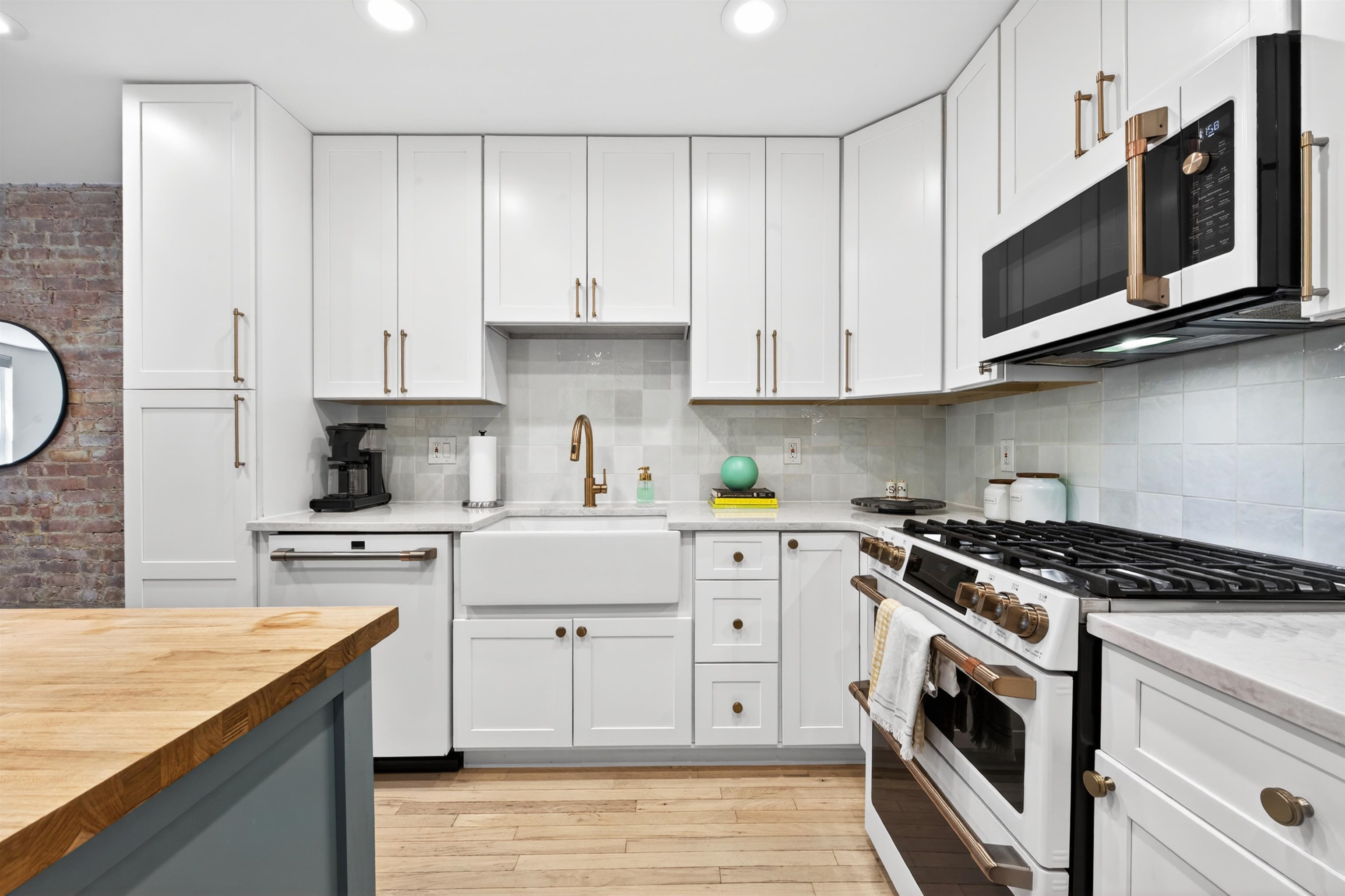 Welcome to 112 Bloomfield Street, Unit 1 — a beautifully updated two-bedroom, two-bathroom home offering over 1,300 square feet of sophisticated living space with a private terrace, perfectly situated on one of Downtown Hoboken’s most sought-after tree-lined blocks. Step inside this sun-lit expansive open-concept living and dining area designed for both entertaining and everyday comfort. Character-rich details include exposed brick, a gas fireplace, recessed lighting, and Scandinavian oak hardwood floors throughout. The stunning chef’s kitchen seamlessly blends function and style, featuring matte white GE Café Series appliances with brushed bronze hardware, a sleek LG dishwasher, white quartz countertops, a custom butcher block island, soft-close cabinetry, and a deep 30-inch farmhouse sink. Thoughtful design meets practicality with abundant storage options, including an oversized entry closet and a generous walk-in laundry room outfitted with a full-size washer and dryer. The primary suite is a true retreat—expansive enough for a king-sized bed and a dedicated office nook—offering a custom walk-in closet, with pocket door entry and a spa-inspired ensuite bath with an oversized glass-enclosed shower. The second bedroom is equally inviting, filled with natural light and featuring its own custom walk-in closet. Additional comforts include smart keyless entry, a designated stroller parking area just outside the unit, and shared basement storage. Enjoy an effortless commute with quick access to the PATH train, NY Waterway Ferry, and NJ Transit. Washington Street, the Hudson River Waterfront Walkway, as well as Hoboken’s finest parks, dining, shops, and schools are all just steps away. Rental parking is available within a two-block radius. A rare opportunity to own a turnkey home in one of Hoboken’s most desirable downtown locations.