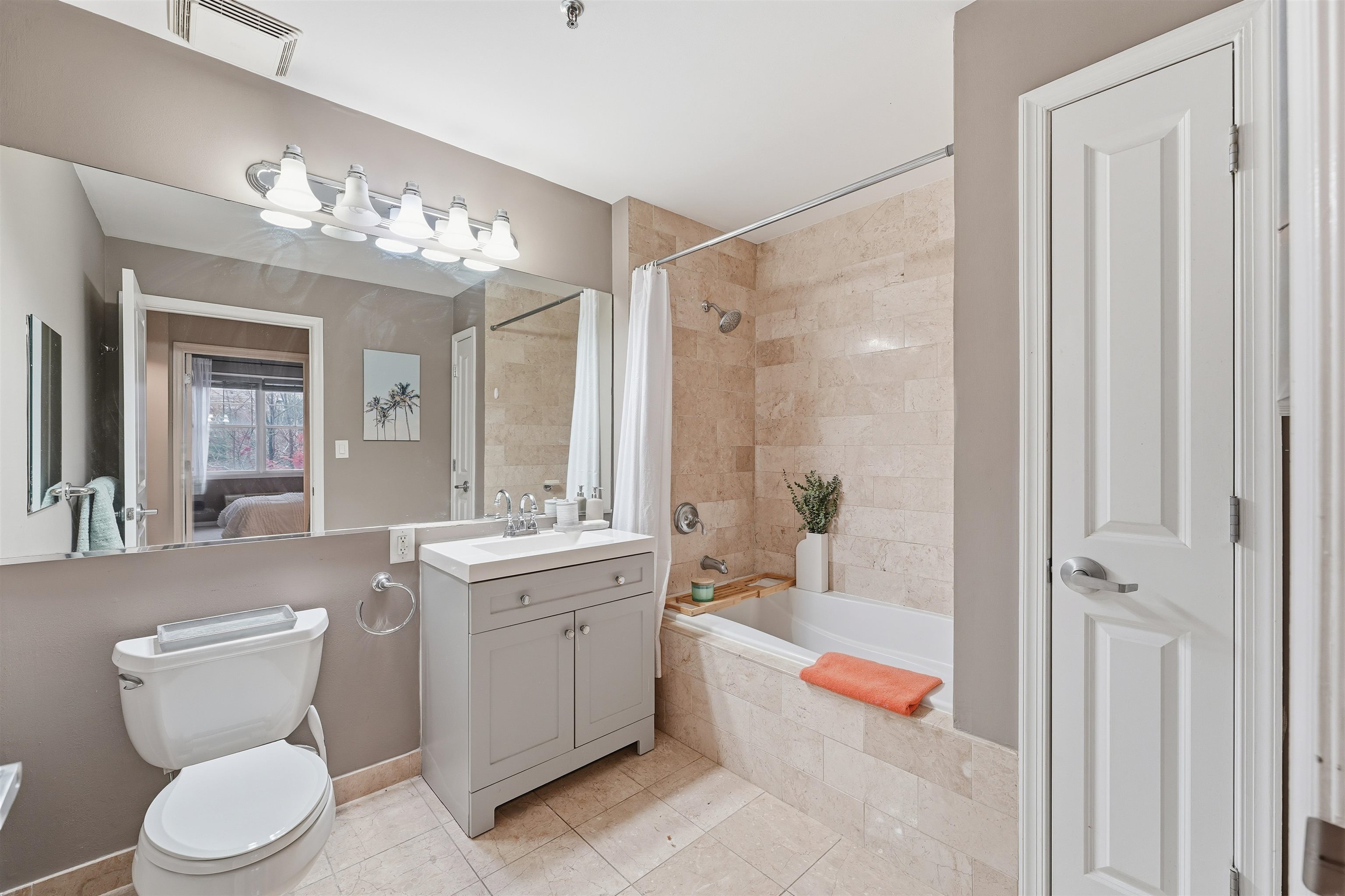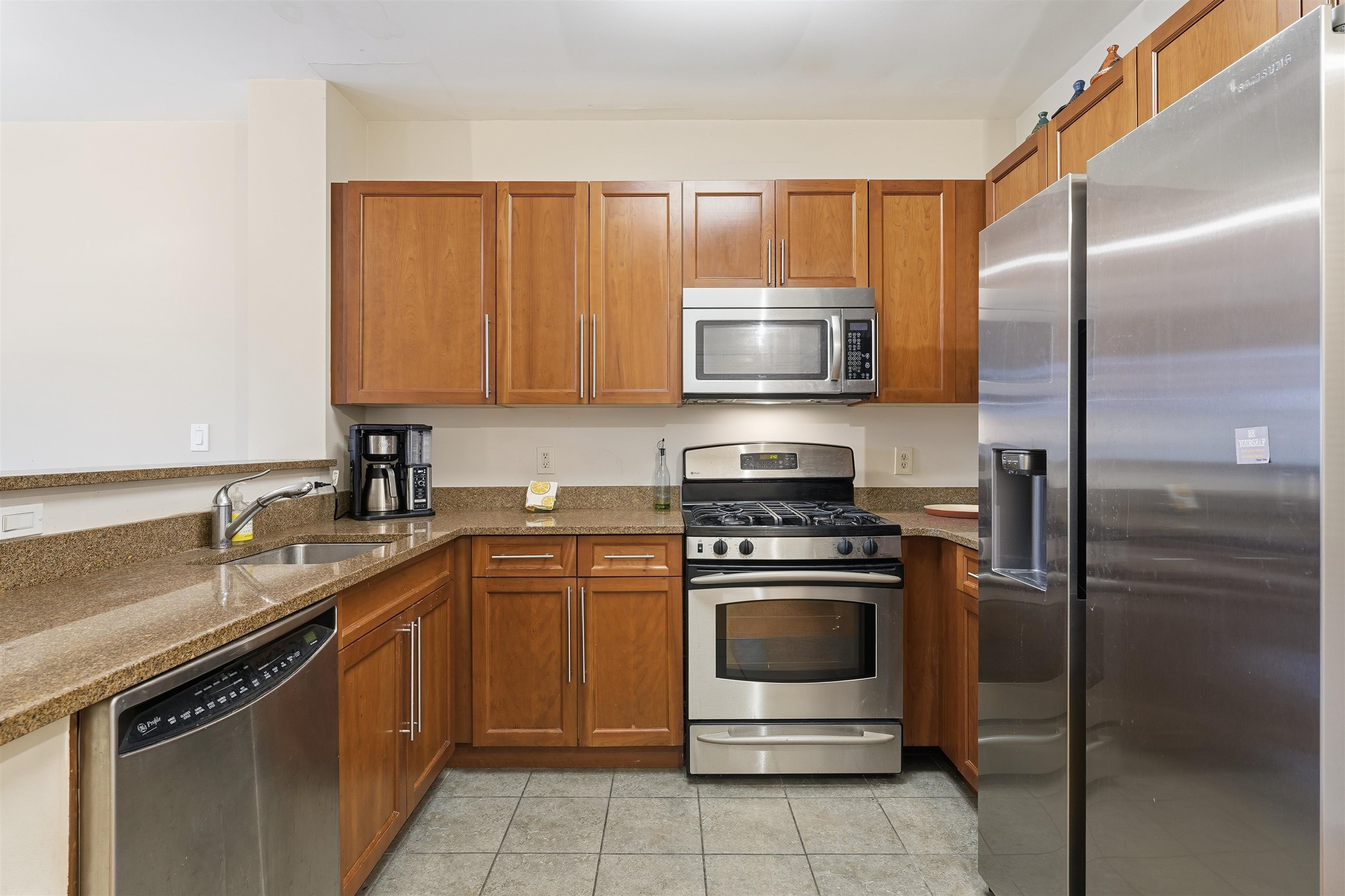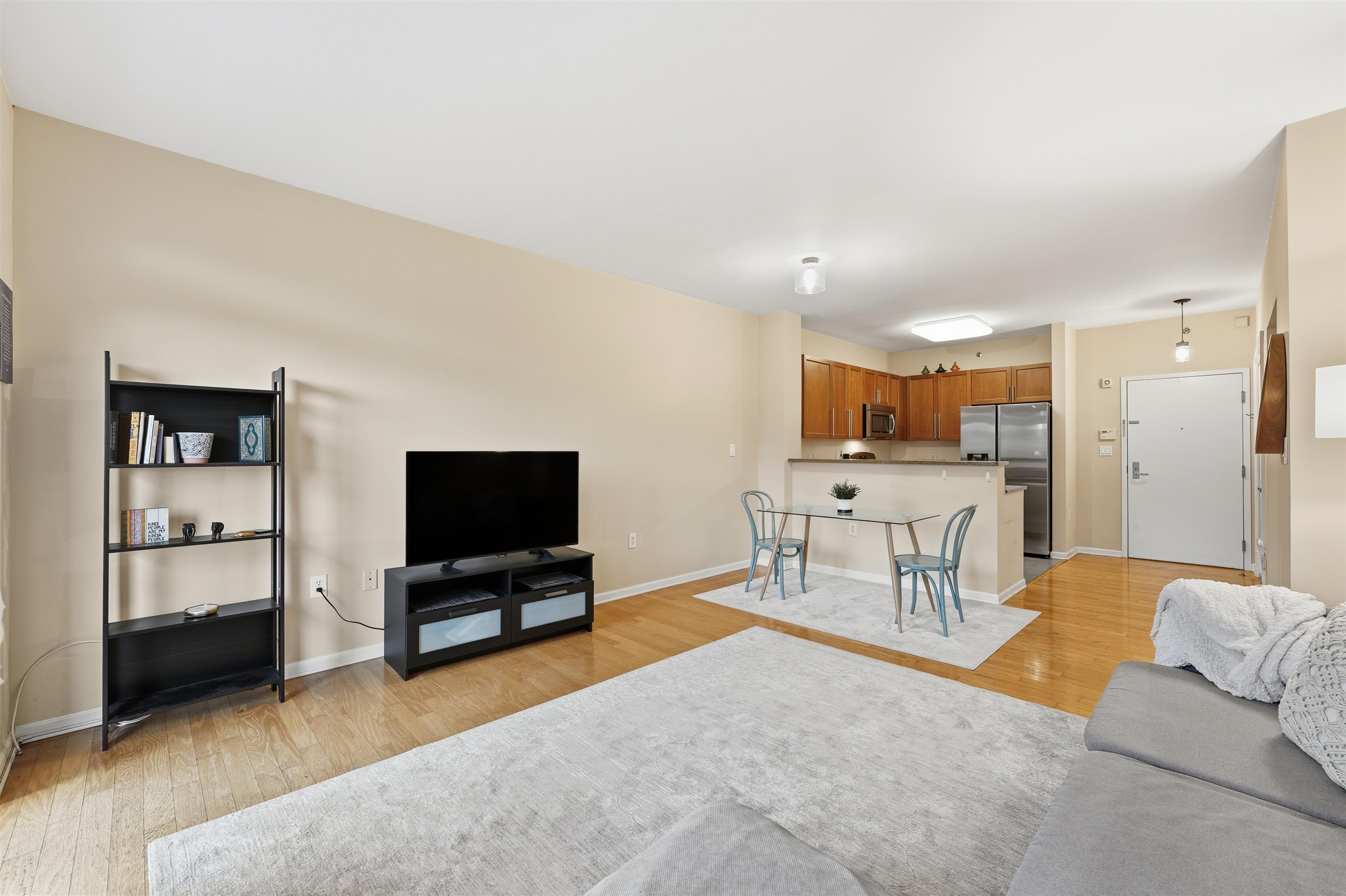 Live the luxe life at this waterfront 1 BR Condo in Port Liberte! This spacious home is South-facing and serene, featuring a private balcony with treetop views, a gracious floorplan, and 1 car assigned parking. Live comfortably at this community with unparalleled amenities including a private riverfront walking trail with NYC Skyline and River views. Experience elevated waterfront living in this meticulously maintained home. Step into a sunlit living space featuring an open-concept layout that seamlessly connects the living and dining areas. The modern kitchen is equipped with stainless steel appliances, including a gas range, microwave, dishwasher, catering to both everyday living and entertaining. The bedroom is king-sized with a huge customized walk-in closet and room for a sitting area. Additional highlights include an in-unit washer and dryer, customized closets and intercom system. Community Amenities: Port Liberte is a gated, European-inspired waterfront enclave offering residents access to: Two outdoor swimming pools- the infinity pool has direct views of NYC! Tennis and basketball courts, a 4,600-square-foot fitness center with saunas and massage rooms Clubhouse, playground, and dog park, and optional deep-water slips for seasonal docking of boats and watercraft. On-site shuttle service to Grove Street PATH Station and Paulus Hook ferry terminal. Monthly maintenance fees cover heat, water, hot water, parking, daily trash removal, snow removal, and full access to all community amenities.