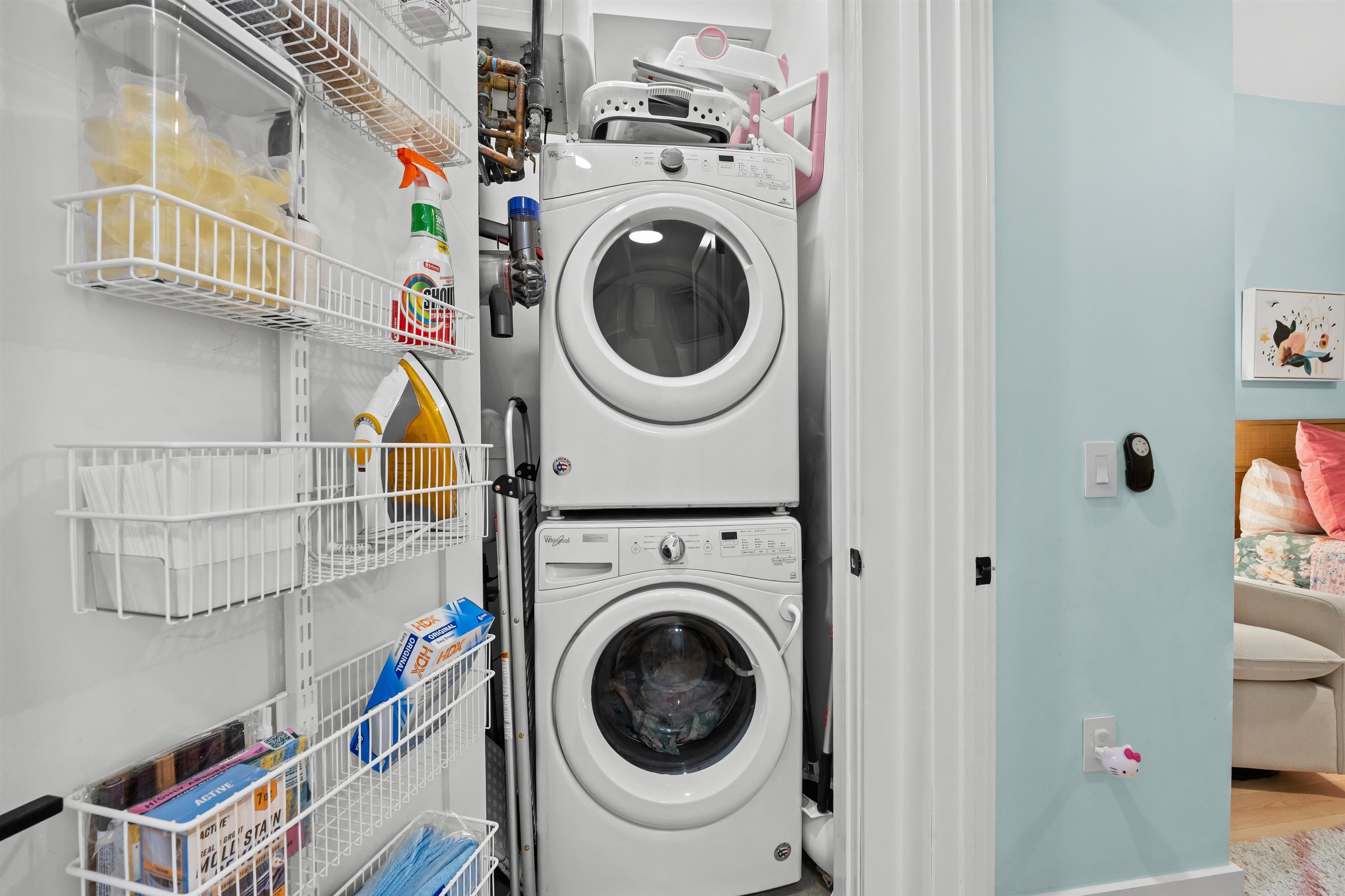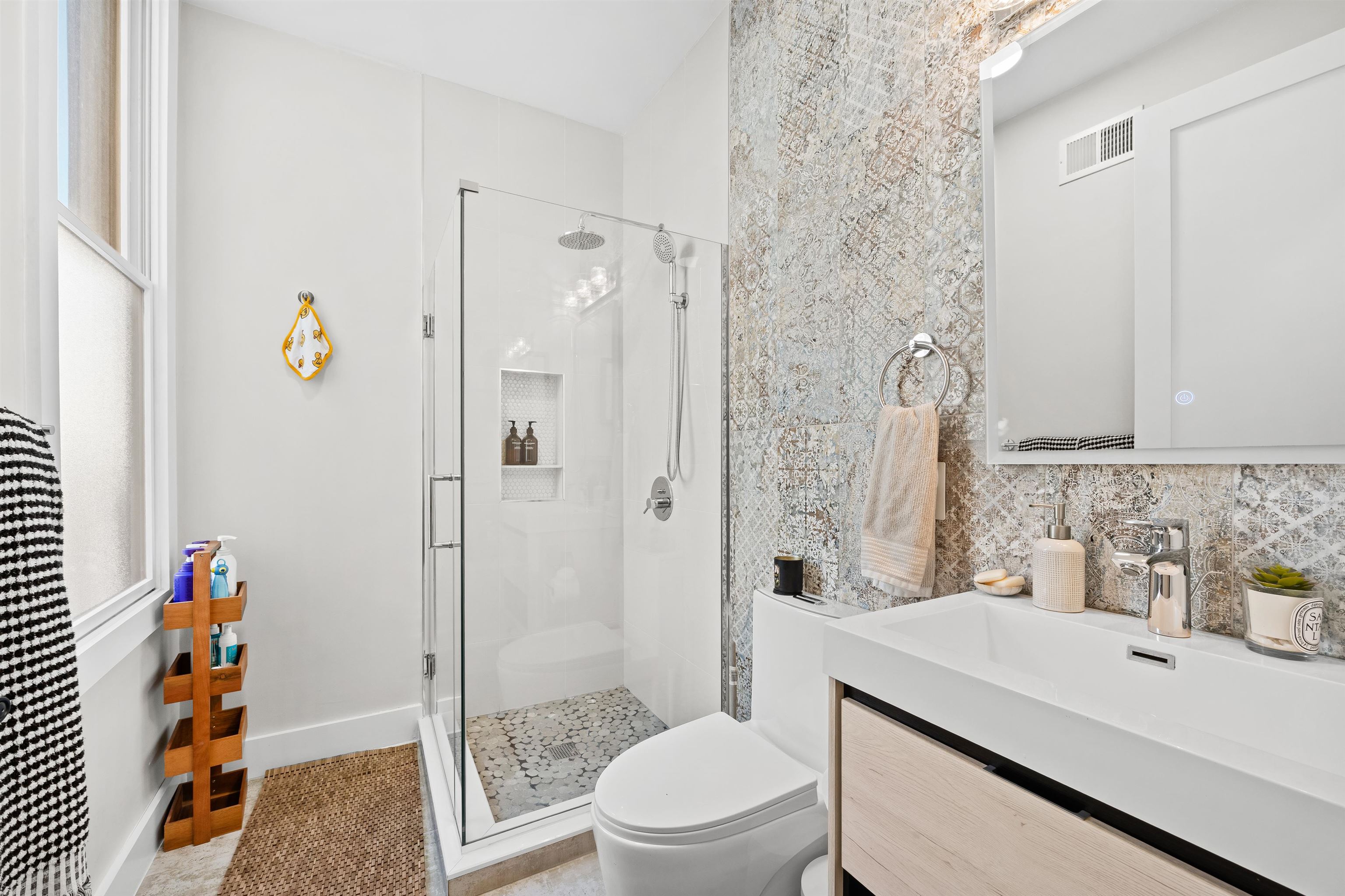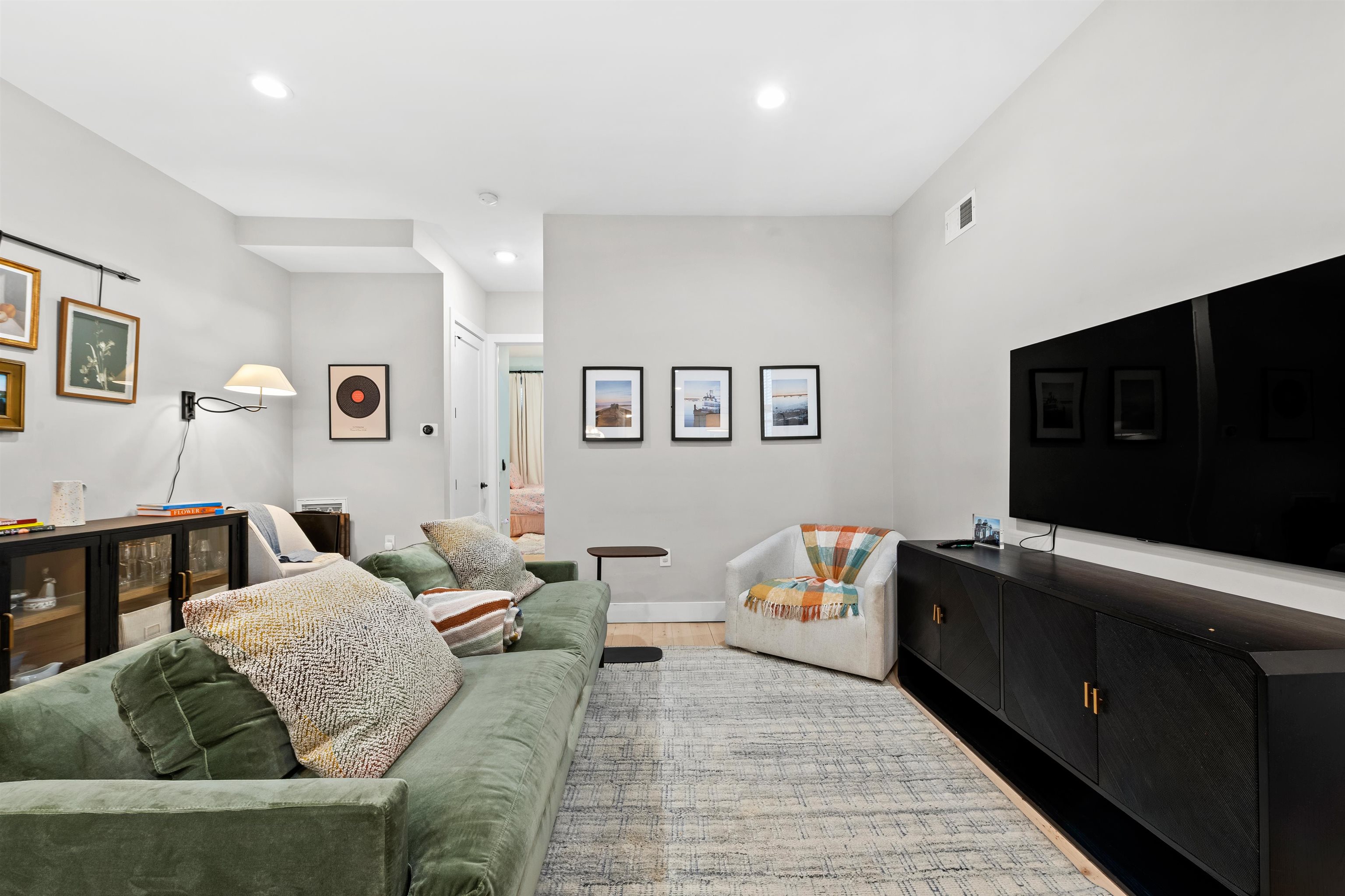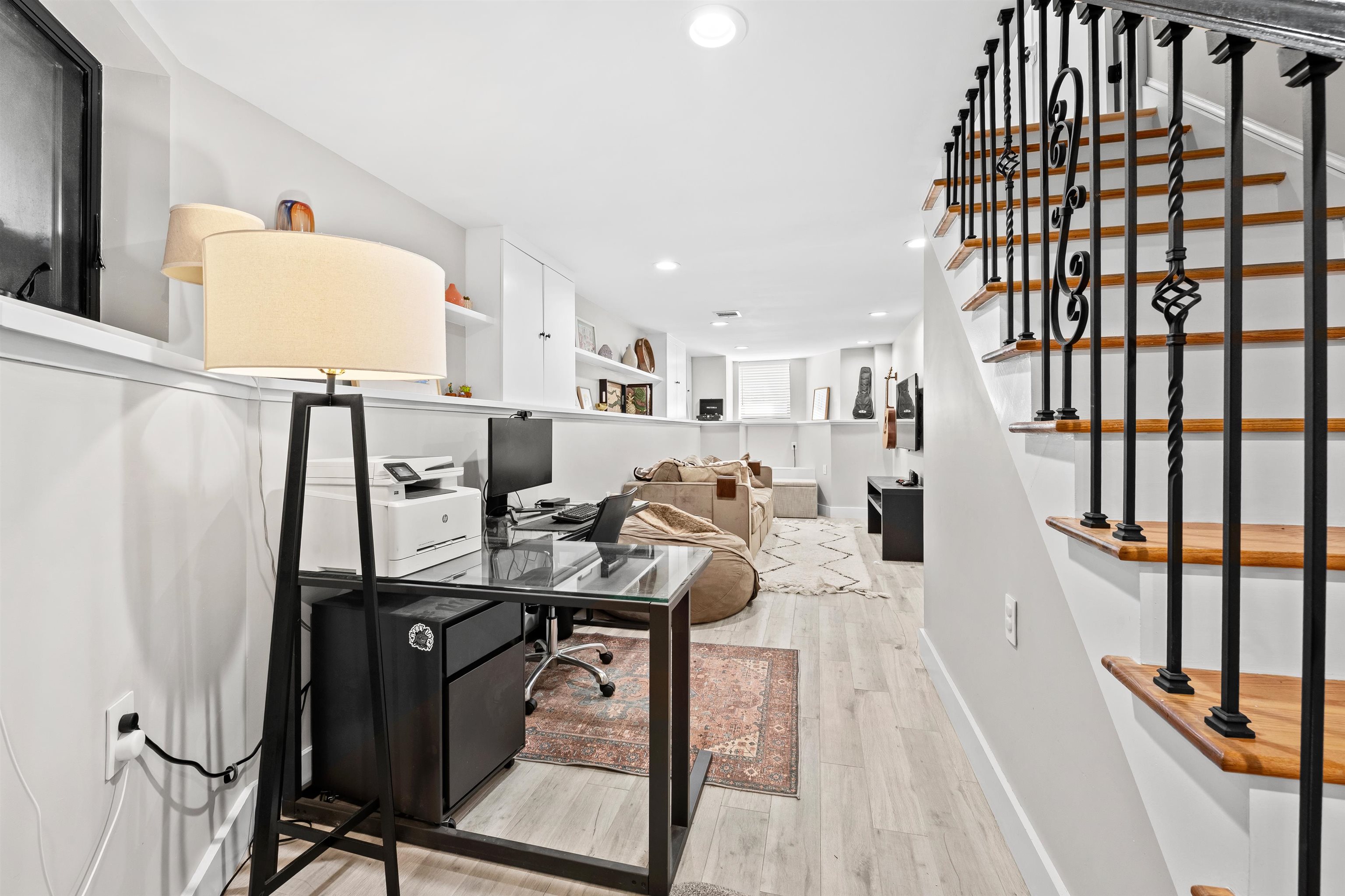 A standout offering at 289 Webster, this fully reimagined duplex sets a new standard for modern style and sophistication. Thoughtfully renovated from top to bottom, the home blends modern design with elevated finishes. Wide-plank maple flooring runs throughout, while soaring ceilings, oversized doors, and expansive Pella windows enhance the sense of space and bring in natural light, creating a warm yet sophisticated atmosphere. The kitchen is both sleek and functional, featuring imported Italian cabinetry, quartz countertops, and a premium Bosch 800 Series appliance package, complete with a built-in wine refrigerator—ideal for everyday living and entertaining alike. Bathrooms are finished with a refined, contemporary edge, showcasing Hansgrohe fixtures, floating vanities, and distinctive design elements such as textured accent walls that add depth and character. Smart home features—including a Nest thermostat, video intercom system, and keyless Schlage entry—add convenience and security. Perfectly situated just moments from the Congress Street Light Rail and the expansive Washington Park, this unit blends spacious comfort and convenience.