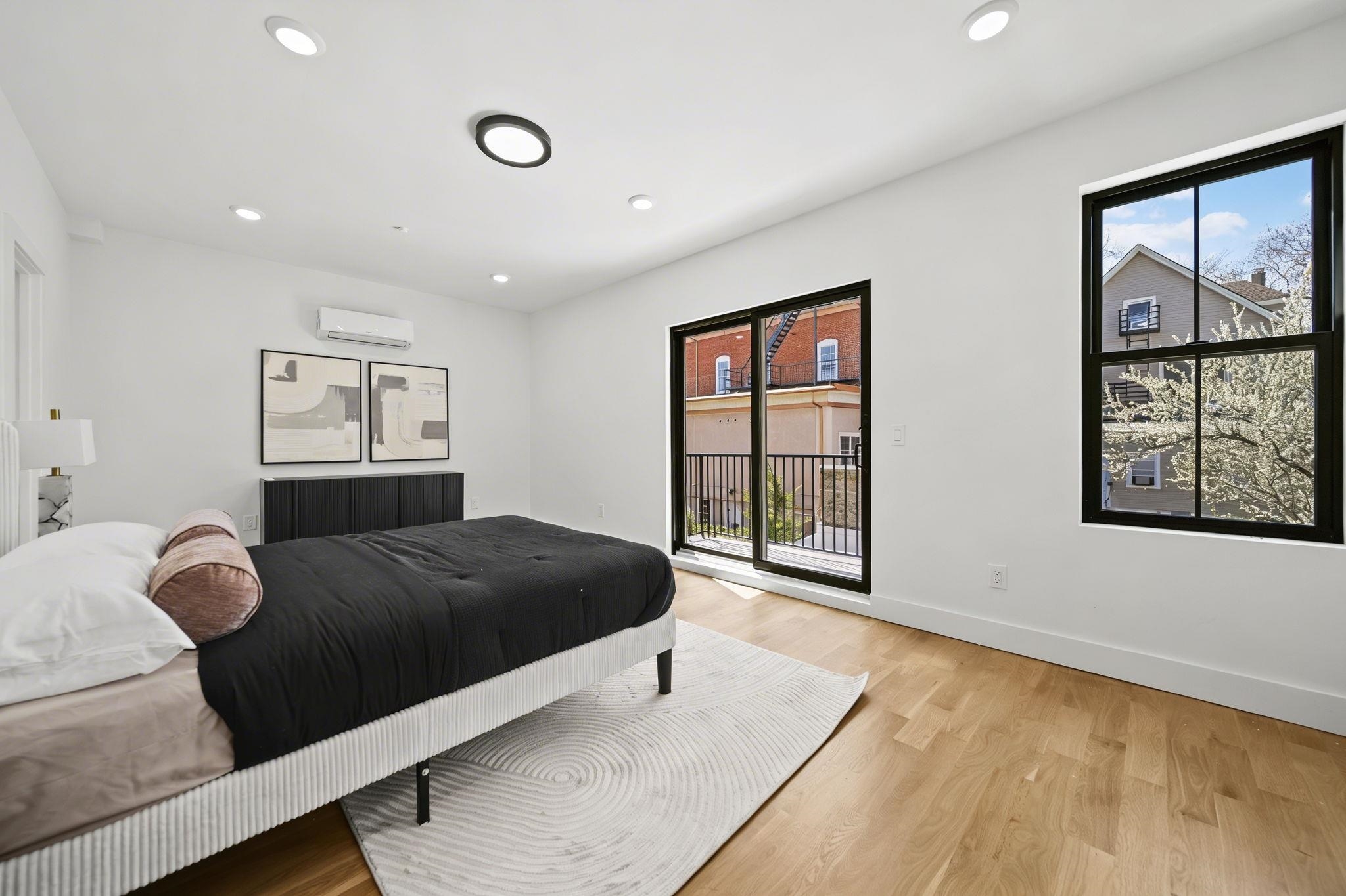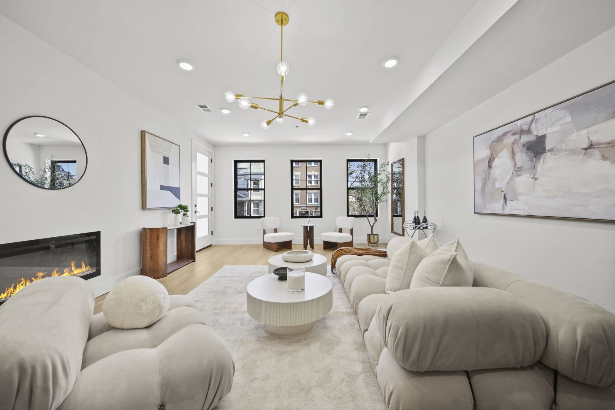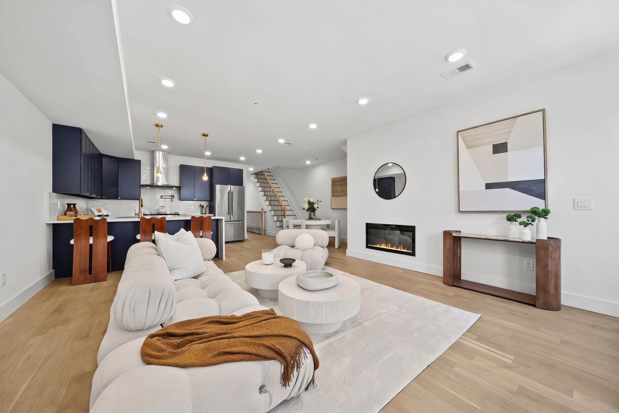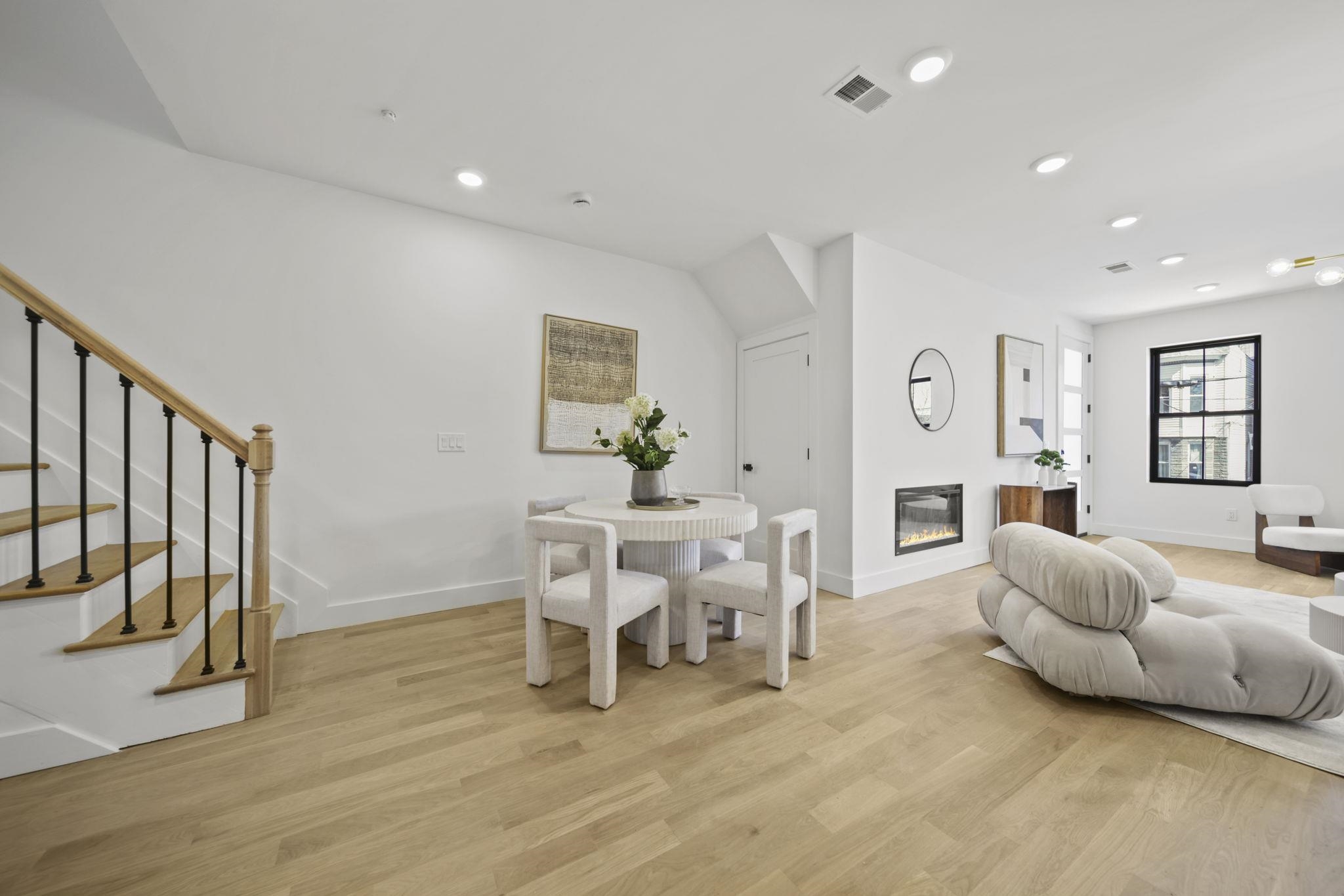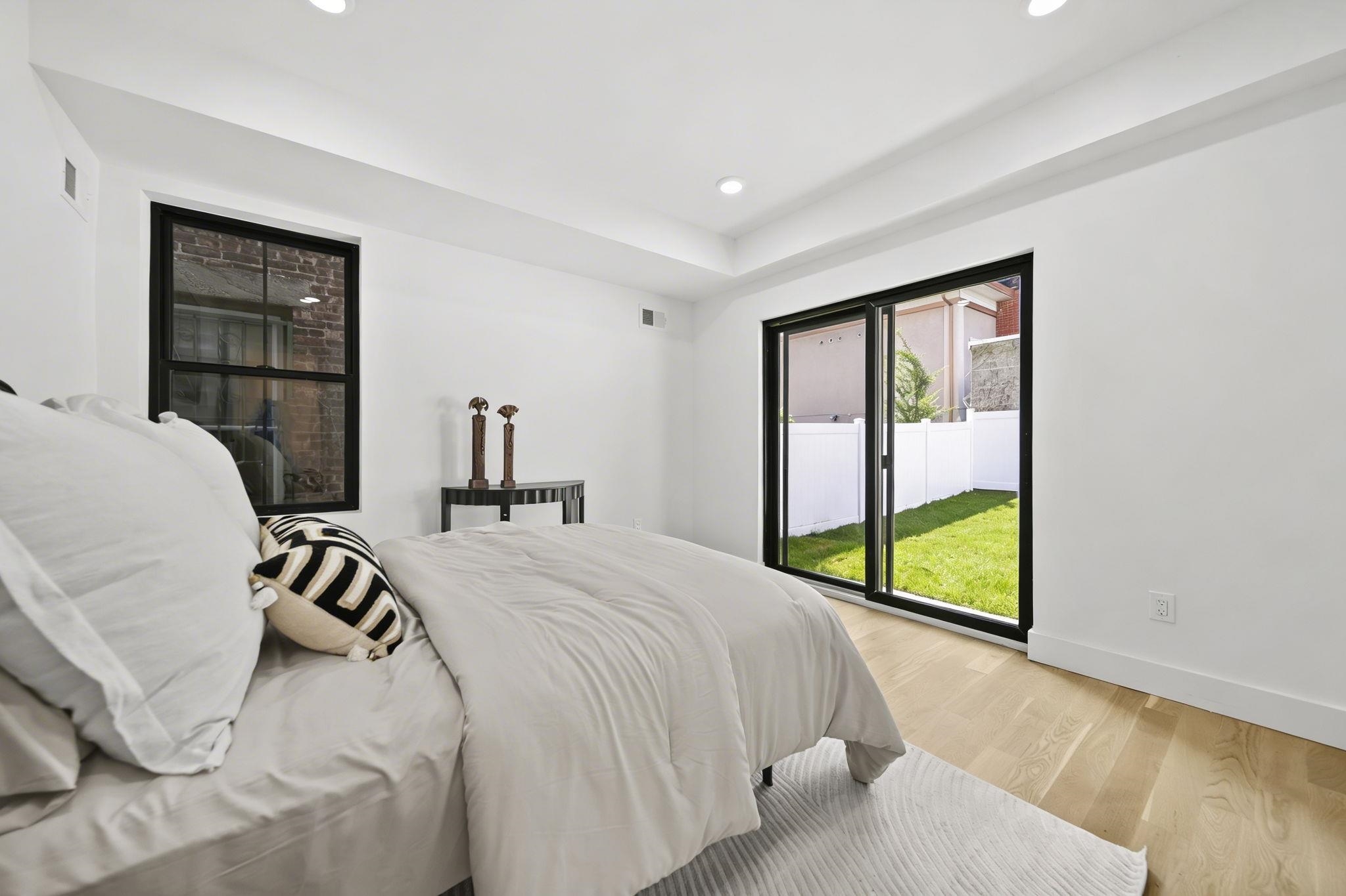 Expansive triplex residence offering an impressive blend of scale, light, and modern design. This sun-filled 4 bedroom home with 2 full and 2 half baths features an open layout and a private backyard offering exceptional outdoor space. The living room is anchored by a sleek fireplace, adding warmth and a refined focal point. The chef’s kitchen is a true centerpiece, featuring bespoke custom cabinetry, quartz countertops and waterfall island, premium JennAir Rise appliance package, pot filler, vented hood, and sleek microwave drawer. The first floor offers two bedrooms and a full bath with double sinks, along with direct access to the private backyard. Upstairs, the primary suite features a private balcony and en-suite bath, along with an additional bedroom and half bath. The lower level includes a spacious family room, abundant storage, a side-by-side washer and dryer, and a half bath. A rare offering that delivers space, style, and thoughtful design on a coveted tree-lined street in Jersey City Heights.