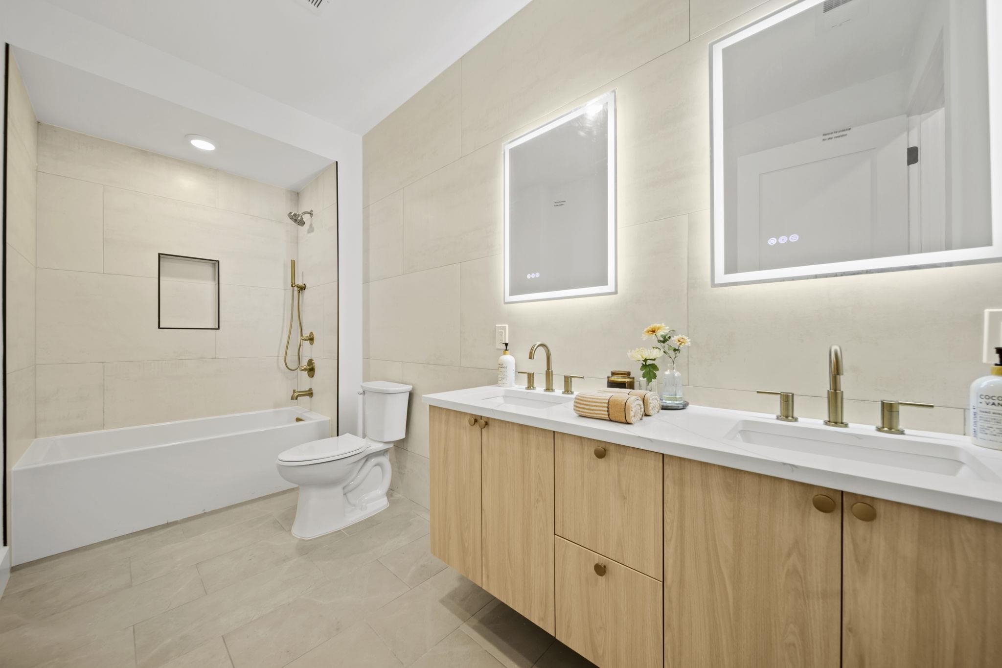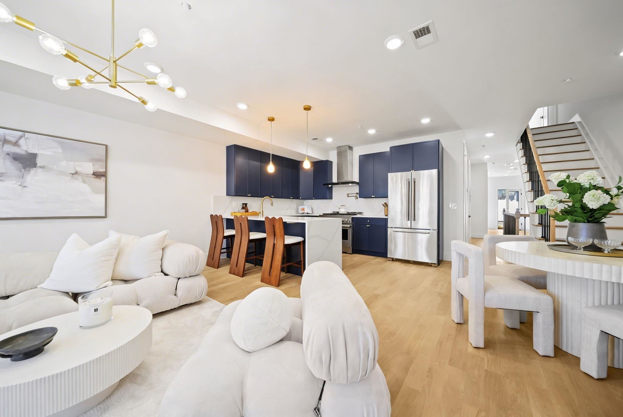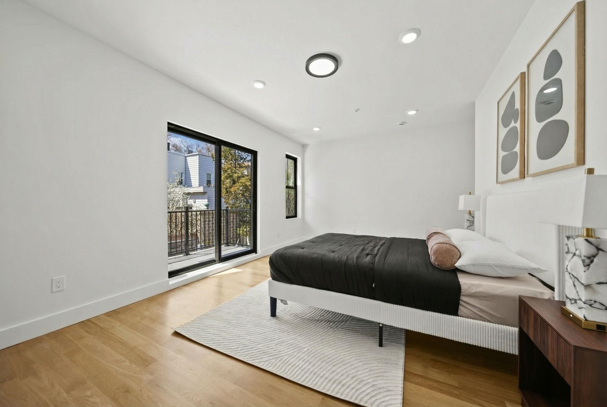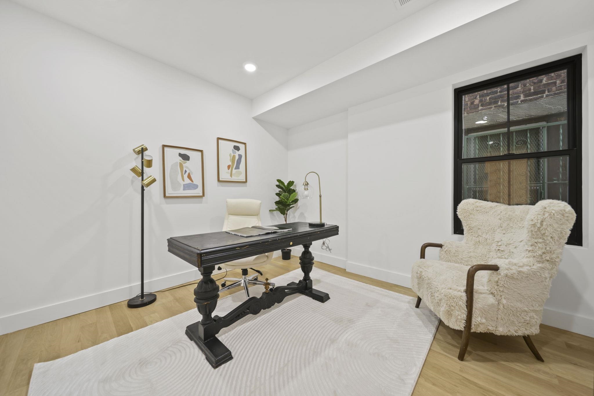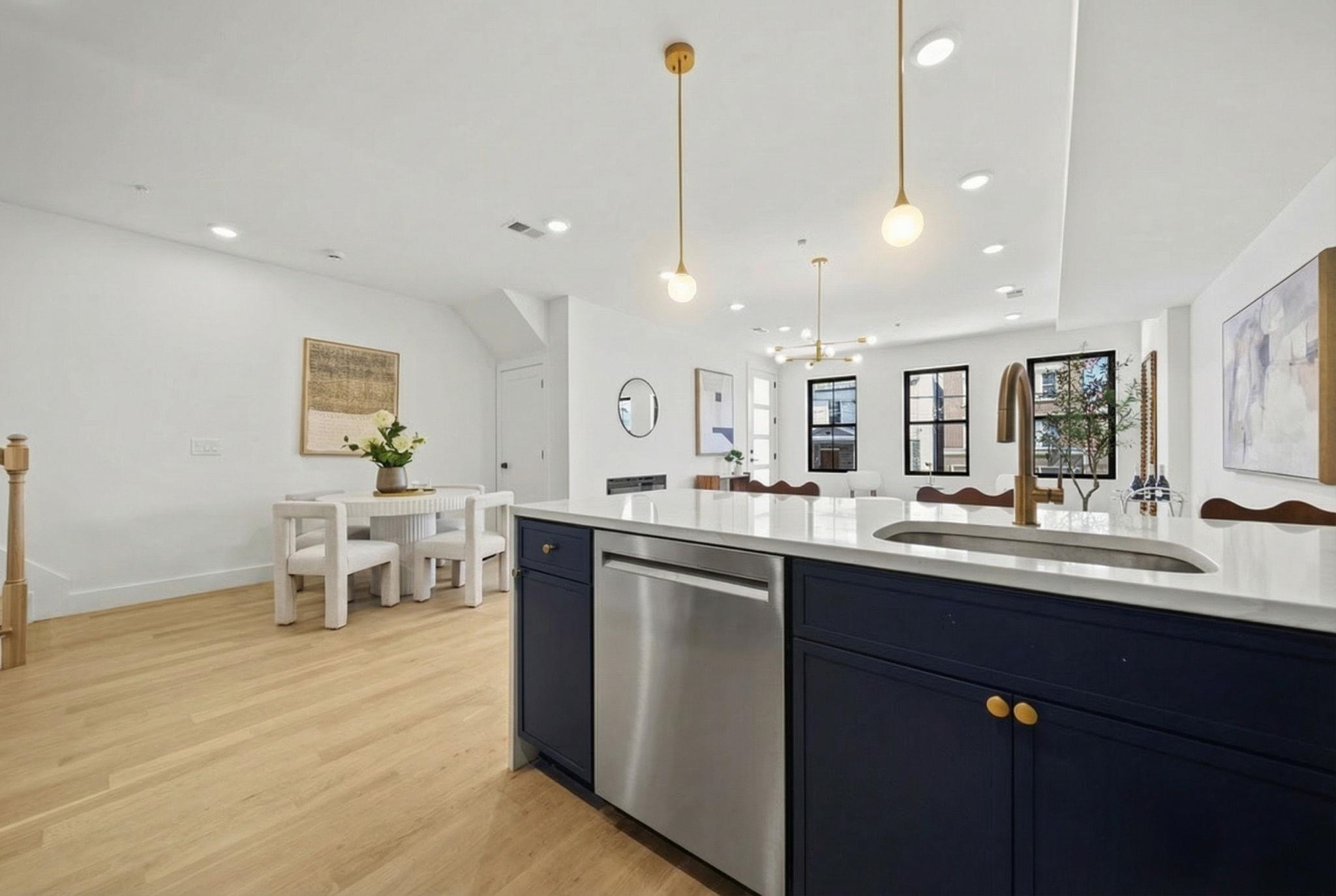 Expansive triplex residence offering an impressive blend of scale, light, and modern design. This sun-filled 4 bedroom home with 2 full and 2 half baths features an open layout and a private backyard offering exceptional outdoor space. The living room is anchored by a sleek fireplace, adding warmth and a refined focal point. The chef’s kitchen is a true centerpiece, featuring bespoke custom cabinetry, quartz countertops and waterfall island, premium JennAir Rise appliance package, pot filler, vented hood, and sleek microwave drawer. The first floor offers two bedrooms and a full bath with double sinks, along with direct access to the private backyard. Upstairs, the primary suite features a private balcony and en-suite bath, along with an additional bedroom and half bath. The lower level includes a spacious family room, abundant storage, a side-by-side washer and dryer, and a half bath. A rare offering that delivers space, style, and thoughtful design on a coveted tree-lined street in Jersey City Heights.