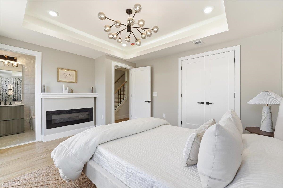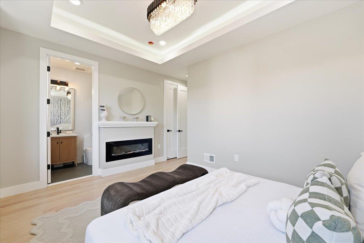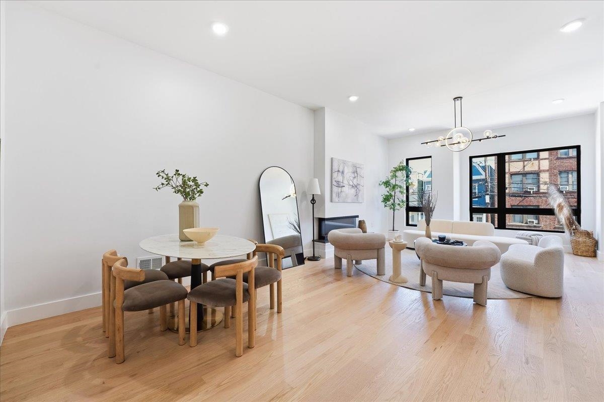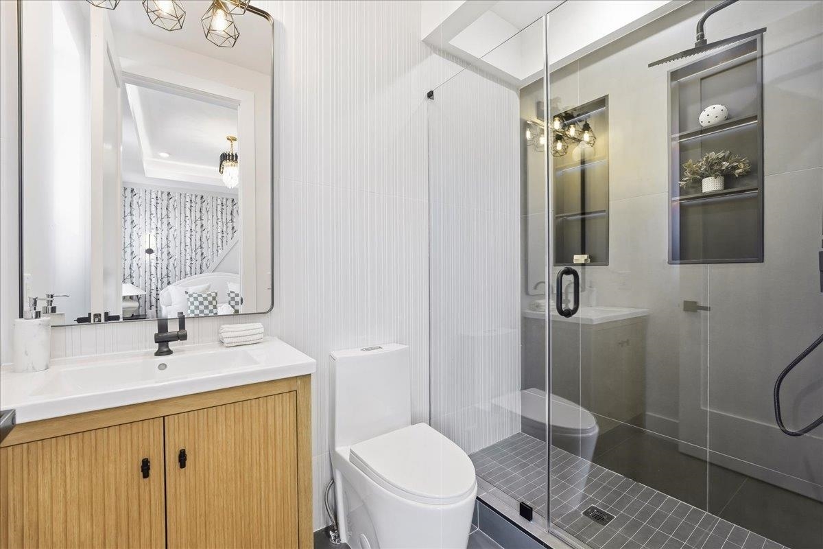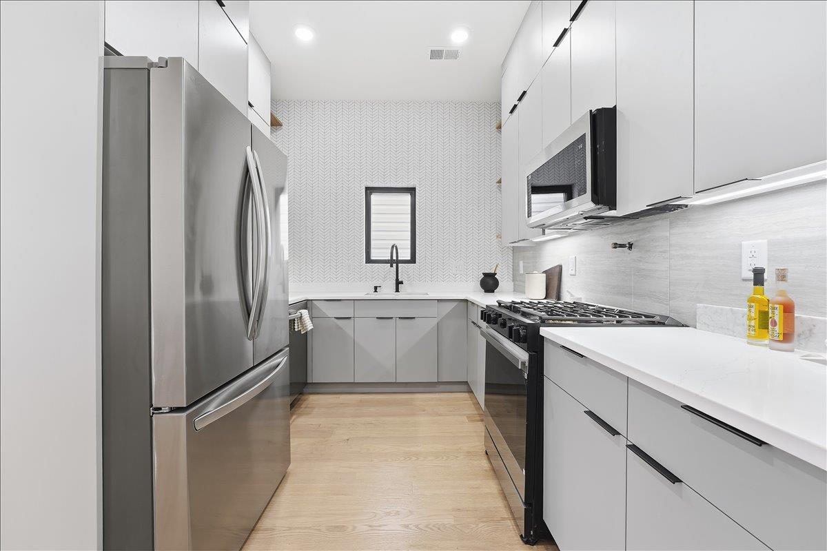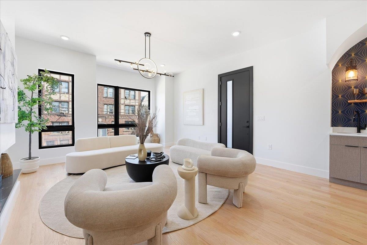 Beauty meets balance at this brand new residence in Jersey City’s West Side, where clean-lined contemporary interiors are enhanced by elegant arches, understated tones, and organic geometric accents. This two-story, 3 bedroom, 3 bath home with a private backyard pairs spacious proportions with warm, modern design throughout, offering elevated living that feels both refined and deeply livable. Built by one of Jersey City’s longtime development teams including an experienced designer, the residence reflects thoughtful execution and expert craftsmanship at every turn. Throughout the home, wide-plank light oak flooring, high ceilings, oversized windows, and carefully chosen lighting create a bright, composed atmosphere. Architectural choices like graceful archways, custom niche cutouts, and thoughtful built-ins add both character and utility, while modern fireplaces bring warmth and style to the living room as well as the primary ensuite. The kitchen brings elegance, anchored by waterfall white quartz countertops, a tile backsplash, custom gray cabinetry carried to the ceiling, exposed shelving, LG appliances, and matte black fixtures, including a pot filler. Entertaining unfolds effortlessly with the cerulean-toned dry bar with wine fridge set amid the open floorplan living space. The primary bedroom is finished with an Aspen-inspired wallpaper feature wall, built-in bedside sconces, a tray ceiling with cove lighting plus crystal chandelier, fireplace, and a finished walk-in closet. Bathrooms feel polished and serene, with tray ceiling detail, tile carried to the ceiling, glass showers, smart mirrors, LED-lit niches, and matte black fixtures that create a look both clean and relaxing. An additional garden-level ensuite bedroom adds flexibility to the layout, ideal for guests, a home office, or a more private retreat within the home. A rare added convenience, the home also includes non-tandem garage parking with a side-by-side EV charging stations. Set in Jersey City’s evolving West Side, this neighborhood offers residential tranquility with tree-lined streets and parks, as well as connection to NYC and surrounding community. Nearby, Lincoln Park offers 273 acres of green space, trails, recreation, and sports amenities, while neighborhood favorites like New Tavern, Snapdragon Café, Carmine's, and Pompei Pizza become everyday staples. Blocks to West Side Light Rail or MLK Light Rail stations with transfers to PATH and ferry, NYC commuting is a breeze.