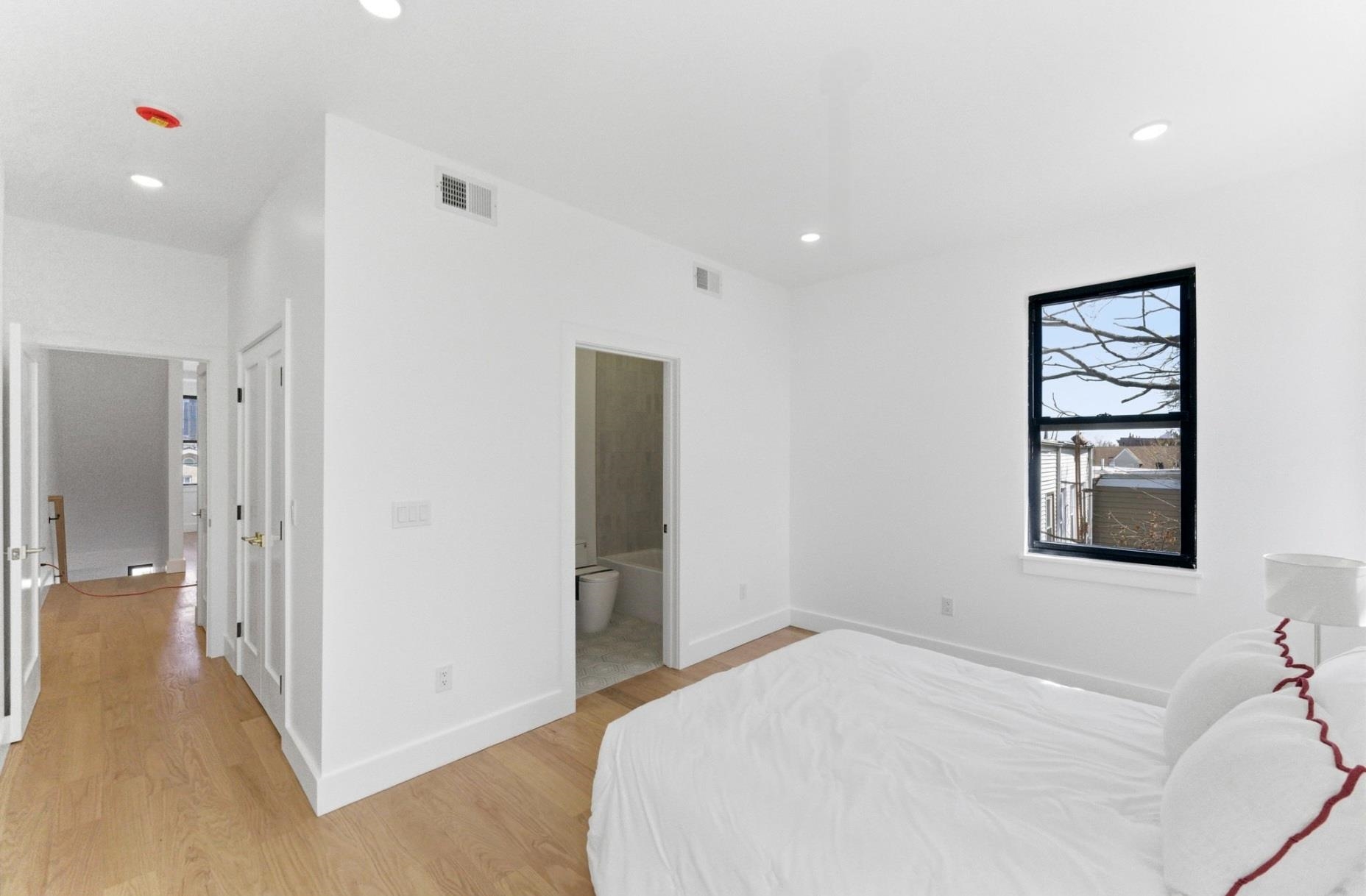 Unique find in the heart of Bergen-Lafayette! This fully gut-renovated, designer 3-floor condo blends modern luxury with timeless charm—everything is brand new from the studs up. Offering 3 levels of living space, this unique home features a private walk-out basement studio with its own kitchen, soaring ceilings, and flexible living space—perfect for guests, extended family, or work-from-home. The main level showcases an open-concept living, dining, and kitchen layout with high ceilings, abundant natural light, and a spacious bedroom with a full bathroom. Upstairs, enjoy a thoughtfully designed top floor with 2 bedrooms and 2 full bathrooms, including a serene primary suite with spa-like finishes. Located just moments from the Hudson-Bergen Light Rail, this home is a commuter’s dream with easy access to NYC, parks, restaurants, and the vibrant Bergen-Lafayette community.