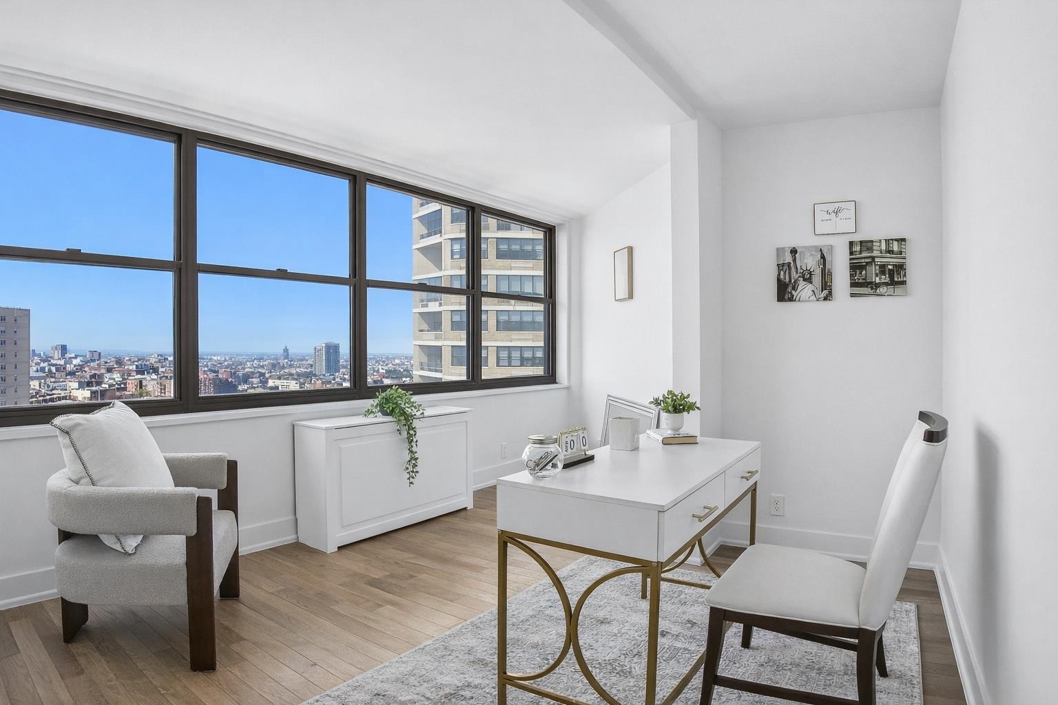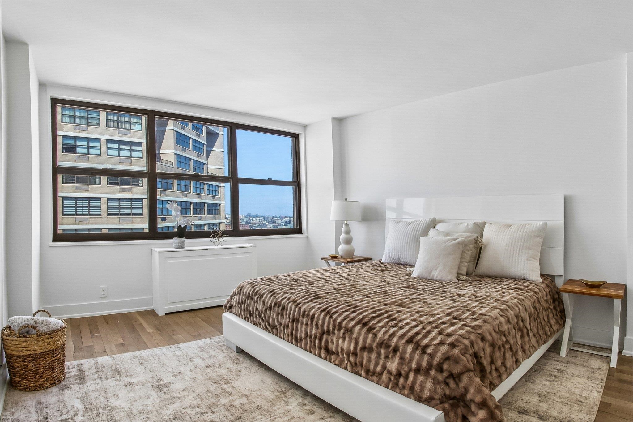 Perched high on the 38th floor, this spectacular ~1,550 sq ft residence delivers panoramic, water views and has undergone a months-long, no-expense-spared gut renovation. Designed to impress, the home showcases brand new hardwood floors, a sleek designer kitchen with premium stainless-steel appliances, custom-built closets, spa-quality bathrooms, new light fixtures, new PTAC units, new electrical panel, and pristine finishes throughout. The layout has been expertly reimagined to elevate both style and functionality, featuring = a separate dining room and a flexible office/den = ideal for modern living. This expansive home offers 2 full bedrooms, 2 full bathrooms, and a powder room, all wrapped in a sophisticated, turnkey package. Set within the iconic Galaxy Towers, residents enjoy a true resort-style lifestyle with 24-hour concierge and doorman, indoor and outdoor pools, a state-of-the-art fitness center, spa with sauna and steam rooms, tennis and pickleball courts, residents’ lounge, and on-site conveniences. A laundry room is conveniently located on the same floor, and parking and storage are available in the building, adding to the ease of living. Perfectly positioned along the Hudson River, the neighborhood offers peaceful living with easy access to Manhattan, making this an exceptional opportunity to own a fully renovated, high-floor home with unmatched views and space.