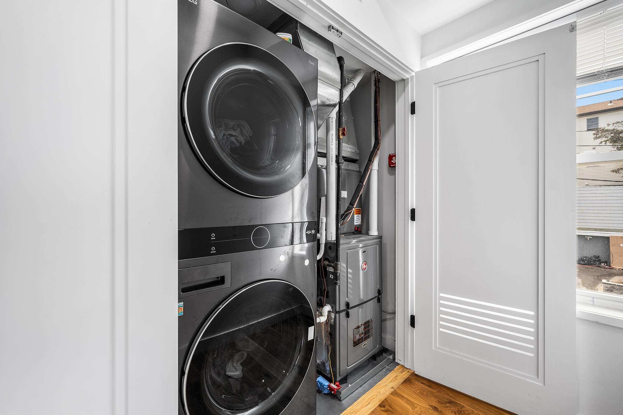 Not your average Jersey City Heights duplex! This standout 2023 newer construction offers a rare extra-wide footprint (3 ft wider than a typical new build) and over 2,400 sq ft of usable living space. Complete with non-tandem garage parking and multiple private outdoor areas, it checks every box for what matters most to today’s buyer. Positioned on a corner lot, this home is flooded with natural light thanks to oversized windows from multiple exposures. Wide-plank oak floors run throughout, leading to a sleek, modern kitchen featuring two-tone cabinetry, quartz countertops, and LG black stainless steel smart appliances for a new home feel without the price tag. The oversized primary suite is conveniently located on the main level with no stairs required and includes a spacious walk-in closet, private terrace, and a beautifully finished ensuite bath with double vanity and glass-enclosed shower. Upstairs, 3 generously sized bedrooms offer large closets along with a full bath and an additional terrace shared by the second and third bedrooms. Enjoy a large, private backyard with a newly installed fence for the ultimate privacy while relaxing or entertaining. Situated on Terrace Avenue in Jersey City’s Western Slope, this location offers the best of both worlds: a quiet, residential vibe just minutes from the energy and connectivity of Journal Square.