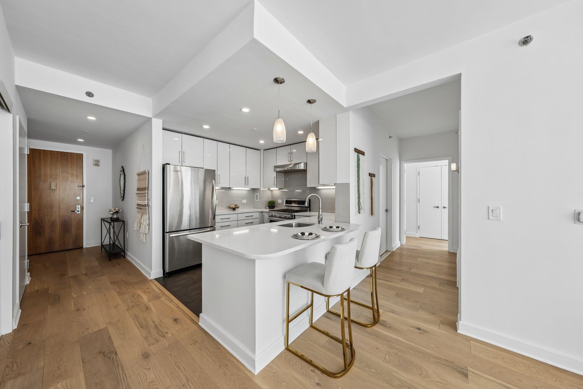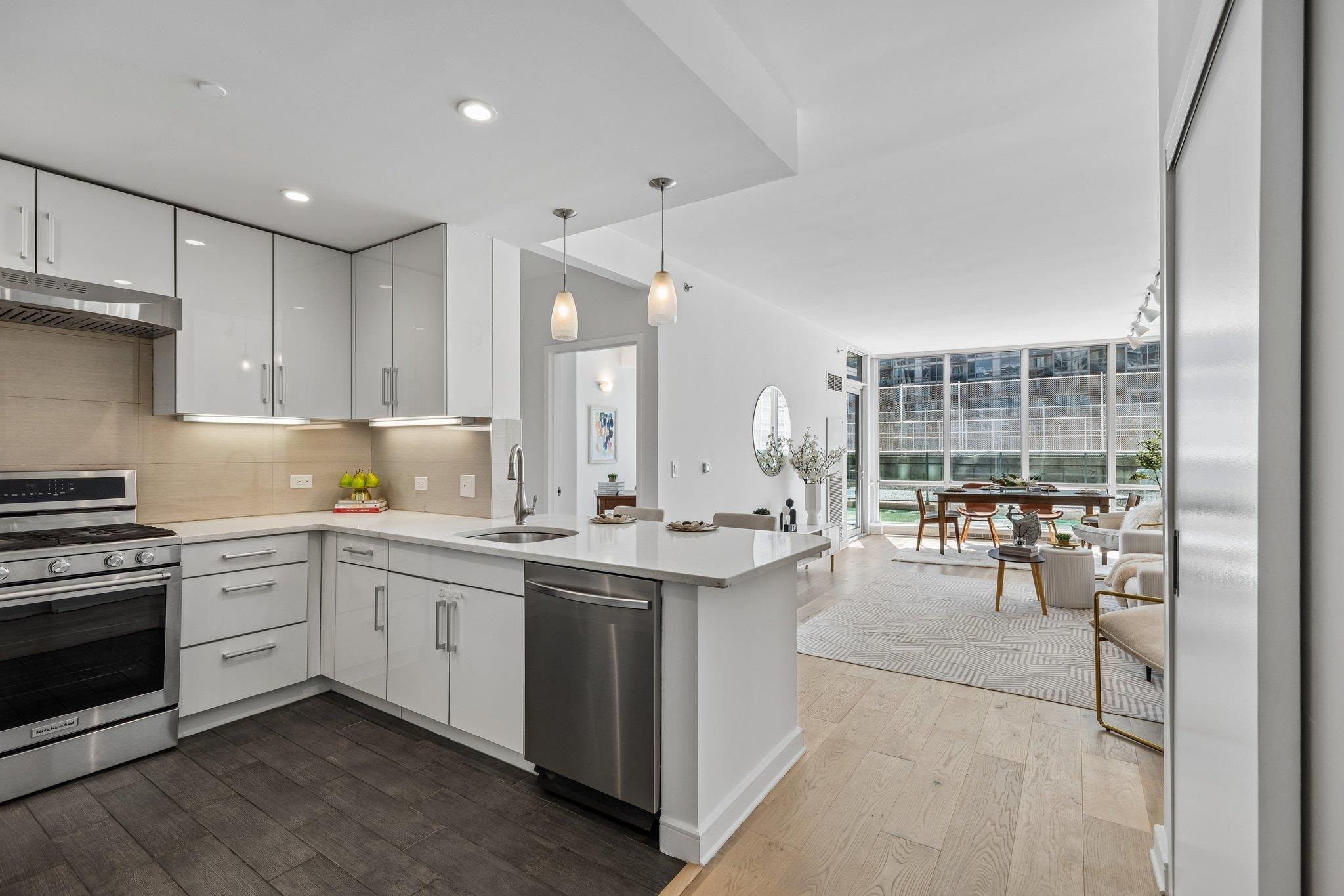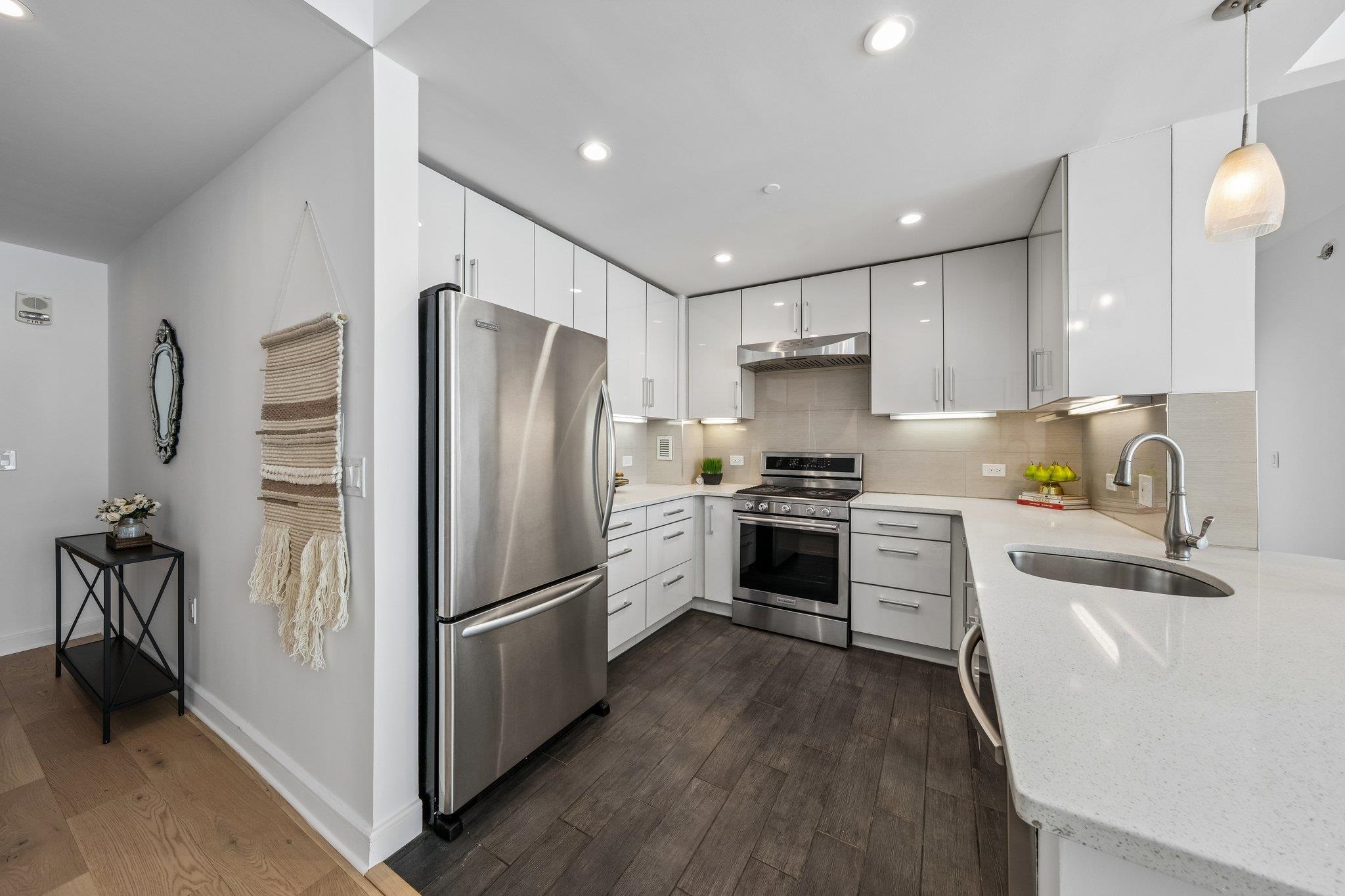 Experience modern sophistication in this sun-drenched 1,270 sq. ft. residence at the Shore Club, one of Newport’s most coveted luxury condominiums. The centerpiece of this home is a massive, nearly 600 sq. ft. private terrace—a rare urban oasis perfectly suited for grand-scale entertainment, a safe outdoor play area for kids, and relaxed family gatherings. In this unique space, barbecuing is permitted (electric/non-open flame) during designated hours, making it the ultimate setting for summer hosting. The interior has been meticulously renovated with brand-new premium white oak wide-plank flooring and freshly smoothed ceilings throughout. The fully upgraded gourmet kitchen is a showstopper, featuring a sleek U-shaped layout with white lacquer cabinetry, pristine white quartz countertops, a KitchenAid gas range (2021), and a newly upgraded Samsung dishwasher (2025). This home features a seamless open-concept design with South and East exposures, framed by floor-to-ceiling windows that flood the space with natural light and showcase a striking NYC skyline backdrop. The primary suite serves as a serene retreat, offering breathtaking Lower Manhattan and Freedom Tower views, a spacious walk-in closet plus an additional closet, and an en-suite bathroom with a double vanity, soaking tub, and walk-in shower. The guest bedroom is equally inviting, with generous proportions and a layout versatile enough to accommodate a queen-size bed. Additional conveniences include an in-unit Bosch washer/dryer (2021). Situated in a neighborhood designed for families and professionals alike, you are steps away from Newport Green Park, summer movie nights, and playgrounds. For families, Bright Horizons daycare is located just across the street, while Stevens Cooperative School is within easy walking distance. Commuting is a breeze with quick access to the Hoboken and Newport PATH stations, Ferry, and Light Rail. The Shore Club’s attentive staff ensures a worry-free living experience with 24-hour concierge, fitness center, sauna, and a rooftop deck. With on-site garage parking available and some of the lowest HOA fees on the waterfront, this residence offers outstanding value and the very best of Hudson River living. Schedule your private viewing today!