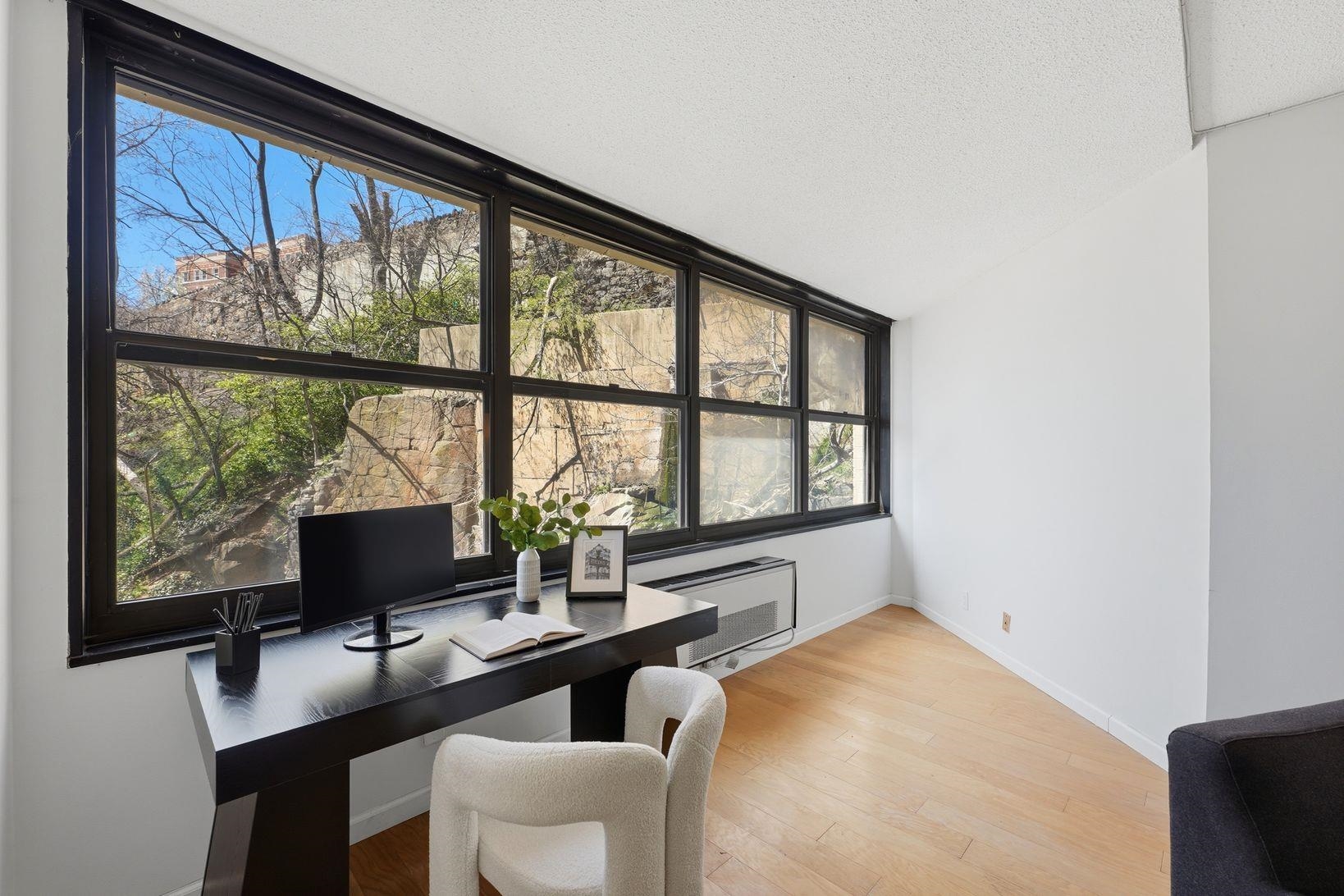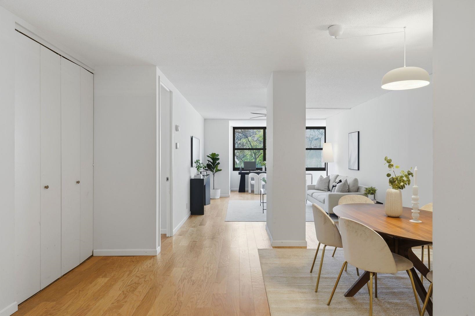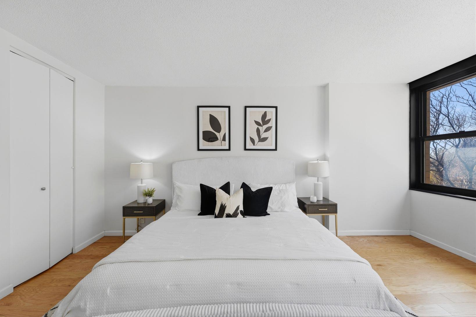 Welcome to this exceptional corner residence at Galaxy Towers, featuring the largest one-bedroom floor plan in the Galaxy with an expansive 1,069 sq ft of beautifully designed living space. This sun-filled home offers a recently renovated kitchen that opens seamlessly into a generous open-concept living and dining area, ideal for both everyday living and entertaining. Enjoy new hardwood floors throughout, abundant natural light from its corner exposure, and outstanding storage with four closets, including a spacious walk-in closet in the bedroom. The thoughtfully designed layout also includes 1.5 bathrooms, providing added convenience for guests. Residents of Galaxy Towers enjoy a full-service lifestyle with amenities that include 24-hour concierge/doorman, indoor and outdoor pools, fitness center, sauna/spa, tennis courts, resident lounge, and on-site parking, all set within a beautifully maintained community with easy access to NYC. A rare opportunity to own one of the most desirable one-bedroom layouts in Galaxy Towers—offering both scale, comfort, and resort-style living in a prime location.