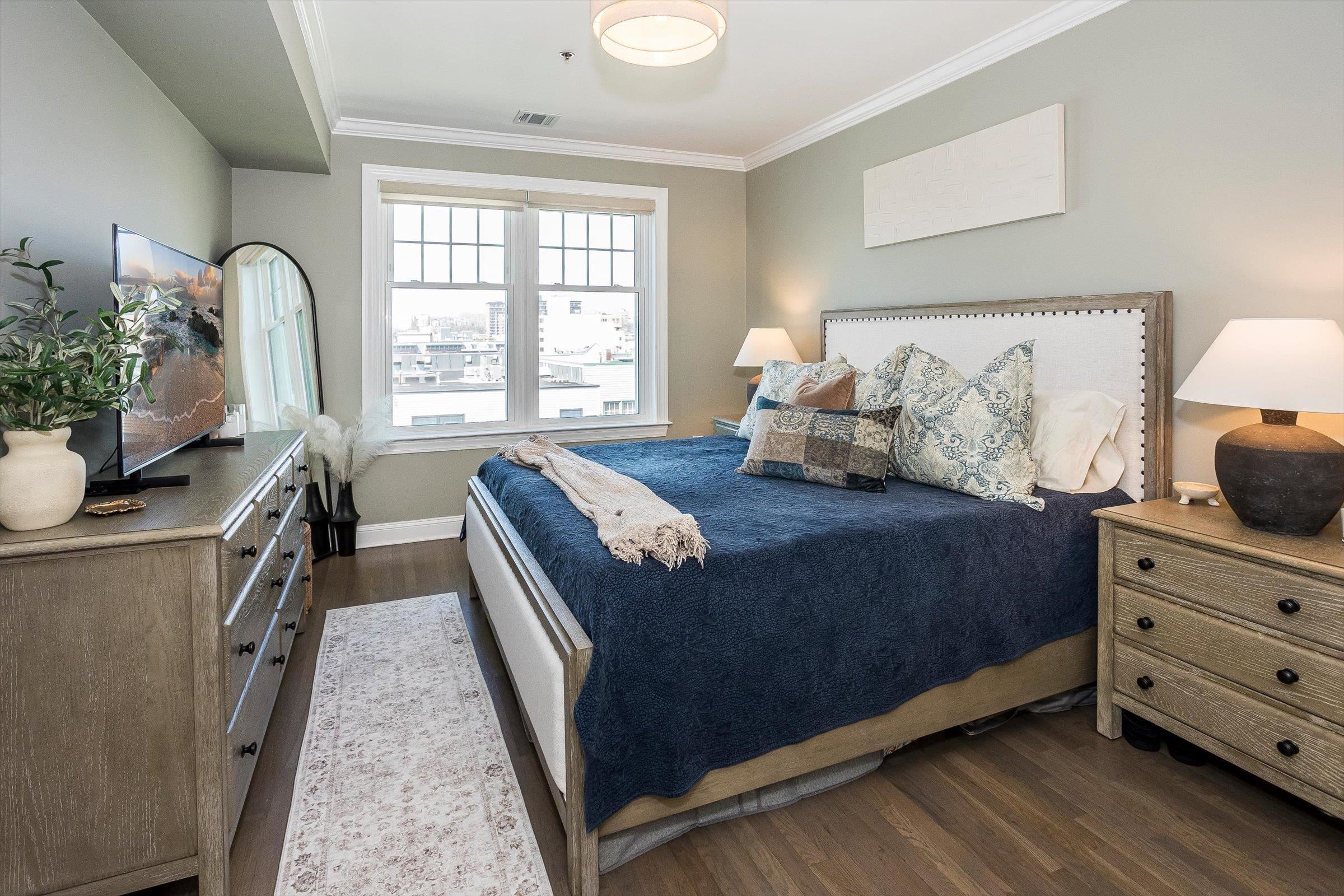 Experience elevated living in this bright and airy penthouse unit featuring generous living space, and abundant natural light. From the moment you step inside, you’re welcomed by a fresh, modern aesthetic and a seamless, open flow throughout. Gleaming hardwood floors guide you into a beautifully updated kitchen complete with quartz countertops, new appliances, a breakfast bar, and a stackable washer/dryer discreetly tucked away within custom cabinetry. The spacious living and dining areas are perfect for everyday living and entertaining. The primary bedroom features a remodeled en-suite bathroom and a large organized closet. A junior suite features a brand-new, private bathroom—ideal for accommodating guests in comfort and style. Additional highlights include ample closet space and new windows. This beautifully appointed condo is located in a boutique elevator building and offers a recently installed elevator, the highly desirable convenience of a deeded parking space in the attached garage, Swiftlane security, 24-hour surveillance, and ample storage room including dedicated bike storage. Ideally situated at 82 Clinton, you’ll enjoy easy access to the PATH, Ferry, NYC Bus, and an array of popular shops, top-rated restaurants, and lively nightlife just moments away. Don’t miss your chance to own this exceptional Hoboken residence!