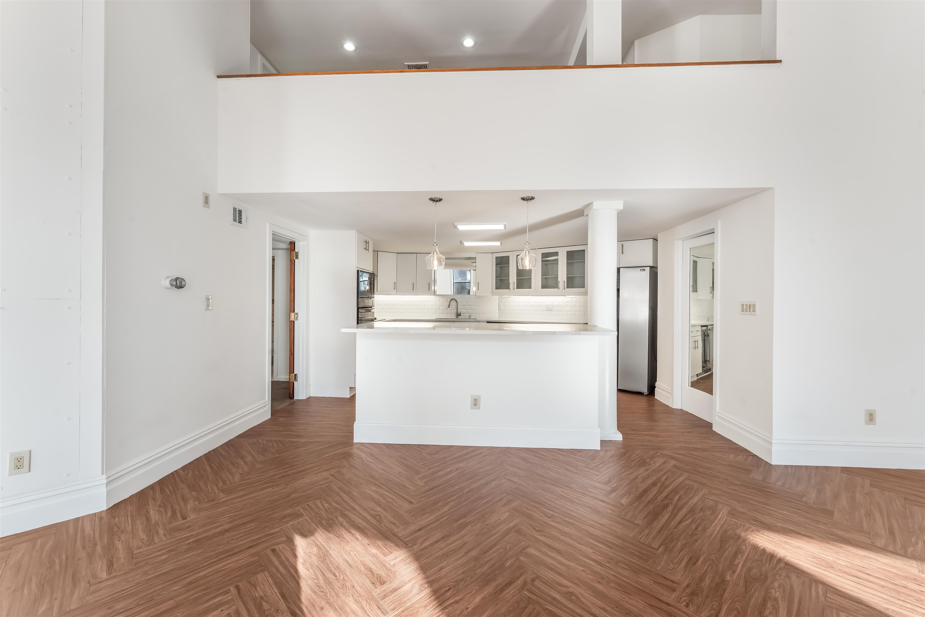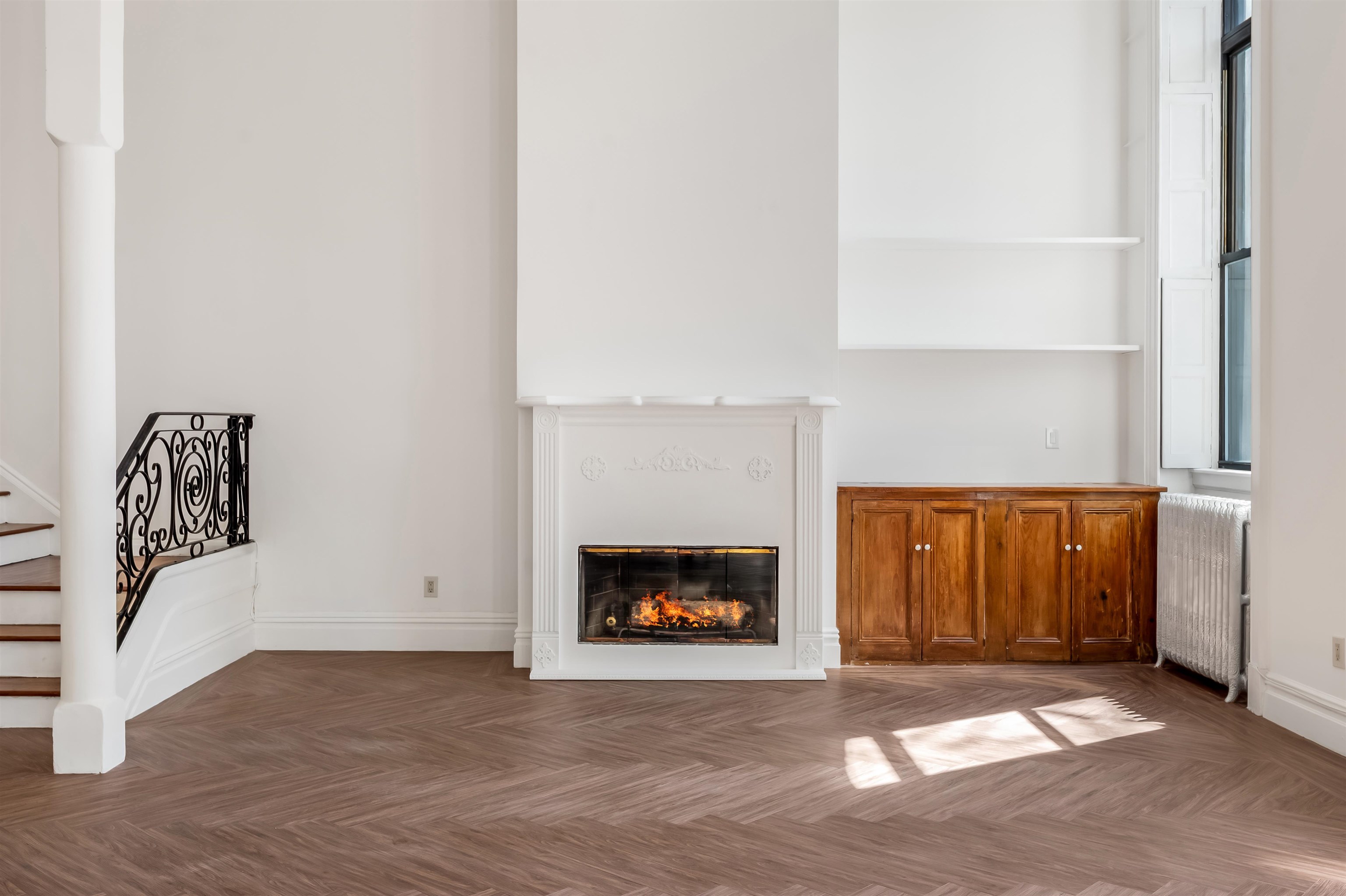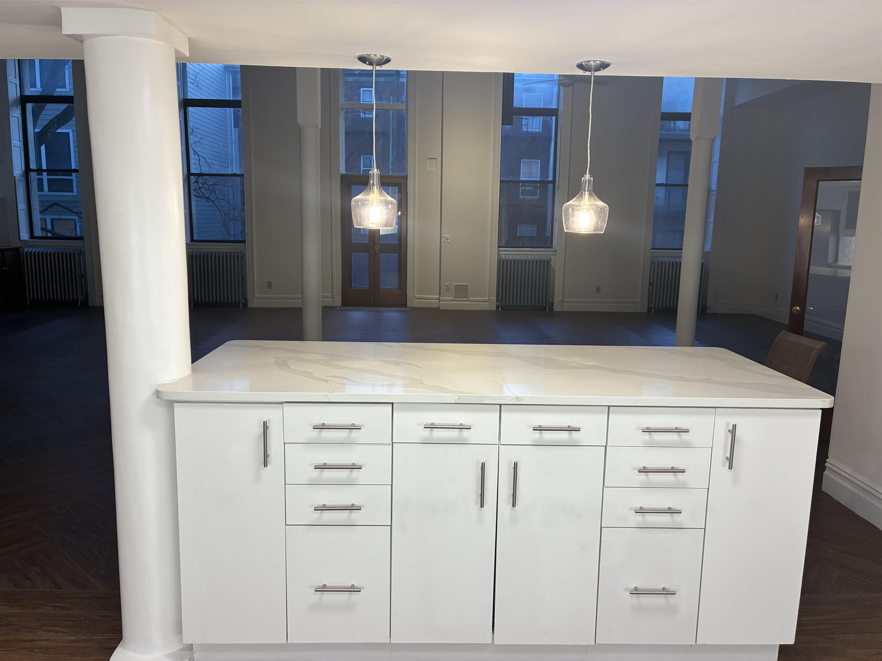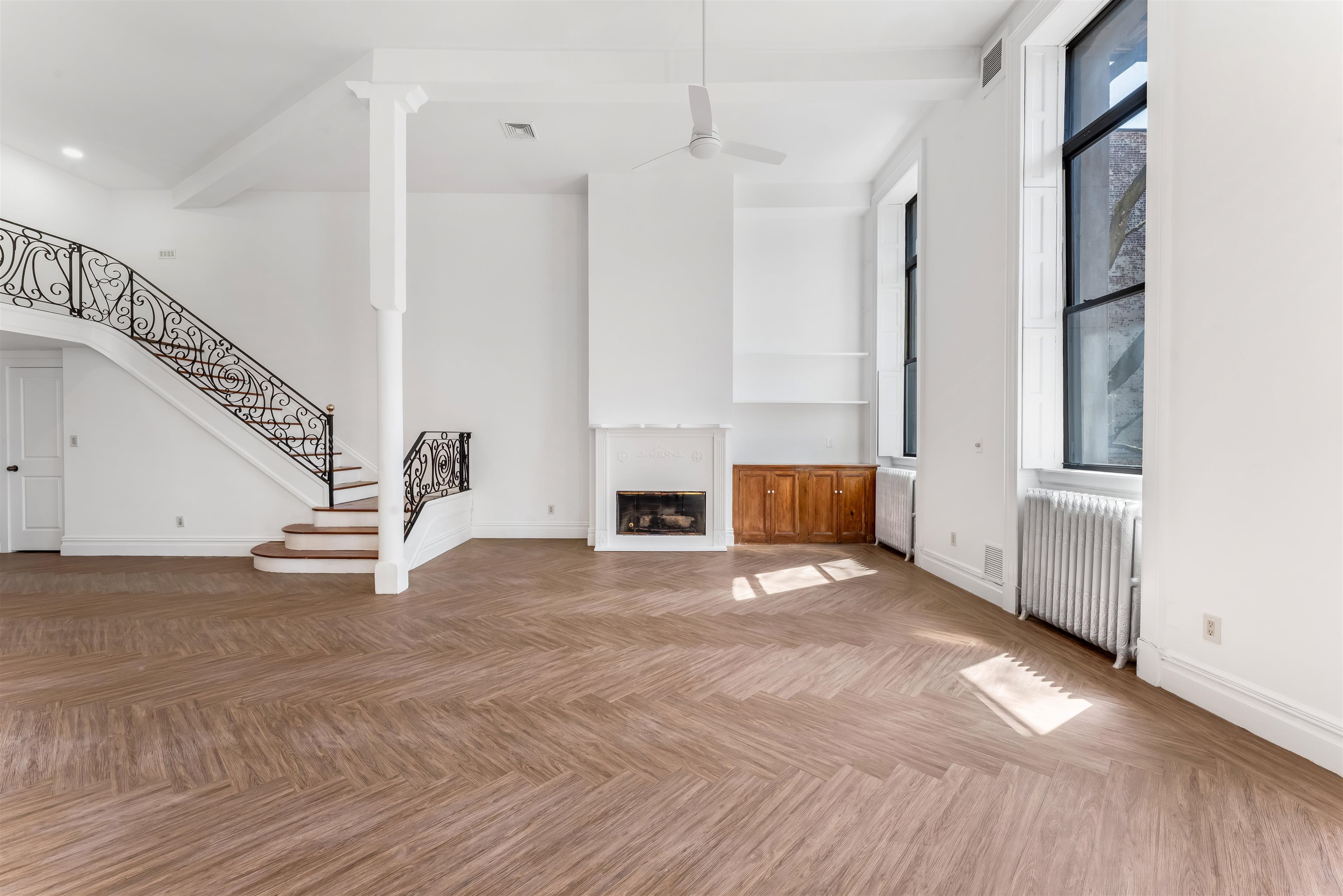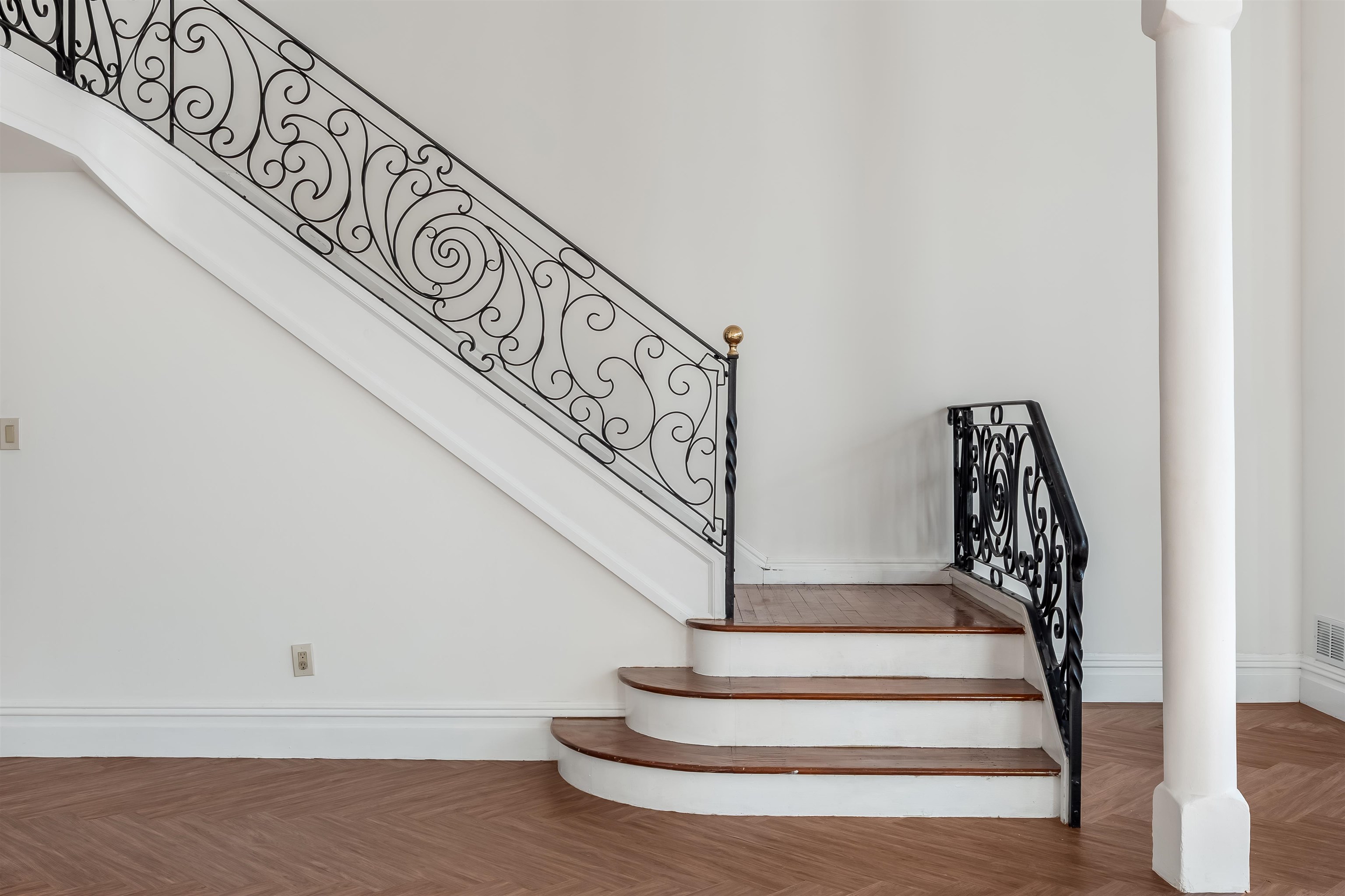 Wells Fargo is an iconic landmark building that used to be a former horse and carriage stables, built in 1890 for the namesake stagecoach empire. The Wells Fargo Loft Condominiums is located at the Heart of Hamilton Park, Historic District. The ceiling soars 15' in height. There are five oversized windows facing south, receiving abundant natural and consistent exposure to sunlight throughout the day. The bathroom is newly renovated! Two large French glass doors lead to 150 sqft private deck. There is also a cozy fireplace installed. Antique wooden shutters, dramatic stairwell with gorgeous Beaux Arts railing, large retro ceiling fans, Gas Log Fireplace, recessed and track lighting. Additionally, there are custom trim moldings and timeless architectural details. The hallways have been remodeled as well. There is a 24-hour virtual doorman service. The Hamilton Park neighborhood is filled with tree lined streets, townhouses, cafes, restaurants, and schools. It's an easy commute to NYC.