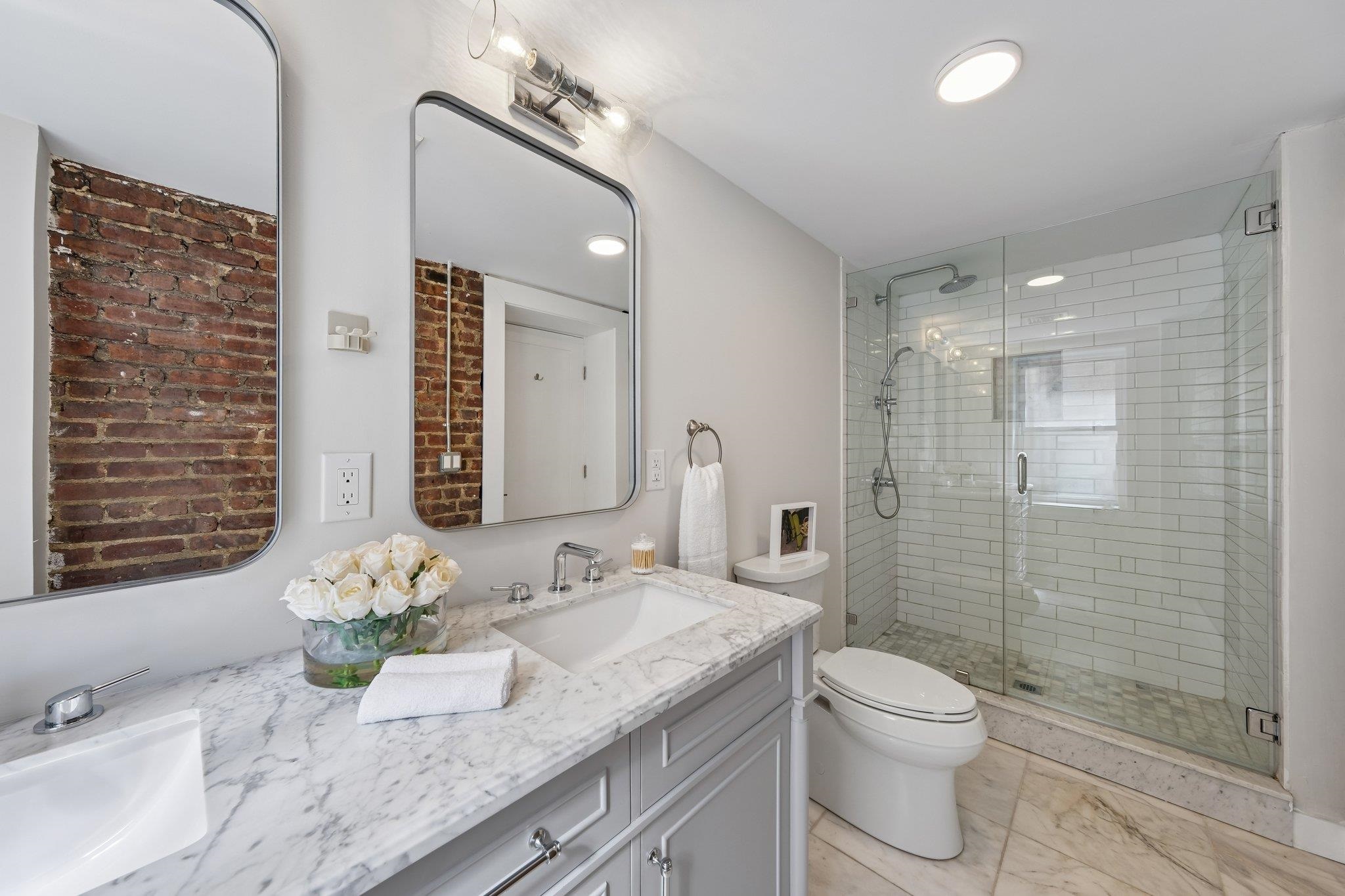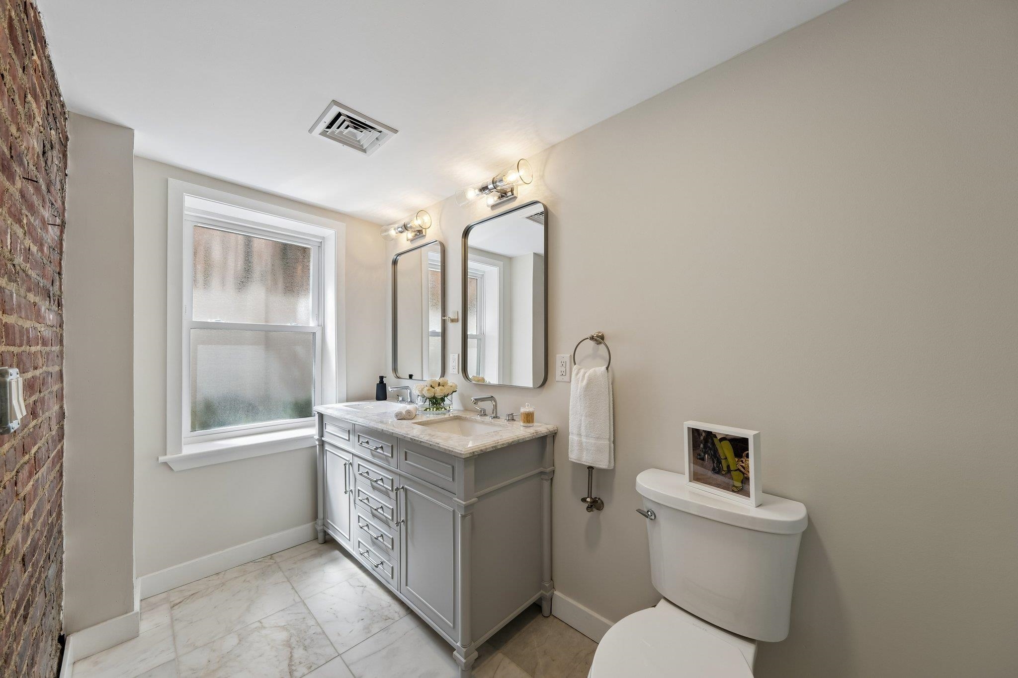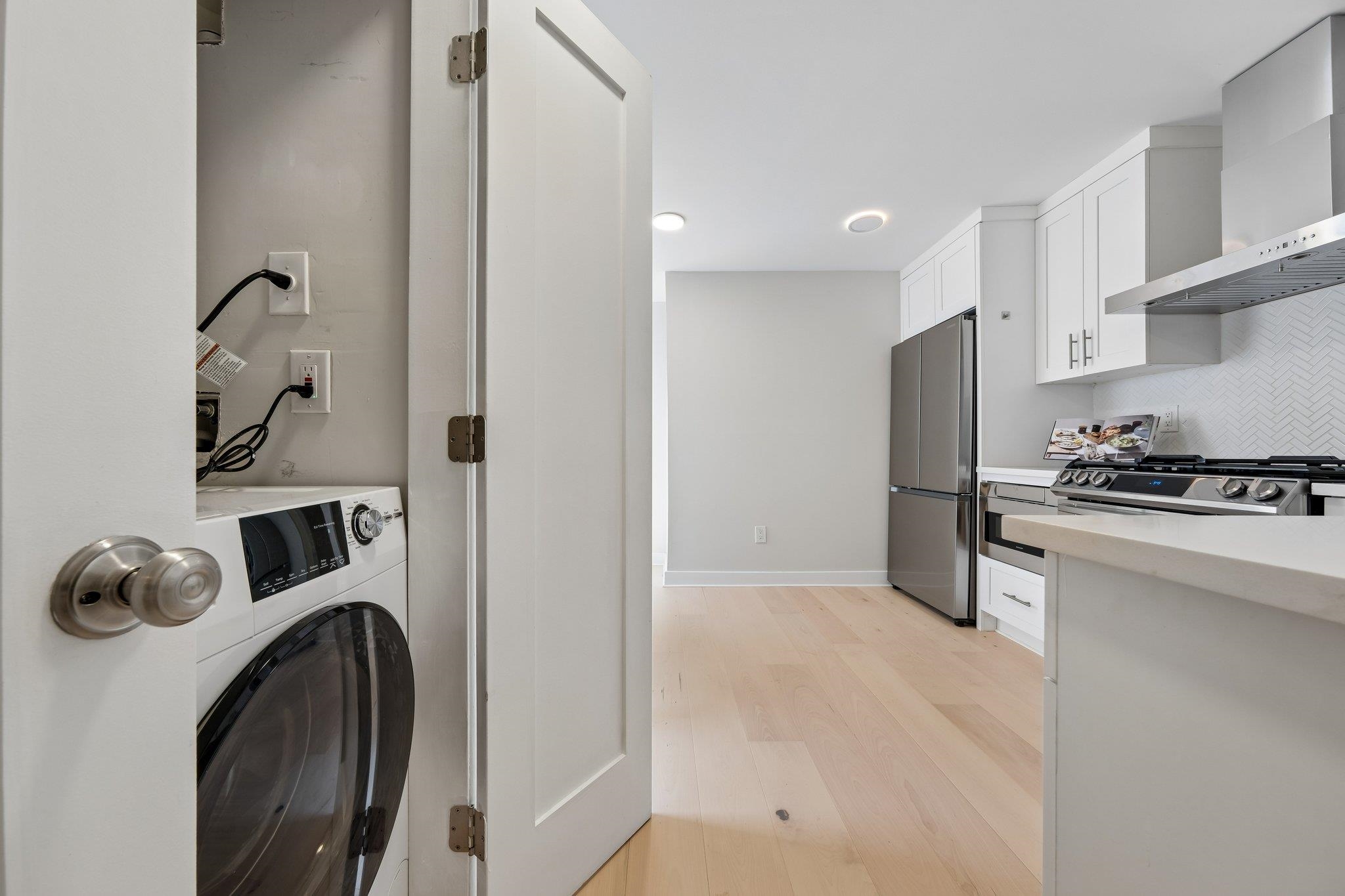 Downtown Jersey City | Boutique Living with Private Outdoor Space A rare offering in the heart of Downtown Jersey City, this impeccably designed 2-bedroom, 2-bath residence spanning 1,113 sq. ft. seamlessly blends modern luxury with timeless character—complete with private outdoor space. Flooded with natural light through oversized windows, the home features a sleek open-concept layout complemented by 6†wide-plank hardwood flooring, solid wood interior doors, recessed lighting, and central air. Every detail has been thoughtfully curated, with all-new utilities, plumbing, and electrical systems delivering turnkey peace of mind. The chef’s kitchen is both striking and functional, appointed with custom 42†cabinetry, thick white quartz countertops, a herringbone tile backsplash, premium stainless steel appliances, and a statement hood—perfect for entertaining or everyday living. Designed for privacy, the two bedrooms are positioned on opposite ends of the home. The primary suite offers a custom closet and a spa-inspired bath featuring a preserved exposed brick accent wall, double marble vanity, glass-enclosed shower, and Grohe fixtures. The second bedroom is generously sized with excellent closet space, while the secondary bath showcases Kohler fixtures and a marble-topped vanity. Additional highlights include in-unit washer/dryer and a tankless hot water system. Step outside to your private outdoor retreat, ideal for morning coffee or evening gatherings. Perfectly positioned just moments from Van Vorst Park, the Grove Street PATH (7 minutes), and a quick 15-minute commute to Manhattan, this home places you at the center of Jersey City’s most vibrant dining, shopping, and lifestyle destinations—including Whole Foods. Also conveniently located near the Jersey Avenue Light Rail and Liberty State Park. A refined urban residence offering the best of boutique living and downtown energy.