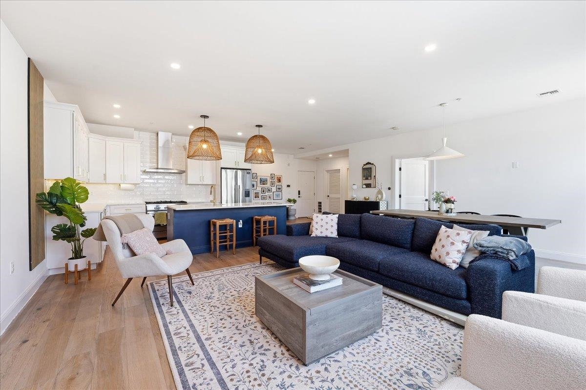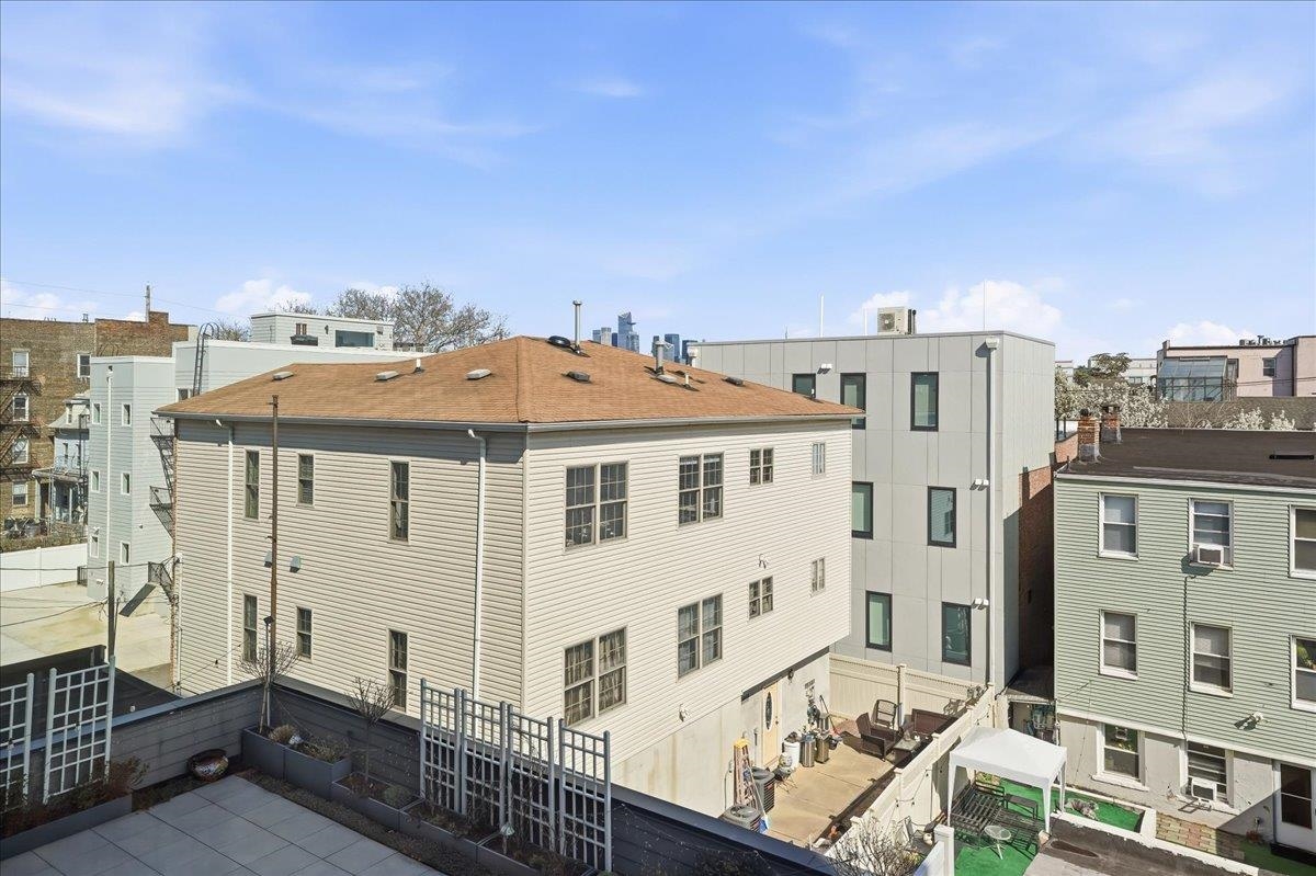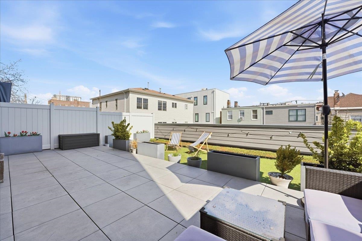 Welcome to this sophisticated home in one of Jersey City Heights’ most sought-after boutique buildings. Spanning over 2,300 square feet, this beautifully designed residence offers the scale of a townhouse with the ease of modern condominium living. Flooded with natural light, the expansive open-concept living and formal dining space flows seamlessly into a sleek chef’s kitchen appointed with premium finishes and contemporary design including Fisher Paykel appliances, quartz countertops and custom backsplash.Three proportioned bedrooms with Manhattan skyline views , including two primary suites, provide comfort and privacy, creating a refined retreat from city life. The large private outdoor space serves as a tranquil retreat with plenty of space for entertaining and relaxing. One deeded parking space, elevator, and bike storage complete this home. Set along vibrant Palisade Avenue, you’re moments from the Heights’ beloved cafés, fitness studios, restaurants, parks, bus, Lincoln Tunnel, and the Congress Street Light Rail, offering effortless access to NYC, 5 min to Hoboken via elevator and short distance to Downtown Jersey City.