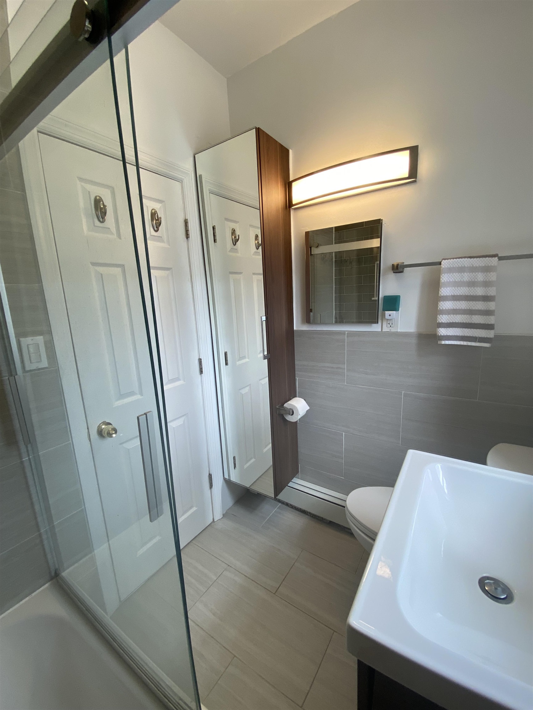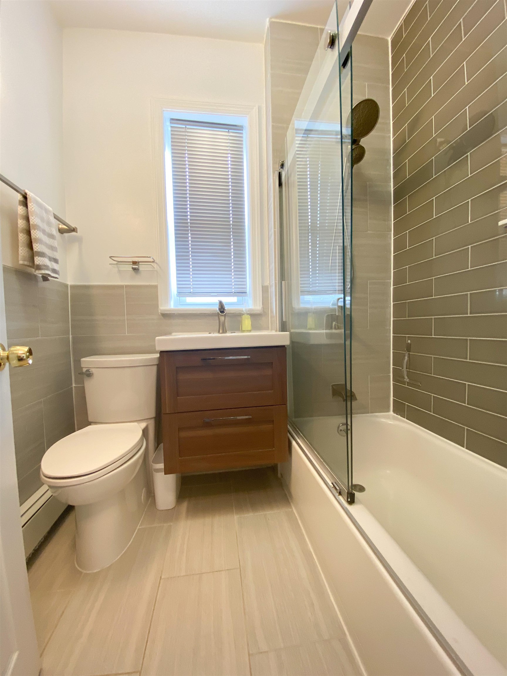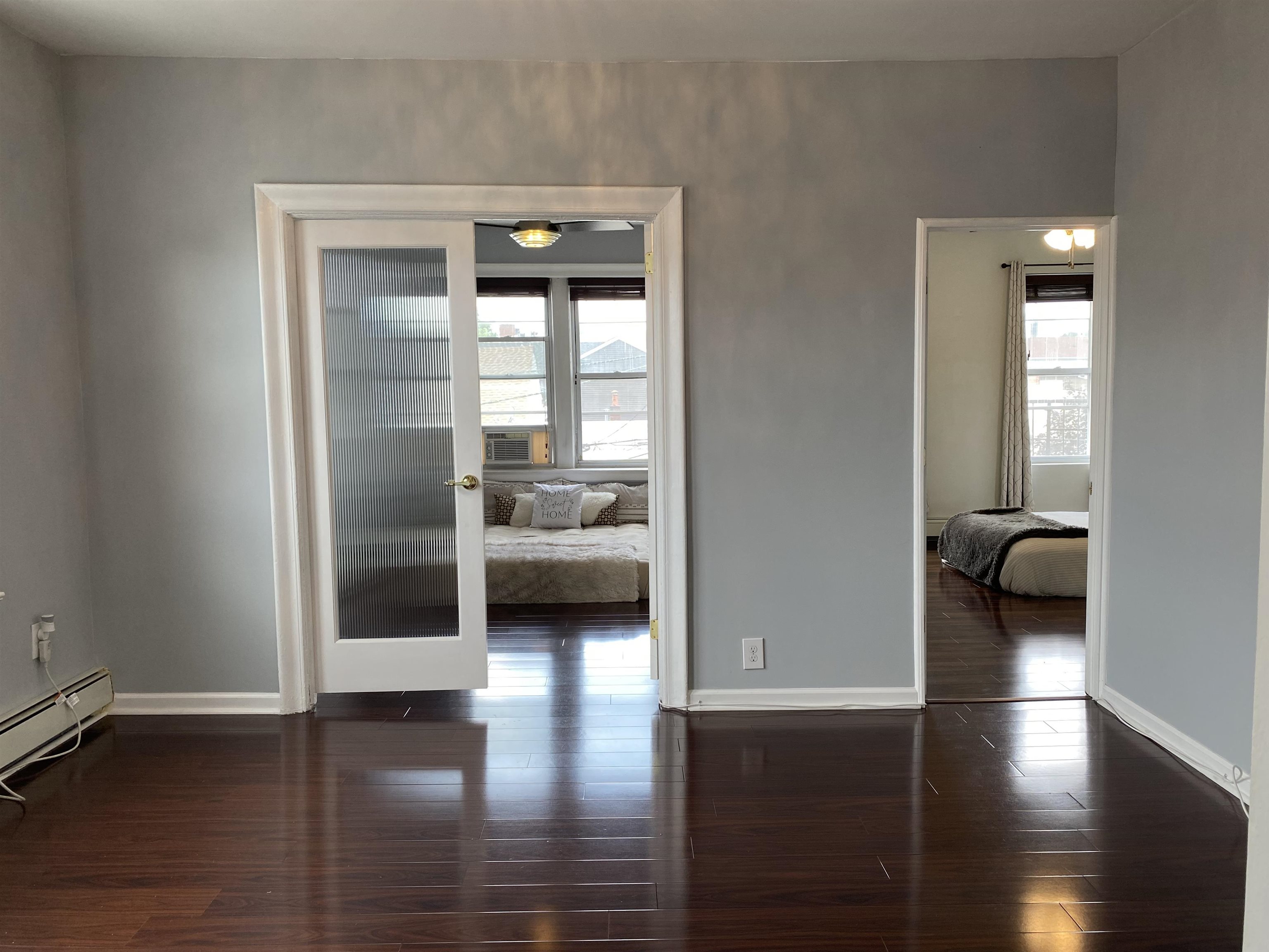 AVAILABLE JUNE 1. Pet-friendly, beautifully renovated 2BD/1Bath unit in a PRIME location in Jersey City Heights between Palisade and Central. Flooded with natural light from all rooms of this top-floor, corner unit. Modern eat-in kitchen with stainless steel appliances, dishwasher, fridge, built-in microwave, lots of counter/prep-space and ample storage. Updated bathroom has extra storage with modern fixtures, soaking tub/shower and spa-like tile. Open, sunny living room will fit all your furniture in multiple configurations. Double French doors lead to the first bedroom, and the king-sized, 2nd bedroom boasts a small walk-in closet. Modern, dark hardwood floors throughout and premium wood-look blinds, plus plenty of closets and storage, including bike storage in building. Window ACs included. Top floor unit means no neighbors above for a quiet sanctuary. Shared laundry room in building, generous on-street parking on a quiet, tree-lined street. In the heart of all that bustling Jersey City Heights has to offer! Close to all public transportation making commuting to NYC, Jersey City Downtown, and Hoboken a breeze! Minutes to Riverview Park, farmer’s markets, public schools, and all the amazing shops, restaurants, pubs, and coffee shops that the Heights are known for! Pets welcome with no additional pet fee, this unit will not last! Schedule your showing today! Currently occupied so 24-hr notice required before showing appointments. (Pics from prior tenant may look a little different with new tenant's furniture.) $2550/mo Rent, Security Deposit-1.5X Rent