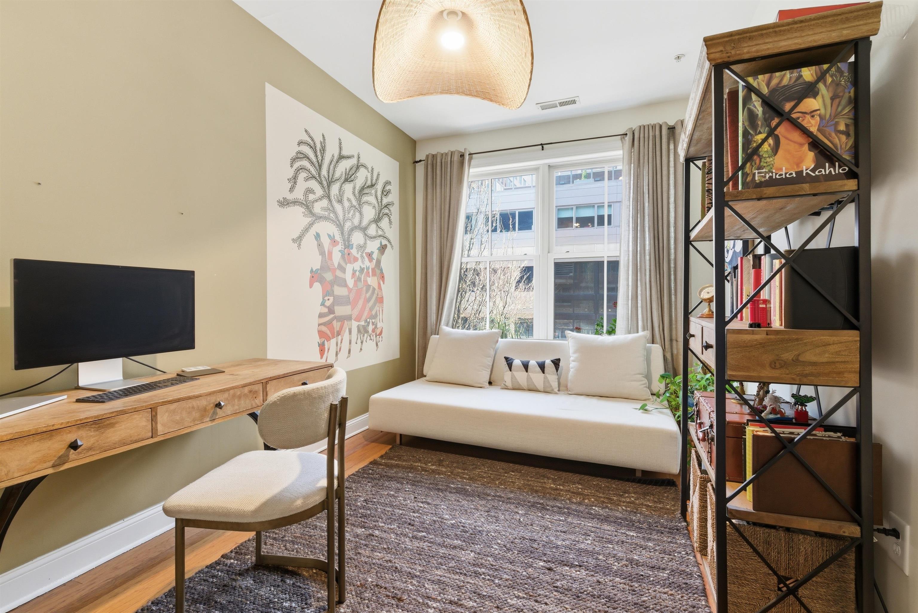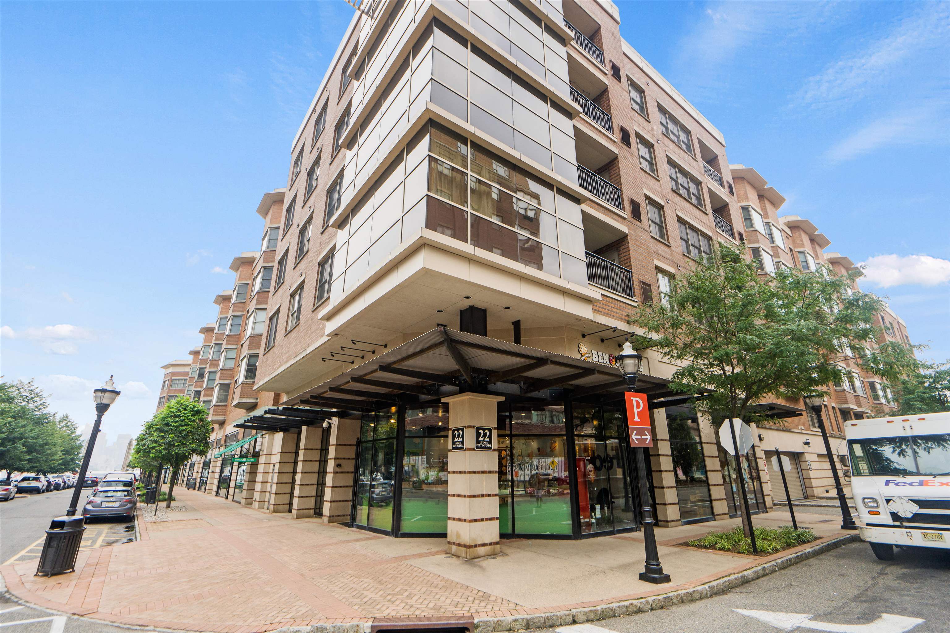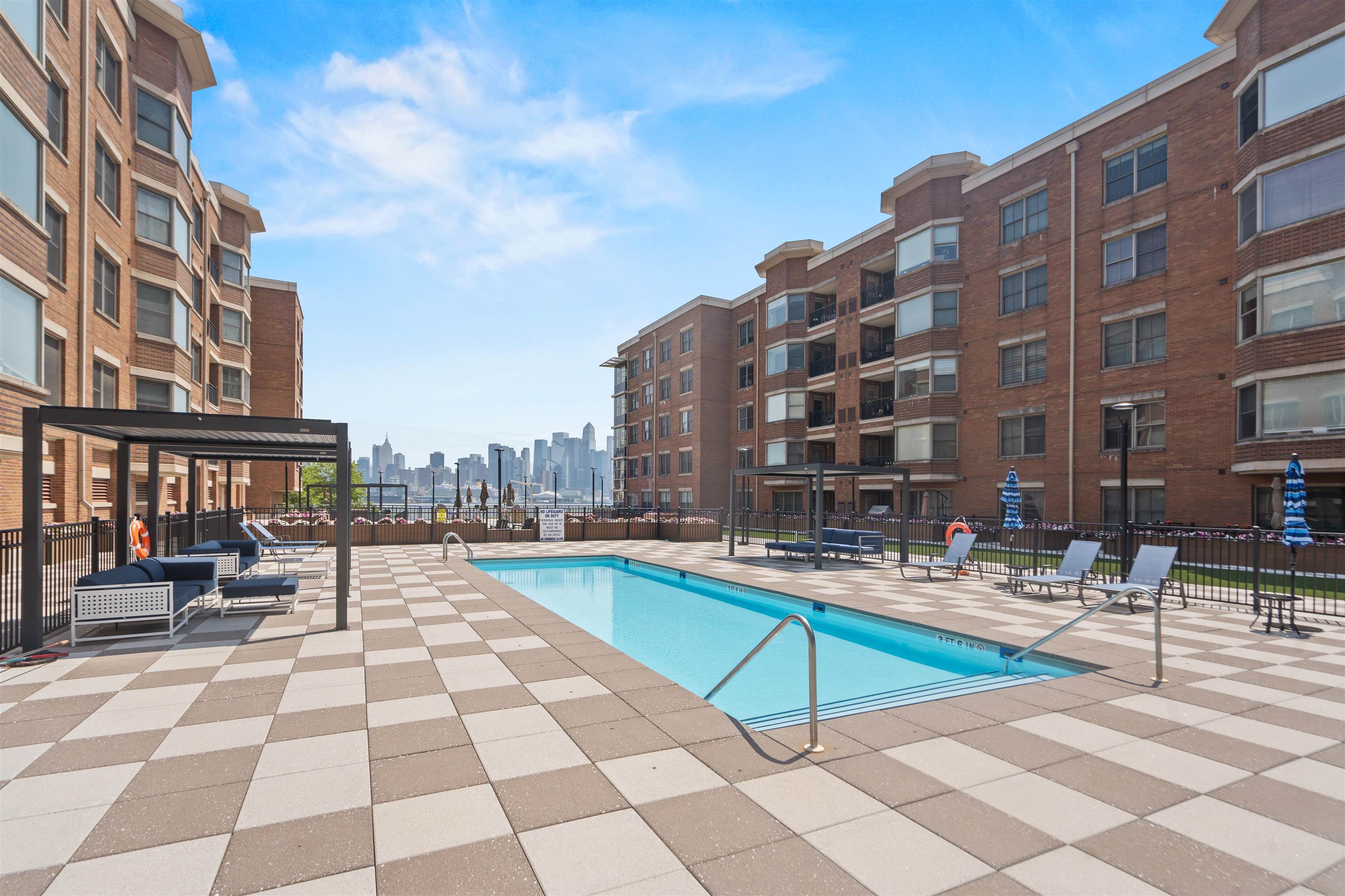 Welcome to 20 Ave at Port Imperial—a bright and spacious 2-bedroom, 1-bath home offering 1,090 sq ft of comfortable living. This west-facing unit features original hardwood floors, a kitchen with stainless steel appliances, granite countertops, and dishwasher, plus the convenience of an in-unit washer/dryer. Enjoy added value with custom built-in closets (1 year old) and excellent storage in the second bedroom. Relax on your private balcony or take advantage of full-service amenities including doorman, pool, gym, community room, and elevator. 1 parking space included. Located on a quiet street just moments from shops, dining, transit, and the scenic Hudson River Waterfront Walkway—perfect for walking, biking, and enjoying NYC views