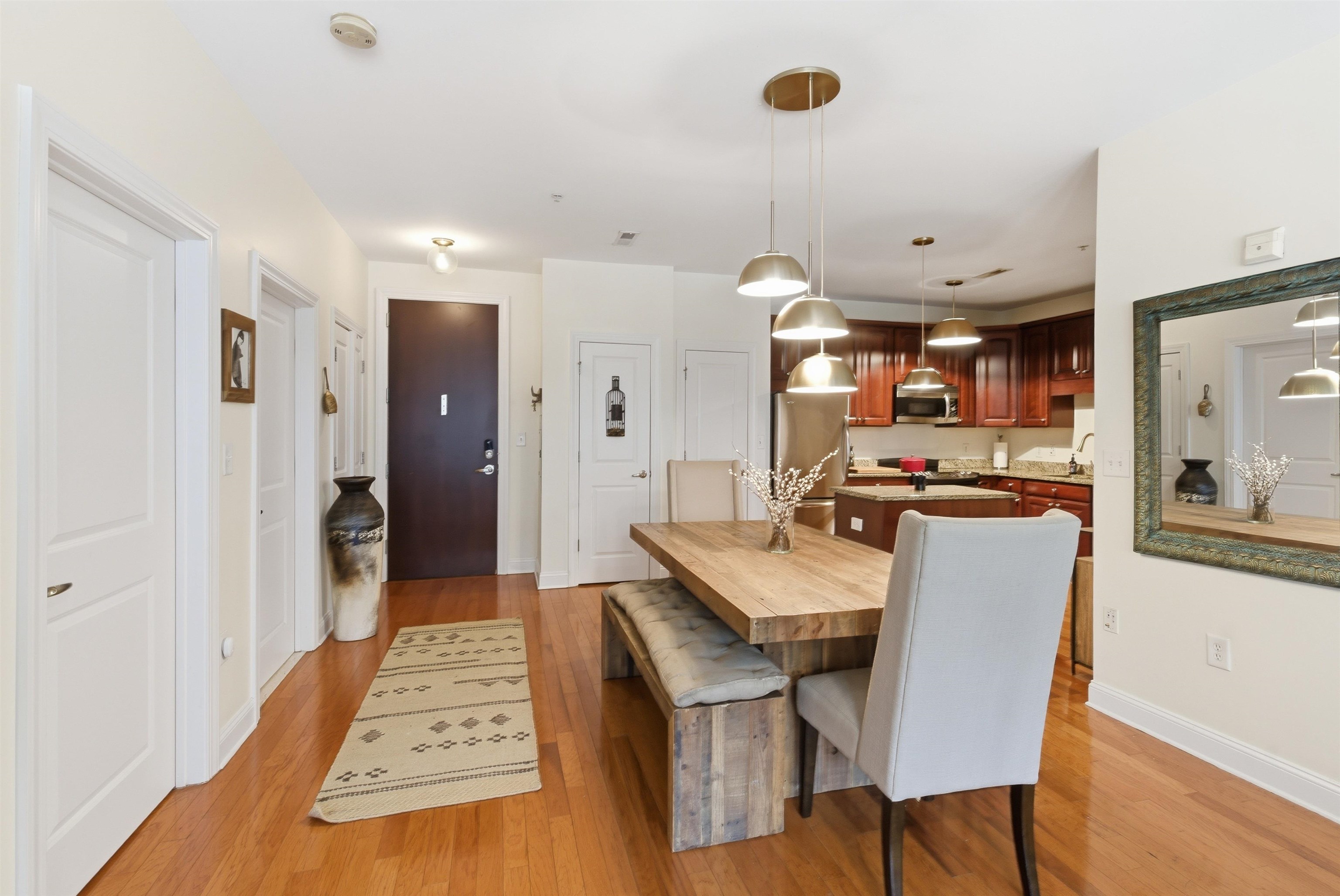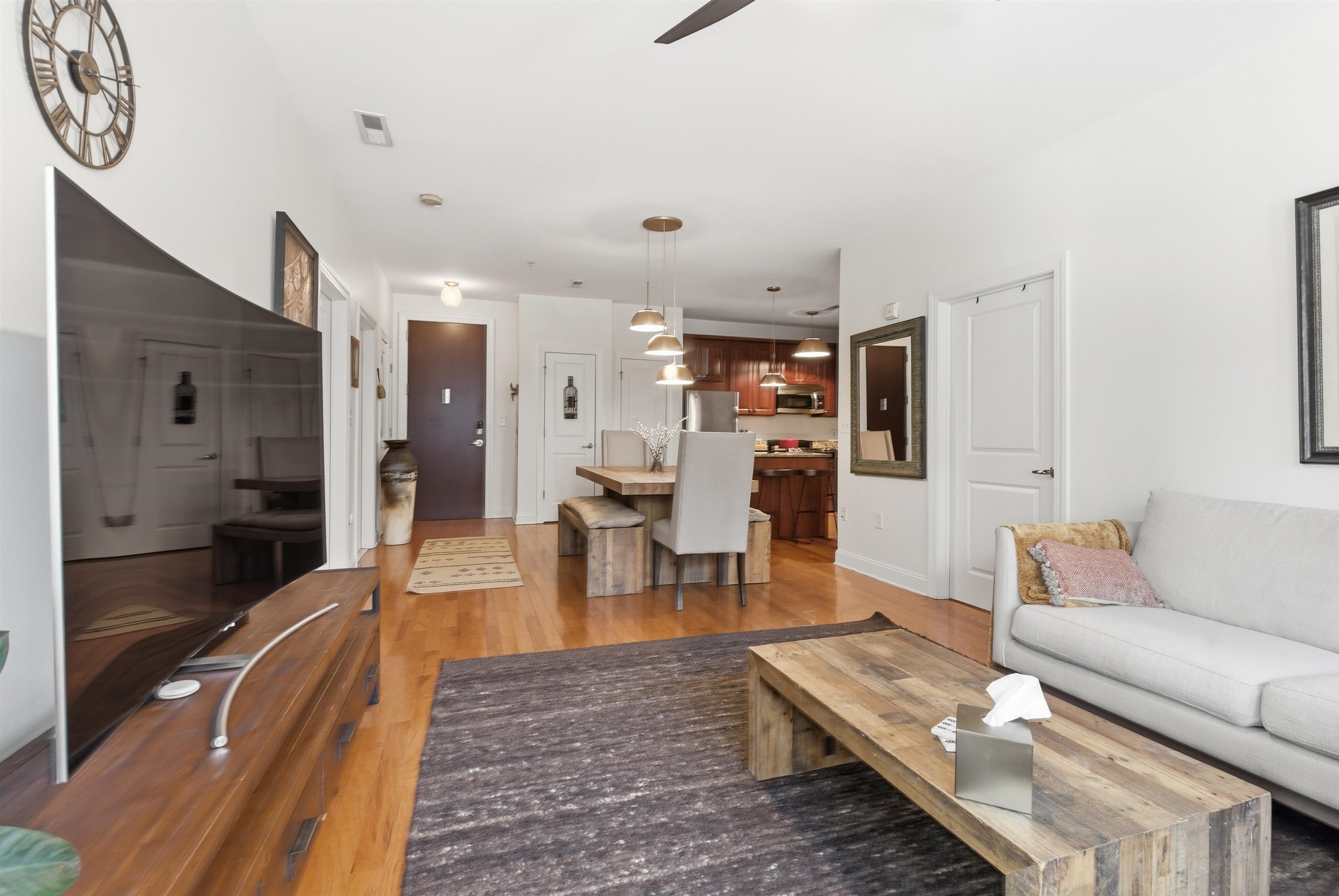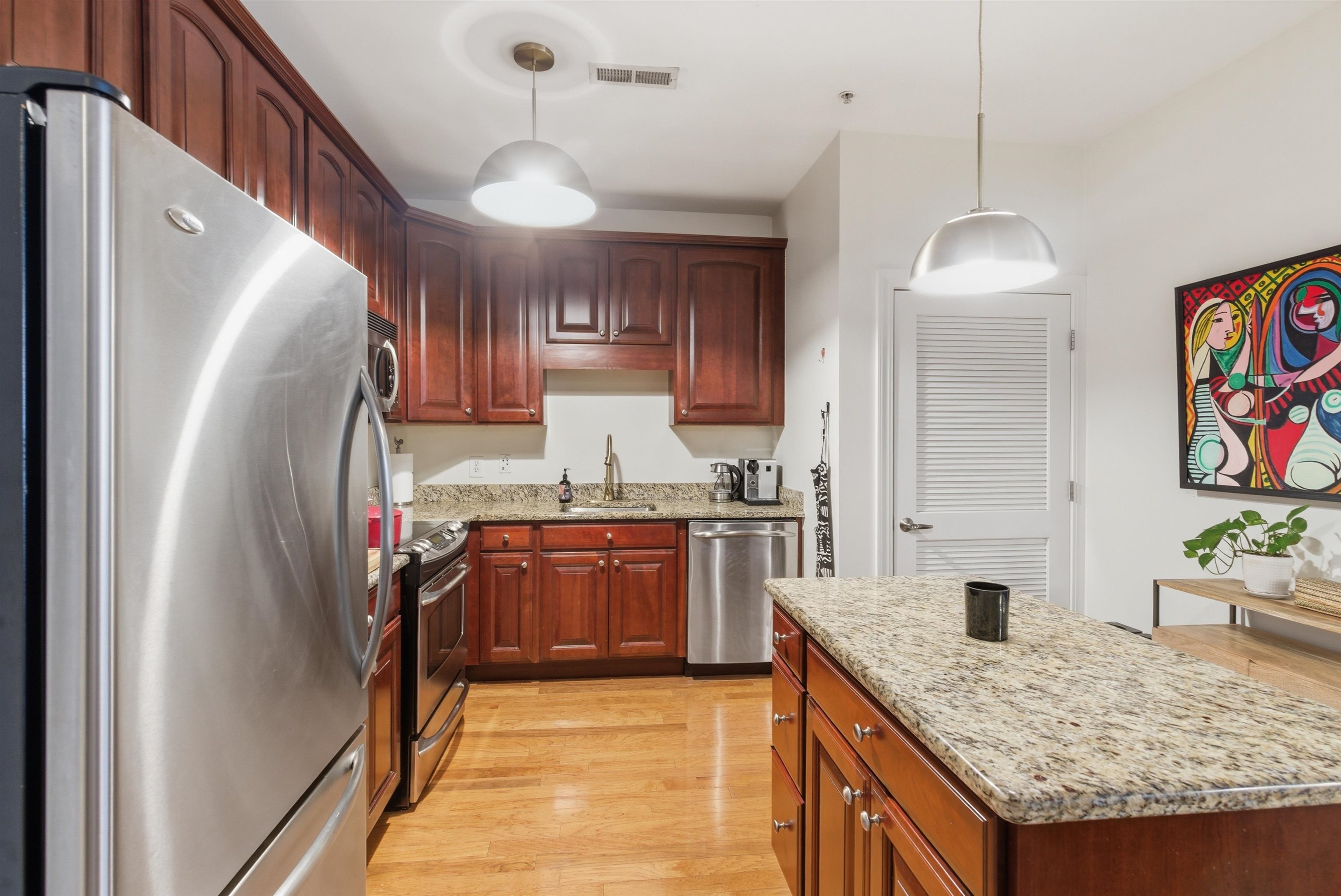 Welcome to 20 Ave at Port Imperial—a bright and spacious 2-bedroom, 1-bath home offering 1,090 sq ft of comfortable living. This west-facing unit features original hardwood floors, a kitchen with stainless steel appliances, granite countertops, and dishwasher, plus the convenience of an in-unit washer/dryer. Enjoy added value with custom built-in closets (1 year old) and excellent storage in the second bedroom. Relax on your private balcony or take advantage of full-service amenities including doorman, pool, gym, community room, and elevator. 1 parking space included. Located on a quiet street just moments from shops, dining, transit, and the scenic Hudson River Waterfront Walkway—perfect for walking, biking, and enjoying NYC views