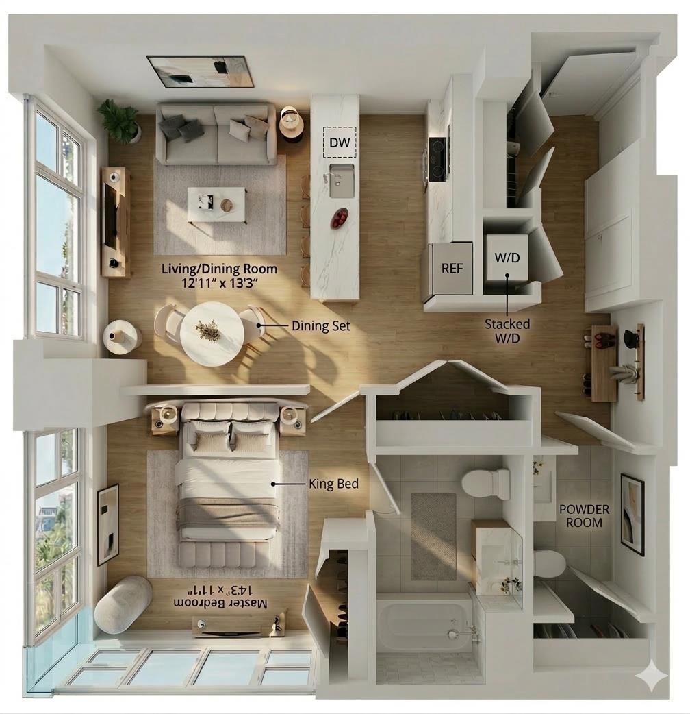 Rare corner 1-bedroom, 2-bath condo with soaring ceilings, abundant natural light, and premium finishes. One of only two corner units in the building, 841 sq. ft., among the largest 1-bedroom layouts. South and west exposures fill the home with sunlight. Resort-style amenities: heated indoor pool, fitness center + yoga studio, outdoor putting green & golf simulator, skyline lounge, grill patio, game room, private theater, conference & dining rooms, steam room & Jacuzzi. Prime Waterfront location: steps from Newport Green Park, Newport Mall, Target, Hoboken, waterfront parks, and just one subway stop from Manhattan. Modern luxury, convenience, and exclusive amenities in Jersey City’s top neighborhood.